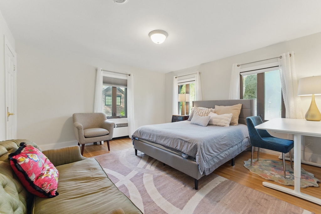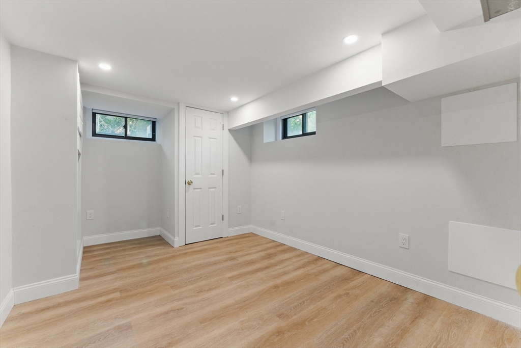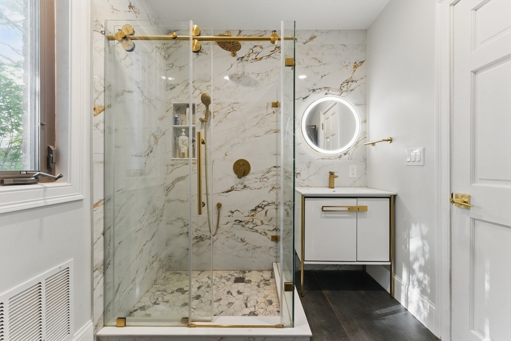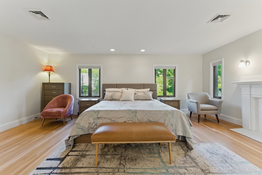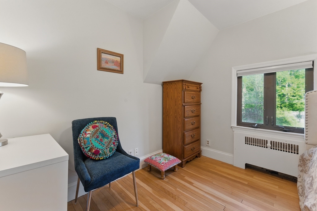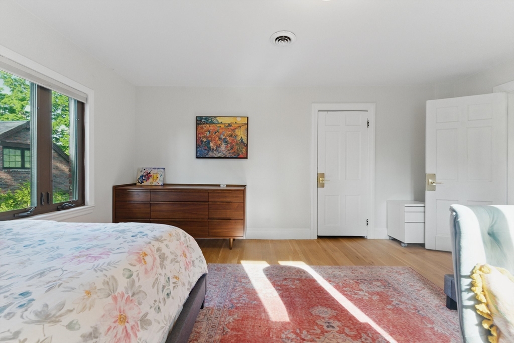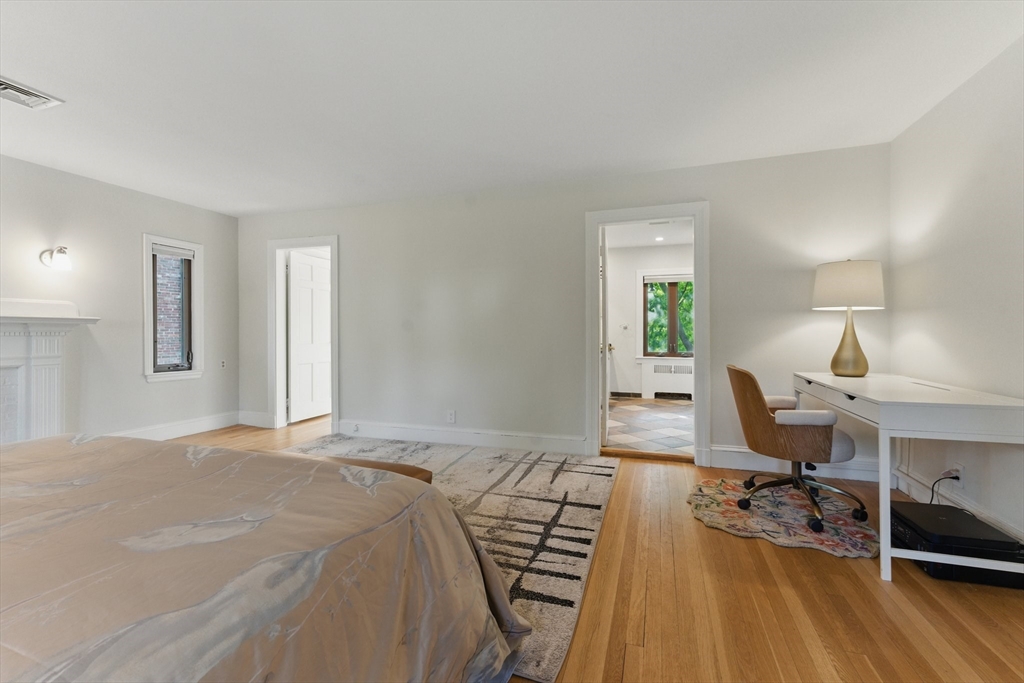 Extensively updated since 2022 with a renovated kitchen, fresh interior paint, added full bath and two bonus rooms in the basement, and refinished hardwood floors (partial). This timeless impressive Tudor is located on a picturesque tree-lined street in one of Newton’s most desirable neighborhoods—steps to top schools, public transit, highways, restaurants, and shopping.The main level features a grand foyer, sunken living room with beamed ceiling and wood-burning fireplace, formal dining room, eat-in kitchen with stainless steel appliances, full bath, and a family room/home office with direct backyard access.Upstairs offers four bedrooms and two full baths, including a spacious primary suite with en suite bath, fireplace, and walk-in closet. The finished upper level includes a vaulted-ceiling media room and additional en suite with full bath and closet. The lower level also includes a retro bar, laundry area, and access to a heated two-car garage. Don't miss this rare opportunity!