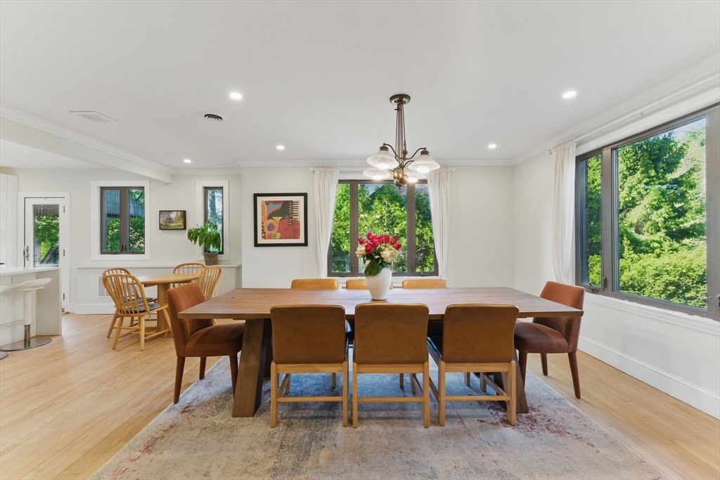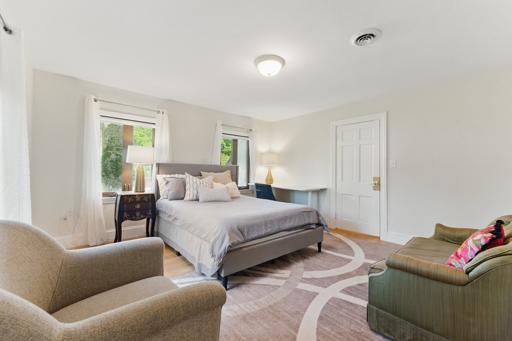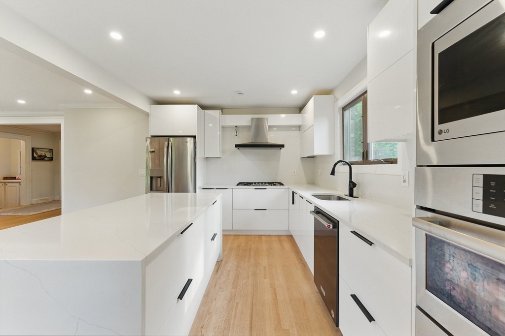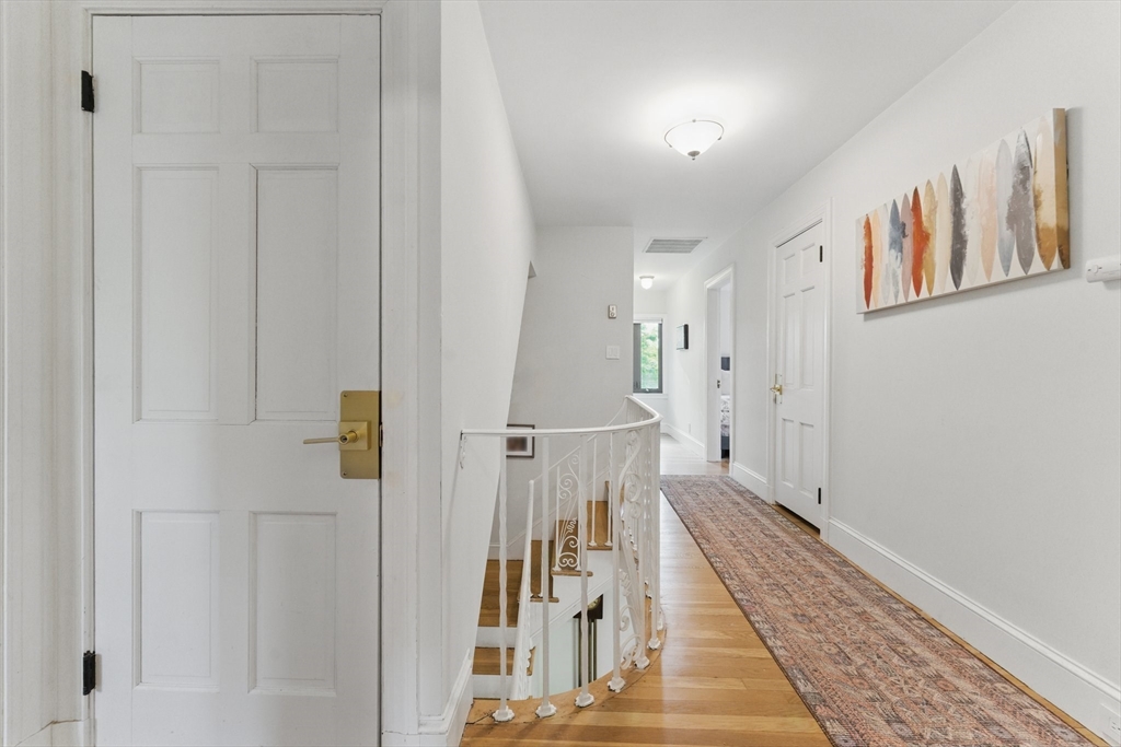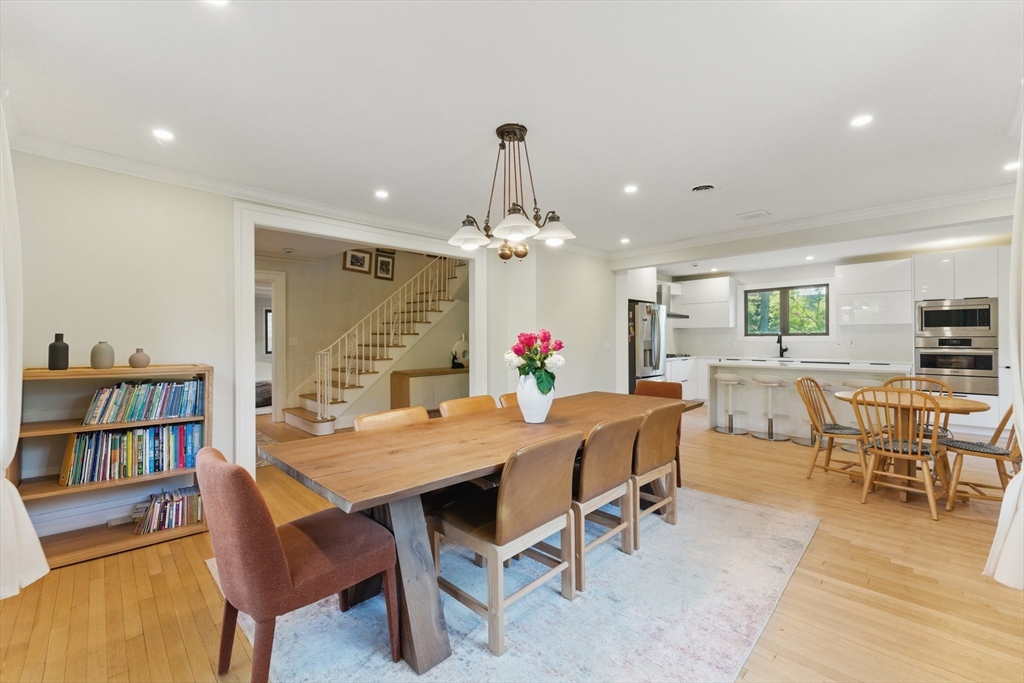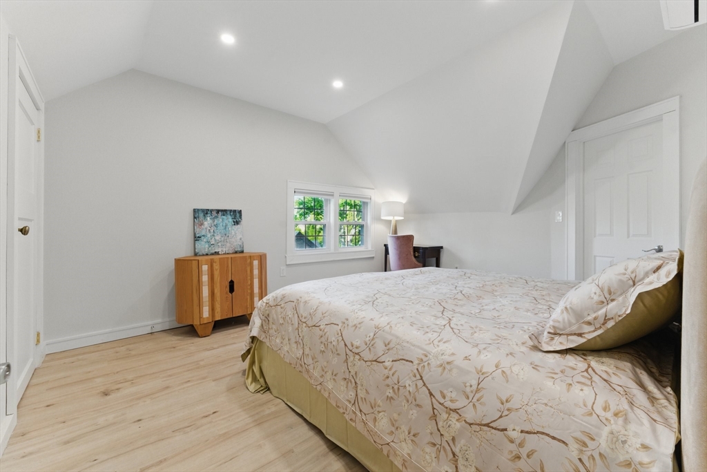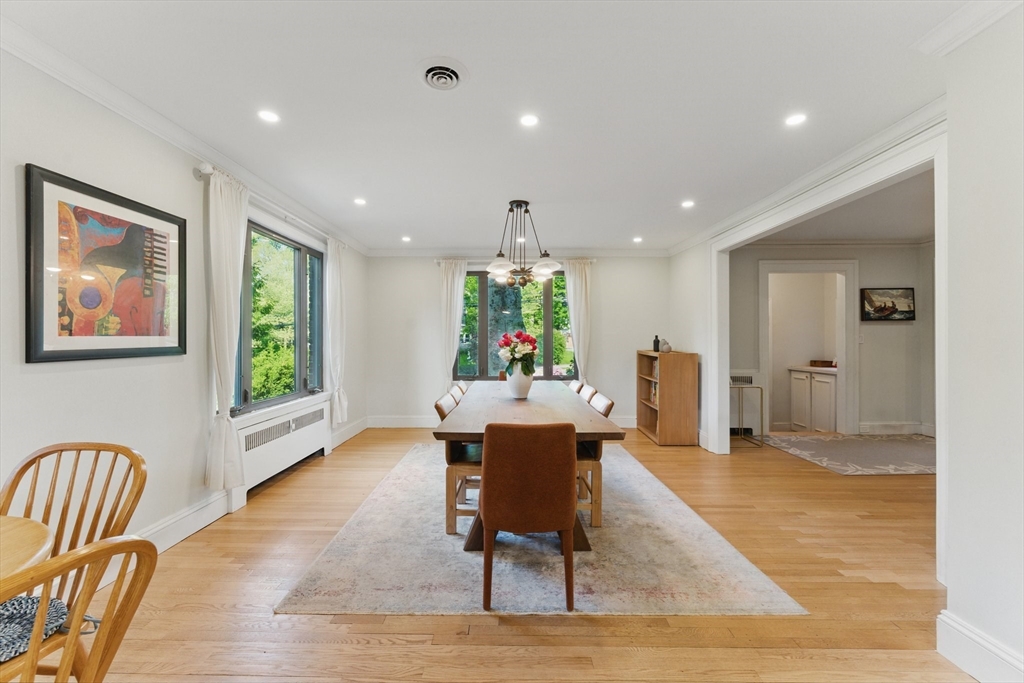 Extensively updated since 2022 with a renovated kitchen, fresh interior paint, added full bath and two bonus rooms in the basement, and refinished hardwood floors (partial). This timeless impressive Tudor is located on a picturesque tree-lined street in one of Newton’s most desirable neighborhoods—steps to top schools, public transit, highways, restaurants, and shopping.The main level features a grand foyer, sunken living room with beamed ceiling and wood-burning fireplace, formal dining room, eat-in kitchen with stainless steel appliances, full bath, and a family room/home office with direct backyard access.Upstairs offers four bedrooms and two full baths, including a spacious primary suite with en suite bath, fireplace, and walk-in closet. The finished upper level includes a vaulted-ceiling media room and additional en suite with full bath and closet. The lower level also includes a retro bar, laundry area, and access to a heated two-car garage. Don't miss this rare opportunity!