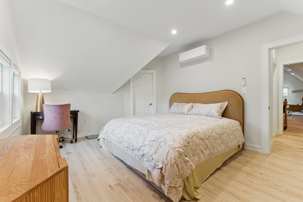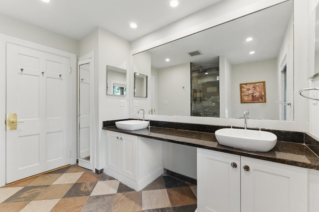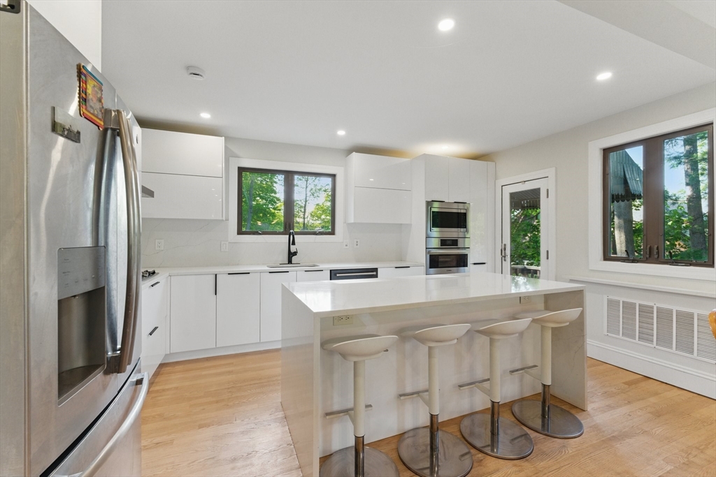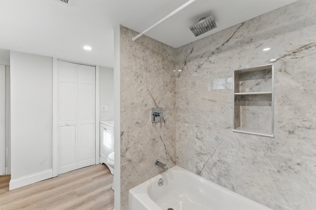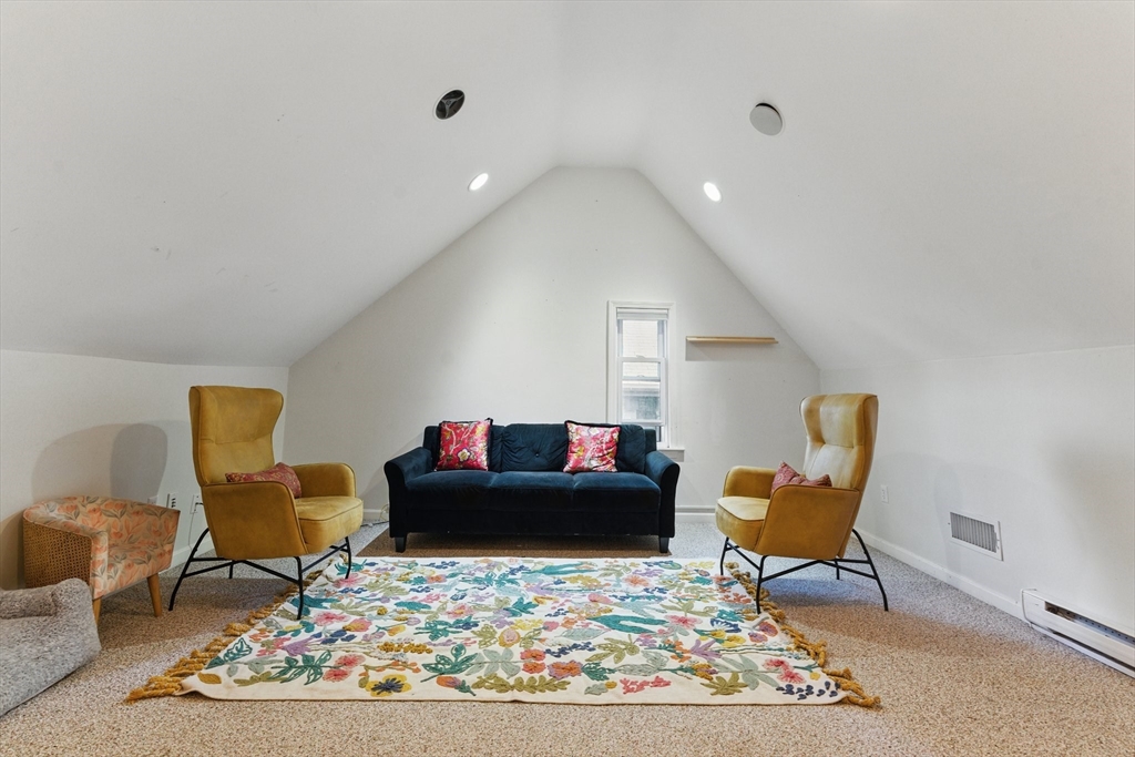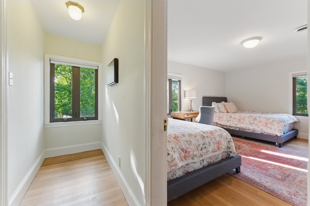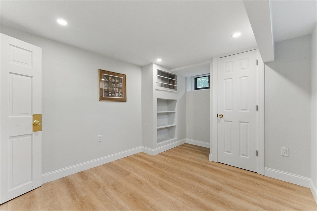 Extensively updated since 2022 with a renovated kitchen, fresh interior paint, added full bath and two bonus rooms in the basement, and refinished hardwood floors (partial). This timeless impressive Tudor is located on a picturesque tree-lined street in one of Newton’s most desirable neighborhoods—steps to top schools, public transit, highways, restaurants, and shopping.The main level features a grand foyer, sunken living room with beamed ceiling and wood-burning fireplace, formal dining room, eat-in kitchen with stainless steel appliances, full bath, and a family room/home office with direct backyard access.Upstairs offers four bedrooms and two full baths, including a spacious primary suite with en suite bath, fireplace, and walk-in closet. The finished upper level includes a vaulted-ceiling media room and additional en suite with full bath and closet. The lower level also includes a retro bar, laundry area, and access to a heated two-car garage. Don't miss this rare opportunity!
