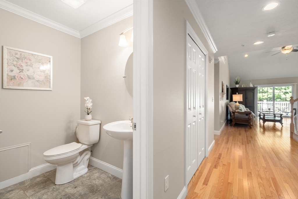 This Gorgeous east-facing unit is a "RARE FIND," radiating with natural light. Coffee in the morning in the kitchen and dinner by sunset on the beautiful back deck. This property has it all. Contemporary style living with gleaming hardwood floors and a large granite peninsula in the kitchen creates a perfect blend of elegance and functionality. Over 2,4,000 sq ft of open living and designated rooms create the feeling of a single-family home. Cathedral ceiling in both the living room and the primary suite. The first-floor primary ensuite offers convenience and extortionary comfort while the second level boasts two additional generously sized bedrooms and a full bath. The walk-out unfinished lower level provides an exciting opportunity to add an additional 1200-plus sq/ft of living space with ample storage. Sale subject to suitable housing. Property identified and offer accepted