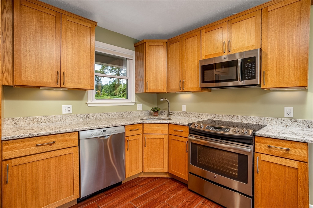 Welcome to this meticulously maintained and updated, 3 bed, 1.5 bath ranch nestled on the desirable south side of Leominster! Just minutes from Sholan Farm and scenic hiking trails, this home offers the perfect blend of comfort, style, and location. Step inside to find an updated kitchen featuring gorgeous quartz countertops, stainless steel appliances, tile floors, perfect for entertaining or everyday living. Laundry is located on the main level with a half bath for guests. The bright and inviting living room opens through sliders to a spacious deck, creating a seamless indoor-outdoor flow ideal for summer evenings. Stay cool all season long with 3 energy-efficient mini-splits, and enjoy the fenced-in backyard, perfect for pets, play, or gatherings. The walkout basement provides direct access to a patio area, great for relaxing! This home is truly move-in ready with too many updates to mention and offers the perfect mix of convenience and charm.