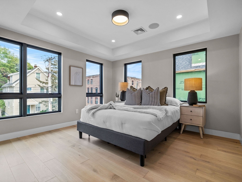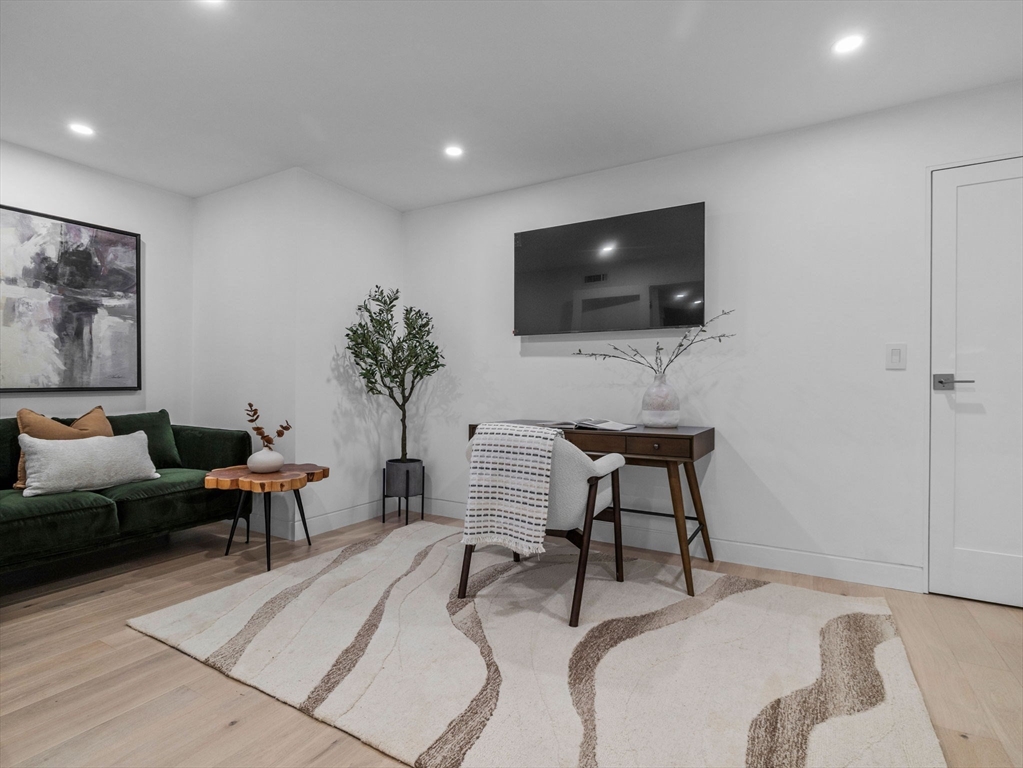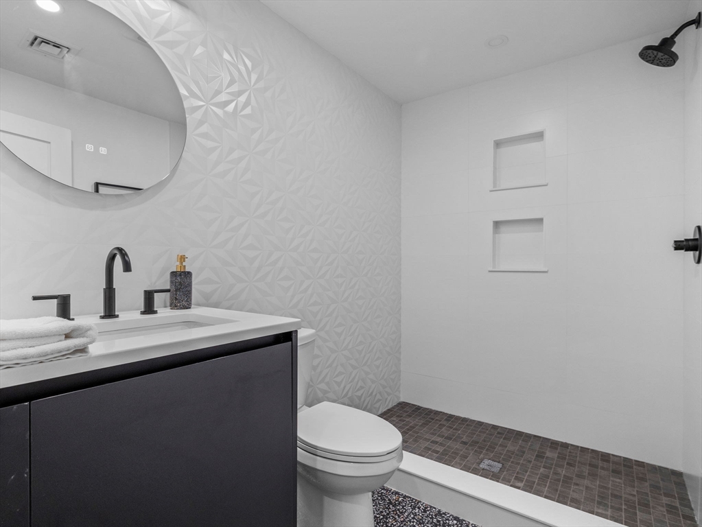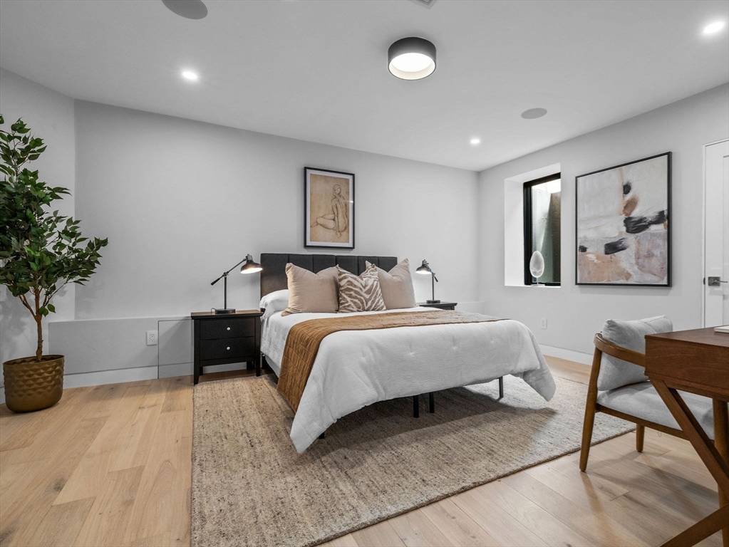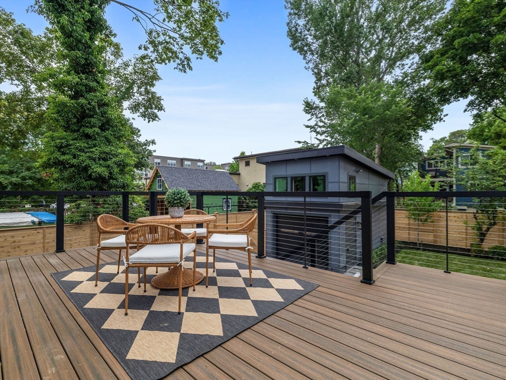 Step into luxury with this stunning North Cambridge smart home, where modern elegance meets thoughtful design. Boasting an open floor plan, this all-electric residence offers four spacious bedrooms and four-and-a-half bathrooms, including three ensuite retreats for ultimate comfort. The basement offers a versatile retreat, ideal for family gatherings, movie nights, and a comfortable work-from-home space, while the living room seamlessly extends to a picturesque deck overlooking a beautifully landscaped yard. Smart home technology integrates fully connected thermostats, indoor and outdoor speakers, and automated lighting—seamlessly controlled via tablet or app at your fingertips. A detached one-car garage features a storage loft and an electric car charger, ensuring convenience at every turn. Ideally situated near the Minuteman Bikeway and vibrant Davis Square, this home truly has it all.