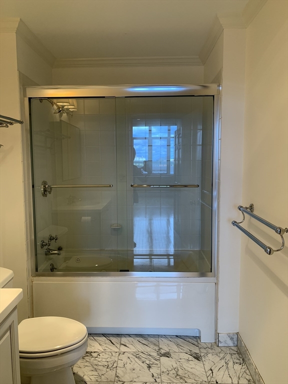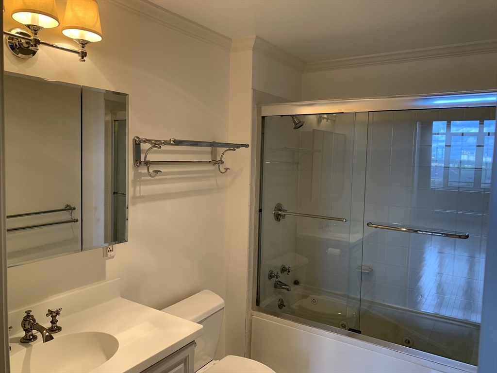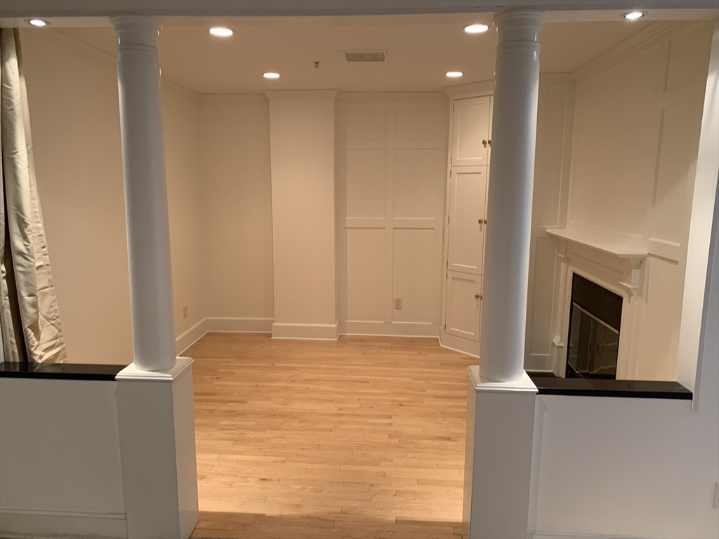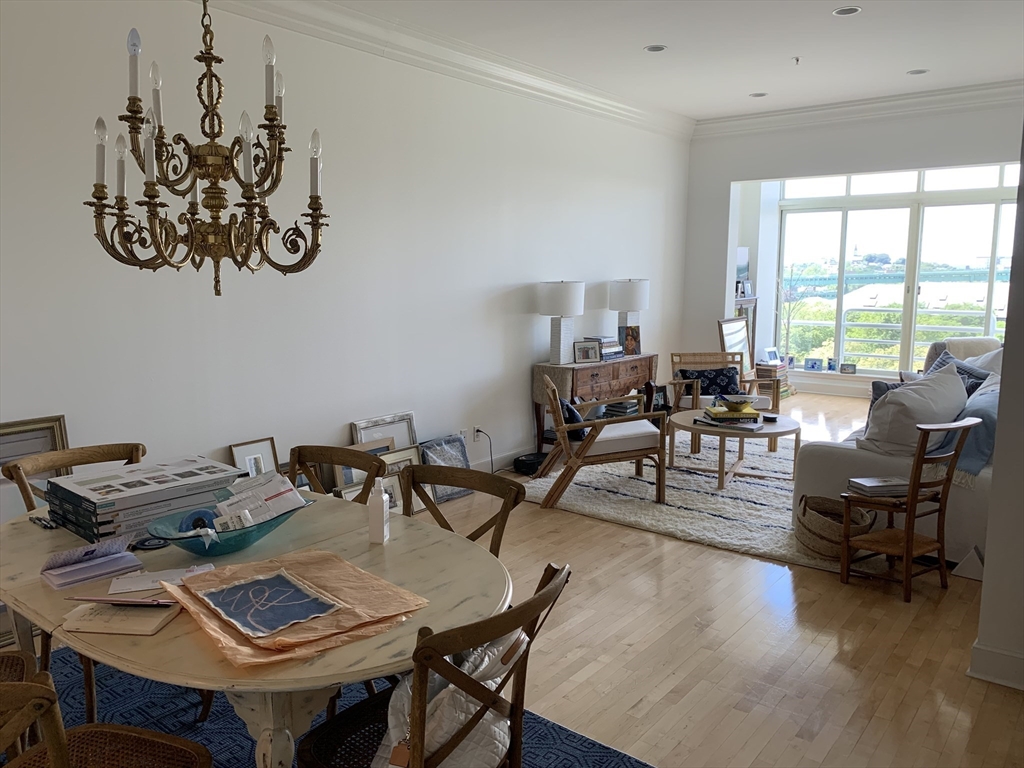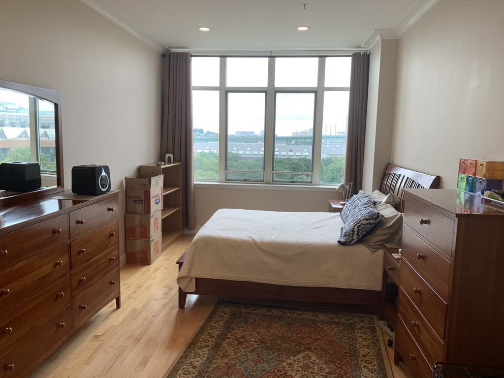 Rarely available, beautiful 1 bedroom plus den or 2nd bedroom with 2 full baths and garage parking at Flagship Wharf! This gorgeous unit has high ceilings, hardwood floors, modern kitchen with maple cabinets, granite countertops and stainless steel appliances. Separate dining area opens to large living room extending further to a solarium with beautiful views of the Bunker Hill Monument and landscaped Memorial park The primary bedroom has 2 enormous built out closets, wall of windows and a large bath with marble flooring. Den or study (which can be used as an open 2nd bedroom) has a wood burning fireplace and built-in entertainment cabinet This luxury waterfront building is located on the Boston Harbor Walk with 24 hour concierge service, fitness center, elevator access and valet parking included! Photos from previous tenant.