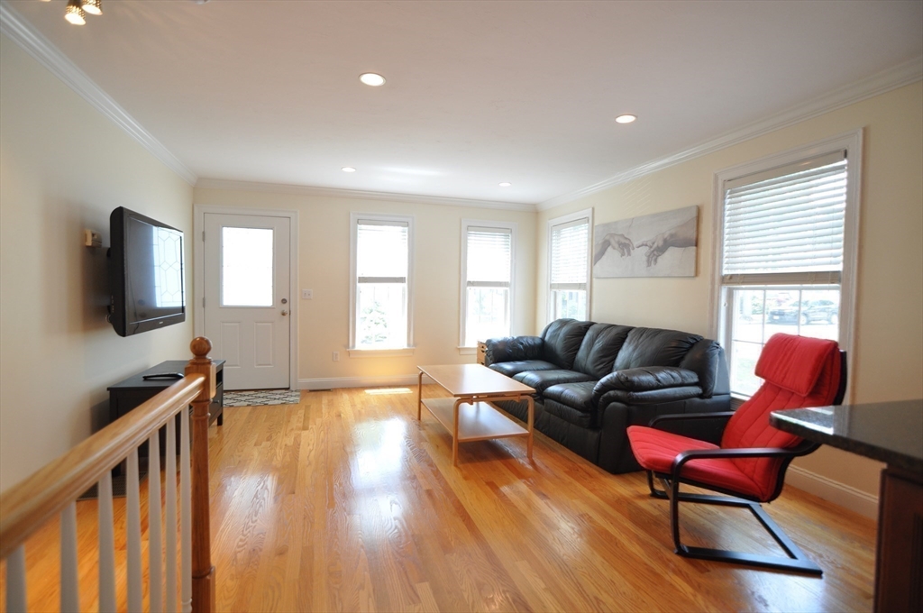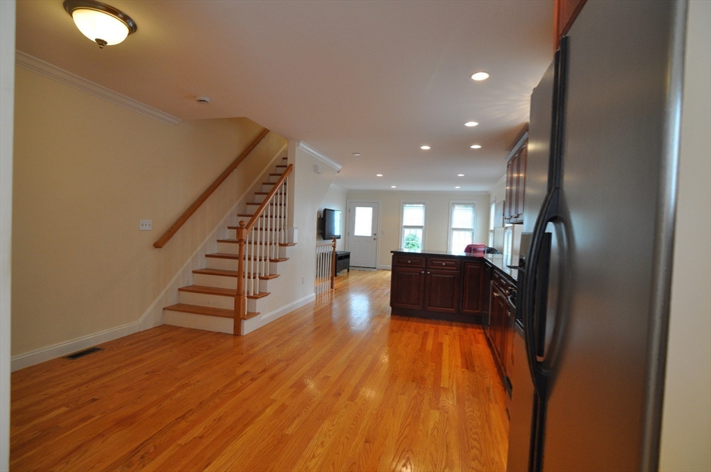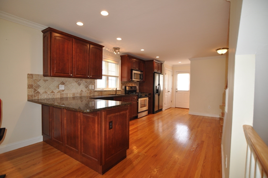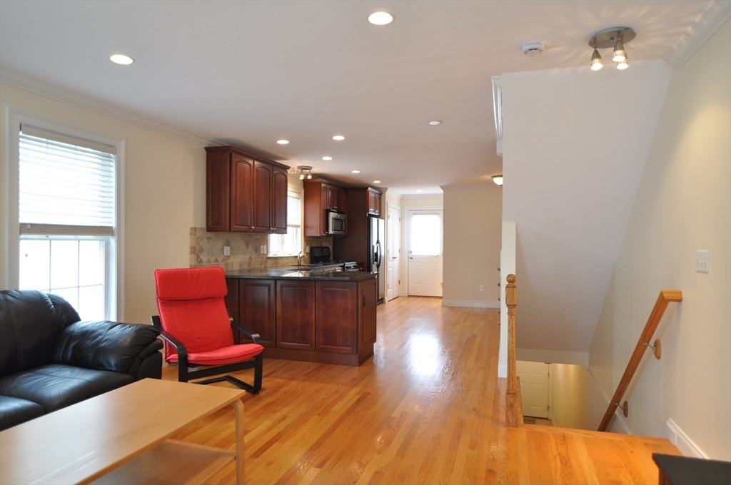 Highly Desirable location close to Watertown. Townhome featuring gourmet granite island kitchen w/stainless steel appliances, crown molding throughout first floor, sunfilled living room, hardwood flooring throughout, spacious master suite w/separate bath, natural gas heating & central air, central vacuum, ample storage, off-street & garage parking. Adjacent to Lowell Field Playground. park includes; Lighted Tennis, Pickleball & Basketball courts, kids water park, jungle gyms, and track. Nearby public transportation, Bj's, Shaws and Charles River Greenway less than 3/4 of a mile and other shops! Easy access to Rte 128, Rte 2, Mass Pike and Storrow Drive!! Snow plowing shared with unit 2 approximately $400 in 2024. Updates include new tank hot water heater (2025) and new epoxy utility / storage room floor (2025).