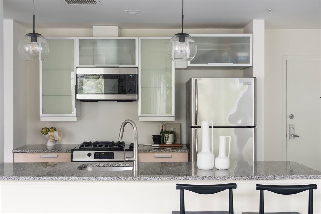 The epitome of SOWA living, take the elevator up to this ALCOVE studio at the Dover Lofts. With a sunny, southern exposure, soaring ceilings and a quiet courtyard view this condo has an airy feel and hip vibe. Stylish polished concrete floors run throughout the spacious condo's open floor plan with clearly defined areas for dining as well as a generous living room accented by a Juliet balcony. The functional kitchen island features granite countertops and anchors the cooking space at the center of the home. A tiled bathroom is tucked privately away. In-unit laundry adds to easy living as does professional management. Enjoy evenings on the common roof deck or head out to the countless nearby restaurants at Ink Block (Bar Mezzana, Kaia, Whole Foods, CVS, Tatte, etc) as well as Restaurant Row favorites like Barcelona, Picco and Life Alive. With vibrant regularly scheduled SoWa events in such close proximity this is your chance to join one of Boston's most beloved neighborhoods!