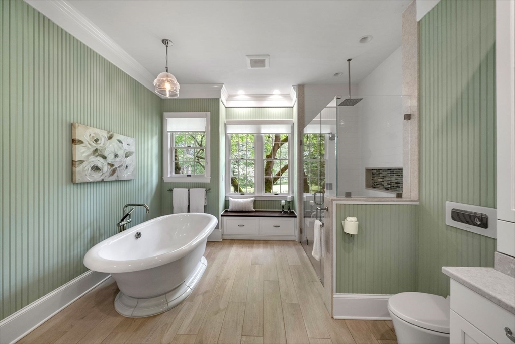 This custom built home showcases soaring ceilings, dramatic double-sided fireplace, exquisite millwork and hardwood floors throughout. Set on 12.91 private acres nestled between Hickory Rd & Hoppin Hill Neighborhood. A welcoming farmers porch leads to the foyer, formal dining room on right, stunning great room w/ floor to ceiling fireplace, custom built-ins & french doors out to patio overlooking the pool and gardens. To left is the powder room & luxurious first floor primary suite featuring spacious bedroom with built-ins, spa like bath w/ soaking tub & walk in closet. Gourmet WoodMode Kitchen is outfitted w/high-end appliances, pantry, generous center island, desk & inviting eat-in nook open to family room w/ coffered ceiling, more built-ins & fireplace. Mudroom, half bath & attached 3 car garage w/expansive unfinished space above. Second floor w/ open landing & two en-suite bedrooms. Two story barn w/water & electric adds incredible versatility, to make your own.