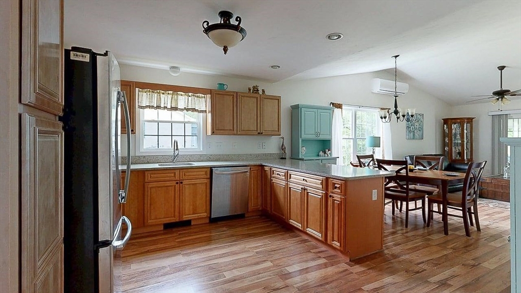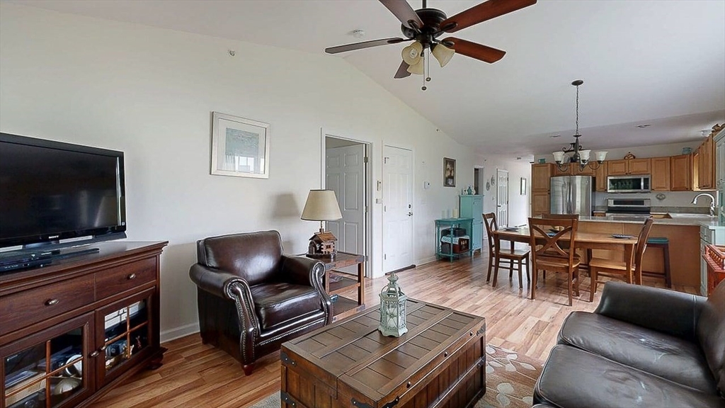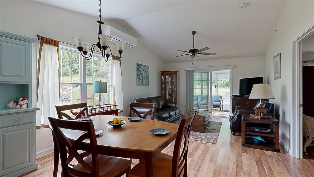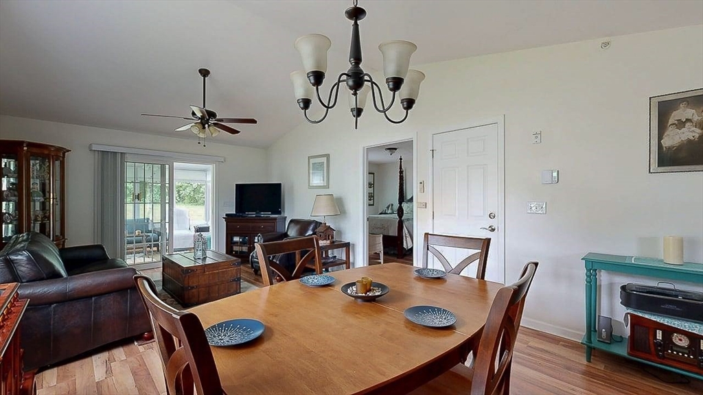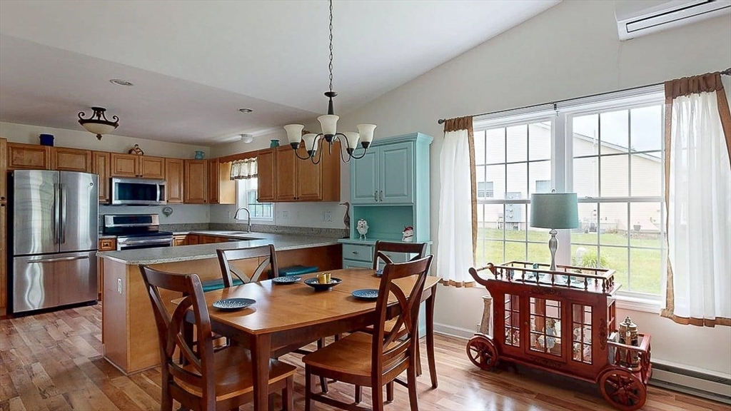 Wonderfully updated 55+ single level condo now ready for its next owners. This 2 bed and 2 full bath unit can be delivered furnished as well if buyer desires. You'll love the open concept kitchen, dining and living room with cathedral ceiling. Highly desirable end unit. One car attached garage for easy access to the unit. Primary bedroom has convenient en suite bath. Laundry located on main floor. Huge basement for storage. Nothing to do here besides move right in and relax. Mini split air conditioning unit in main living area. Bright and airy sun porch on the back of the unit. Multiple highway options in very close proximity. Book a showing today as this won't last long!