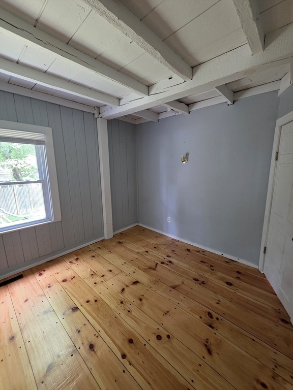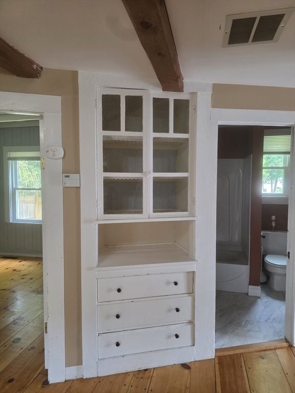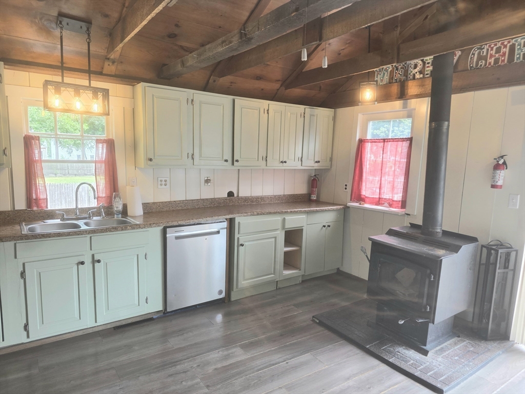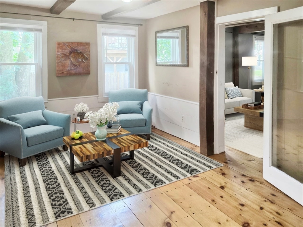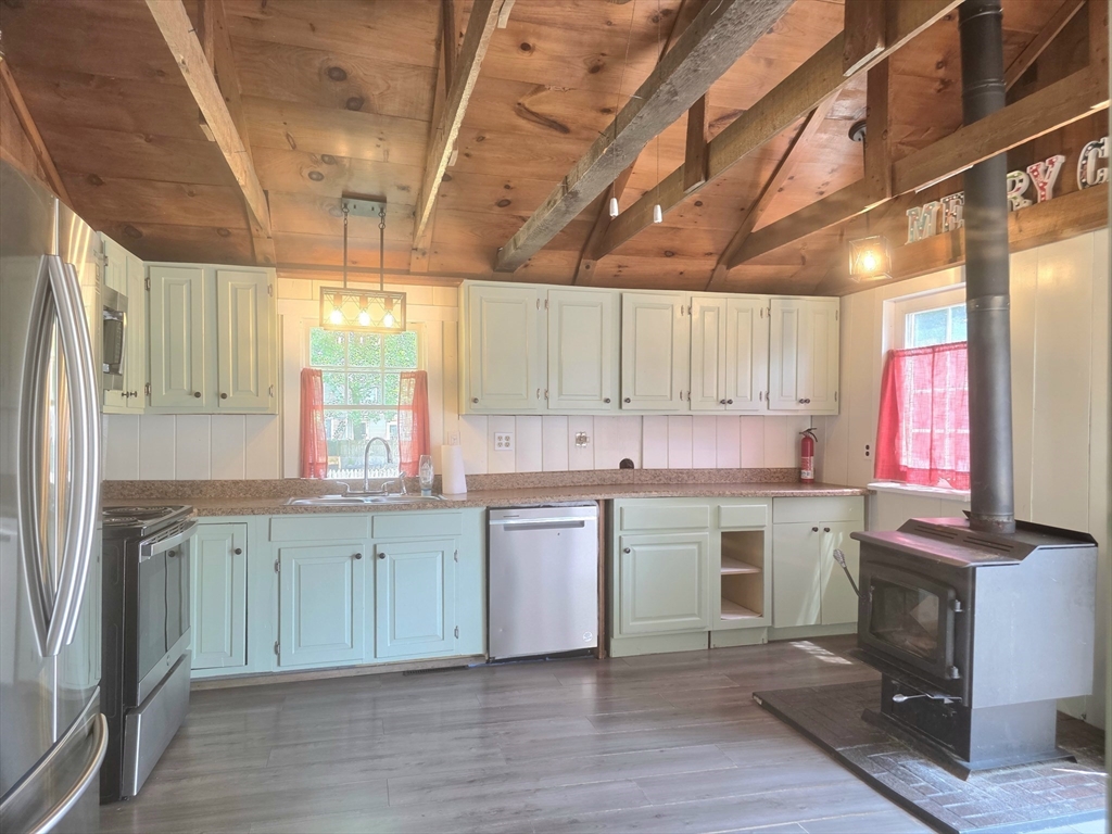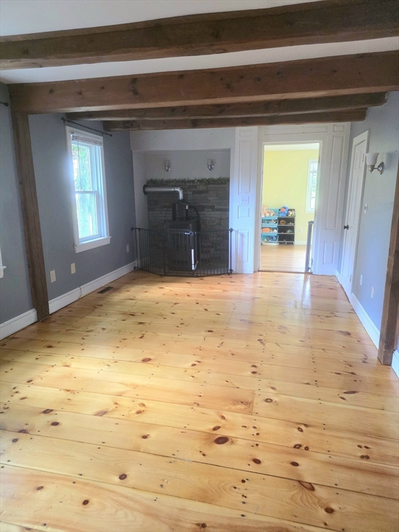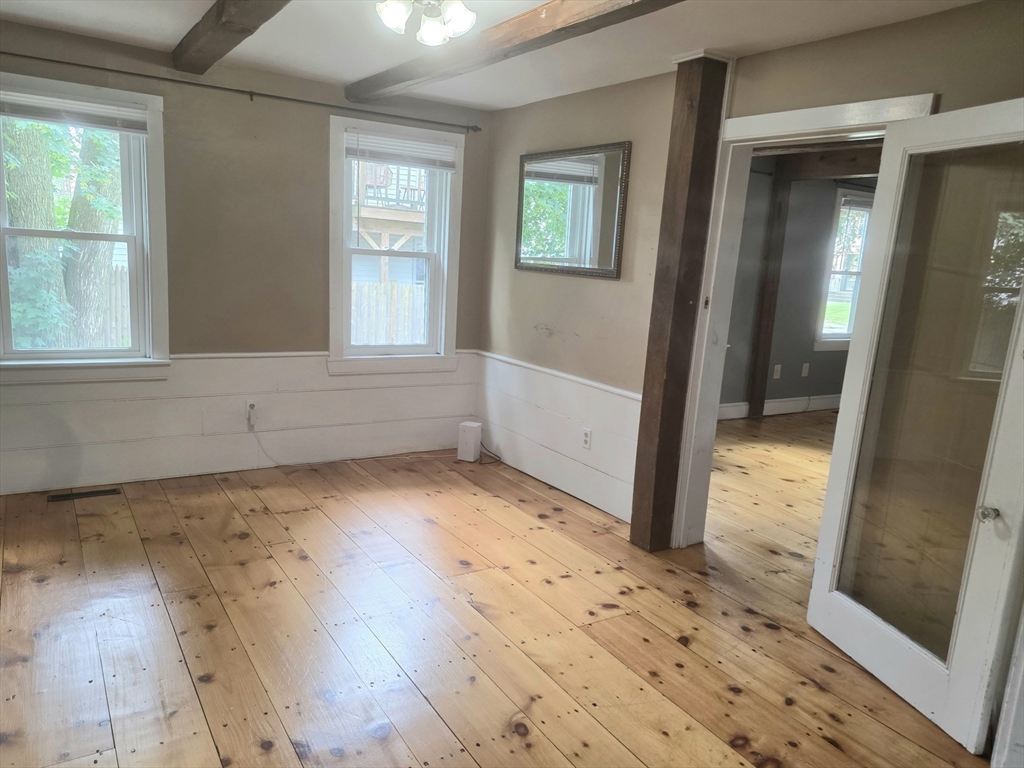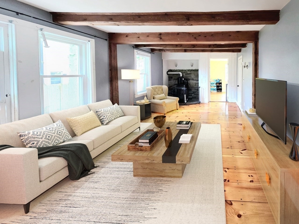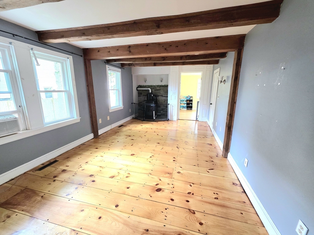Not your cookie-cutter home! Enter into the charm of this extended Colonial offering 4 bedrooms and 2 baths. From wide plank floors to exposed beams and built-ins, craftsmanship is on full display. The eat-in kitchen features ample storage, stainless appliances, and a cathedral ceiling. Host guests in the formal dining room, then relax in the spacious living area with a cozy pellet stove. Two bedrooms and a full bath on each level offer flexible living. The oversized garage has electricity and work area. The backyard is private and fenced-in, perfect for entertaining or pets. Enjoy coffee on the farmer's porch or unwind on the back deck. Located moments from downtown, with town water/sewer, and close to tennis courts, athletic fields, pool, restaurants, and more—this home is truly one of a kind!