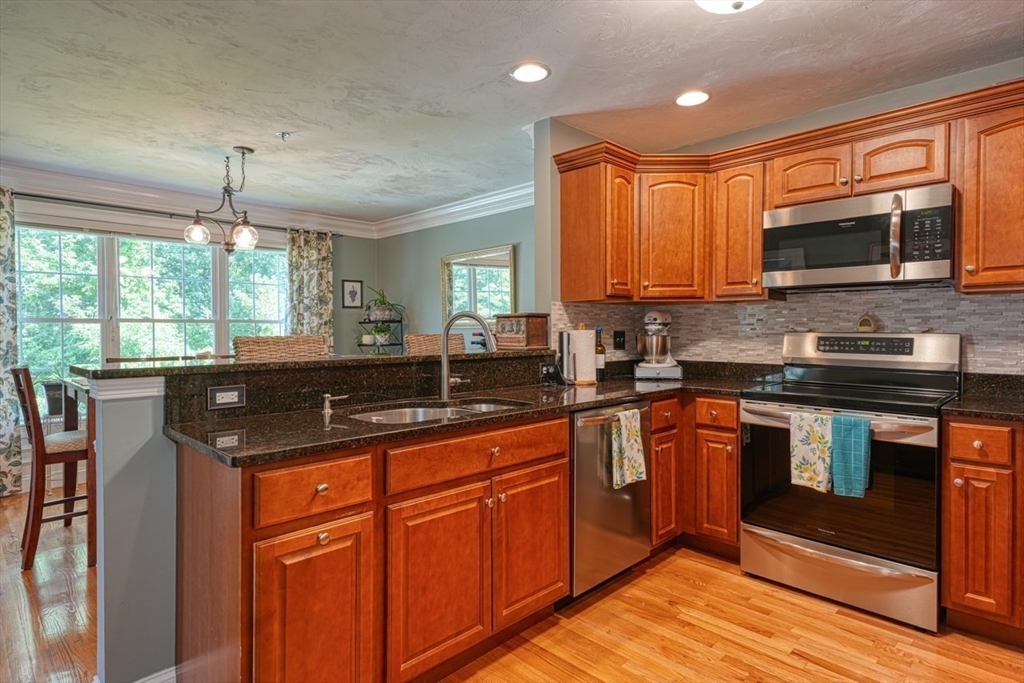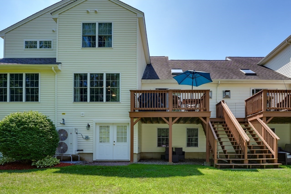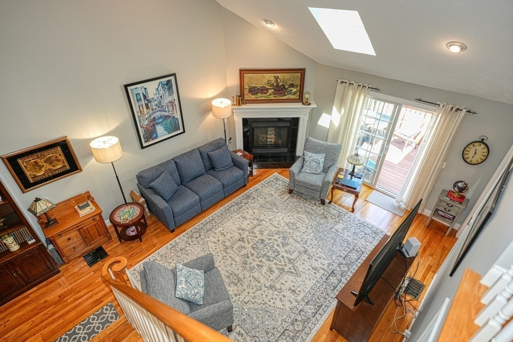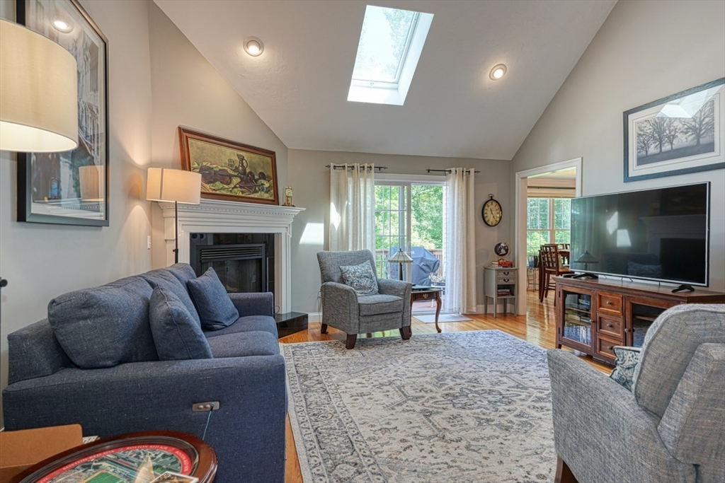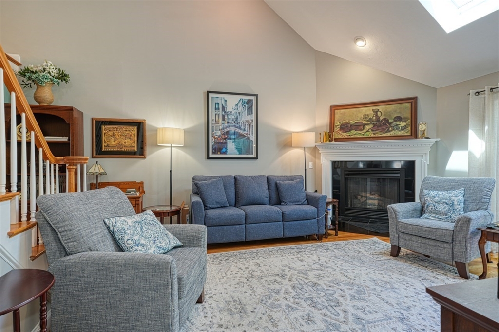 Welcome to Gateway at Highfields North! This pristine, move-in ready townhome has been meticulously maintained and offers a bright, open layout with beautiful finishes throughout. Ideally situated within the complex, the home welcomes you with a vaulted main living area featuring a skylight, gas fire place, sliders to the deck, & gleaming oak flooring that flows throughout the first floor. Upstairs, the spacious primary suite offers a large walk-in closet & private full bath with shower, granite vanity, & tile flooring. The 2nd bedroom is generously sized & located next to the 2nd bath. The maple cabinet kitchen boasts granite countertops, tiled backsplash, a breakfast bar, & recent stainless steel appliances, seamlessly connecting to the adjacent dining room. A tiled half bath with laundry completes the main level. Additional highlights include a finished walk out basement perfect for a family room or home office , two-car garage, new HVAC system installed in 2023. Desirable location!