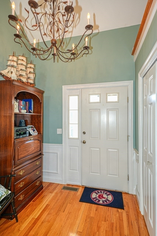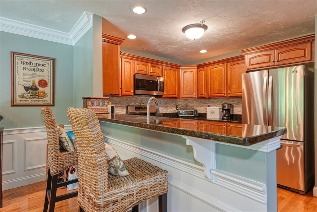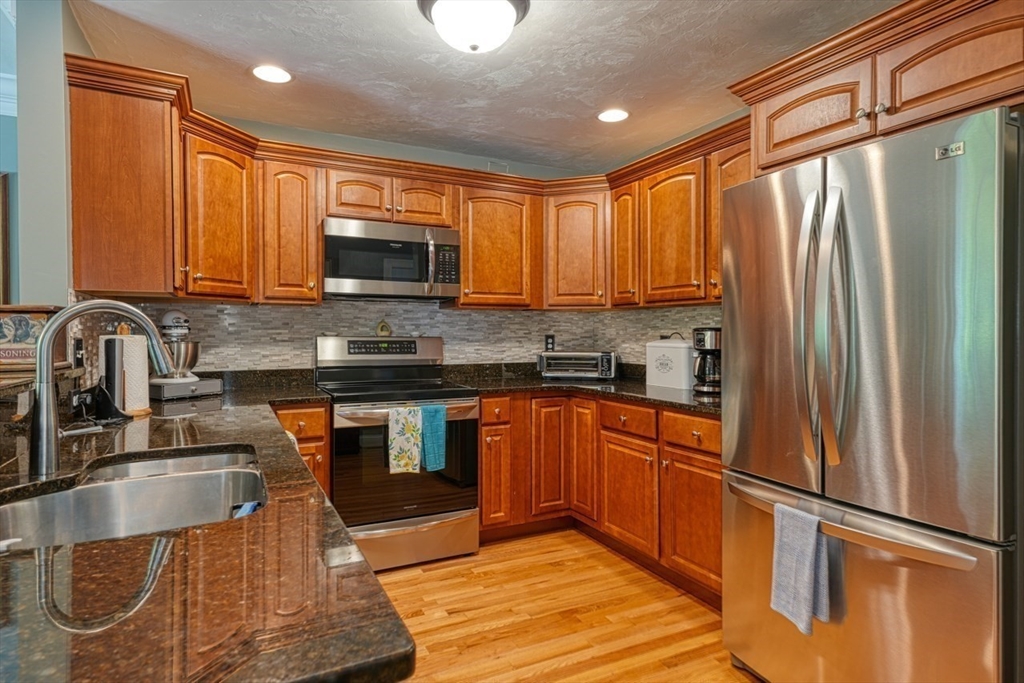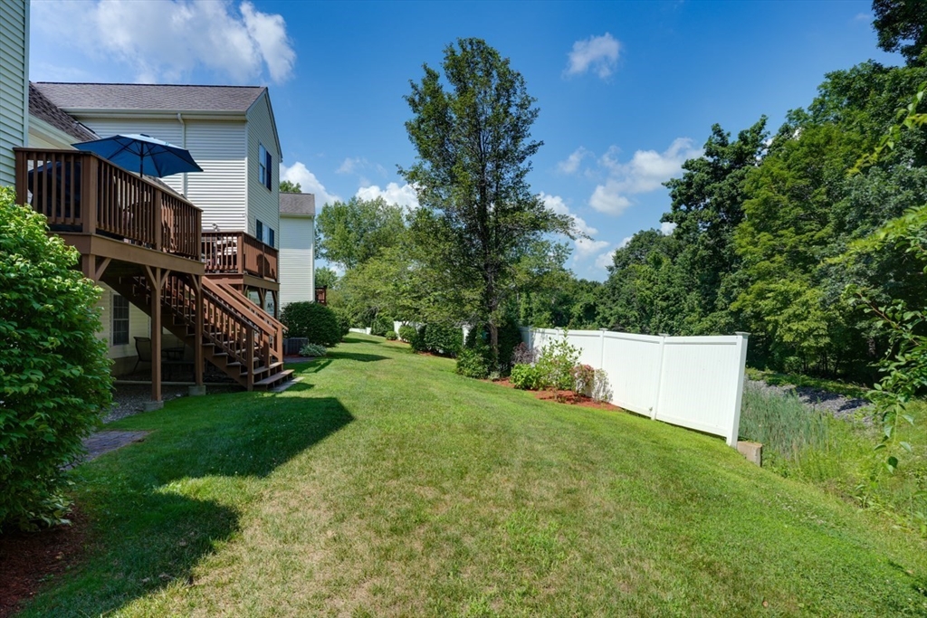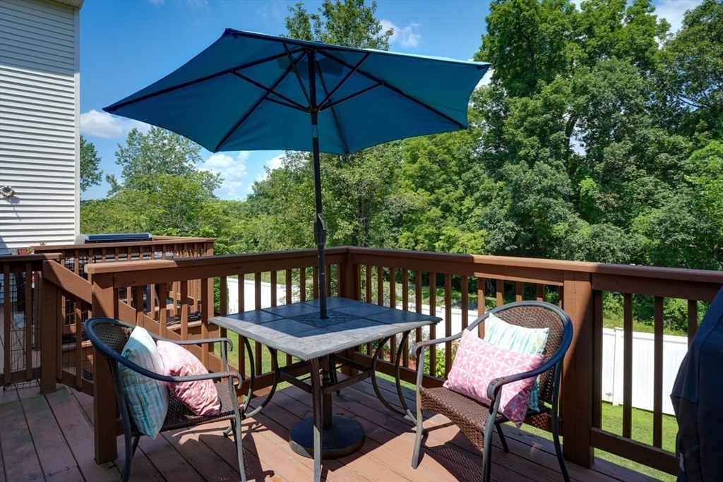 Welcome to Gateway at Highfields North! This pristine, move-in ready townhome has been meticulously maintained and offers a bright, open layout with beautiful finishes throughout. Ideally situated within the complex, the home welcomes you with a vaulted main living area featuring a skylight, gas fire place, sliders to the deck, & gleaming oak flooring that flows throughout the first floor. Upstairs, the spacious primary suite offers a large walk-in closet & private full bath with shower, granite vanity, & tile flooring. The 2nd bedroom is generously sized & located next to the 2nd bath. The maple cabinet kitchen boasts granite countertops, tiled backsplash, a breakfast bar, & recent stainless steel appliances, seamlessly connecting to the adjacent dining room. A tiled half bath with laundry completes the main level. Additional highlights include a finished walk out basement perfect for a family room or home office , two-car garage, new HVAC system installed in 2023. Desirable location!