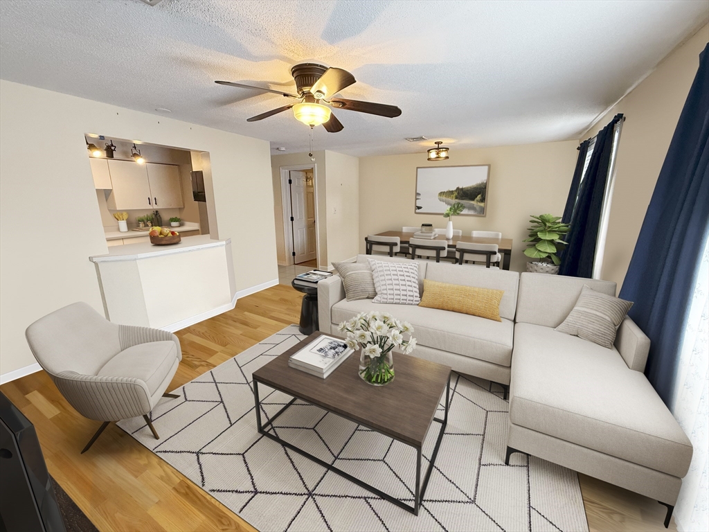 A beautifully maintained, light-filled condo in the sought-after Courtyard at Webb Place, nestled in downtown Mansfield is ready for a new owner! Enjoy a spacious primary suite with its own ¾-bath and walk-in closet, plus a second bedroom with great closet space and easy access to the full bath. The open-concept living and dining area is perfect for entertaining. A well-appointed kitchen features ample cabinetry, tiled floors, and connectivity to the dining space. In-Unit laundry with a stackable washer and dryer is super convenient. Central air conditioning, intercom entry, and elevator access make this upper-floor unit effortless and secure. One deeded parking spot plus ample visitor parking for guests. Under a mile from Commuter Rail, and easy access to Rte 95 & 495—perfect for Boston or Providence commuters. Walk to local shops, restaurants, schools, and community parks. Access to Mansfield Bike Path, jogging/walking trails, and parks right off Webb Place. OH Sat July 19: 11-12:30.