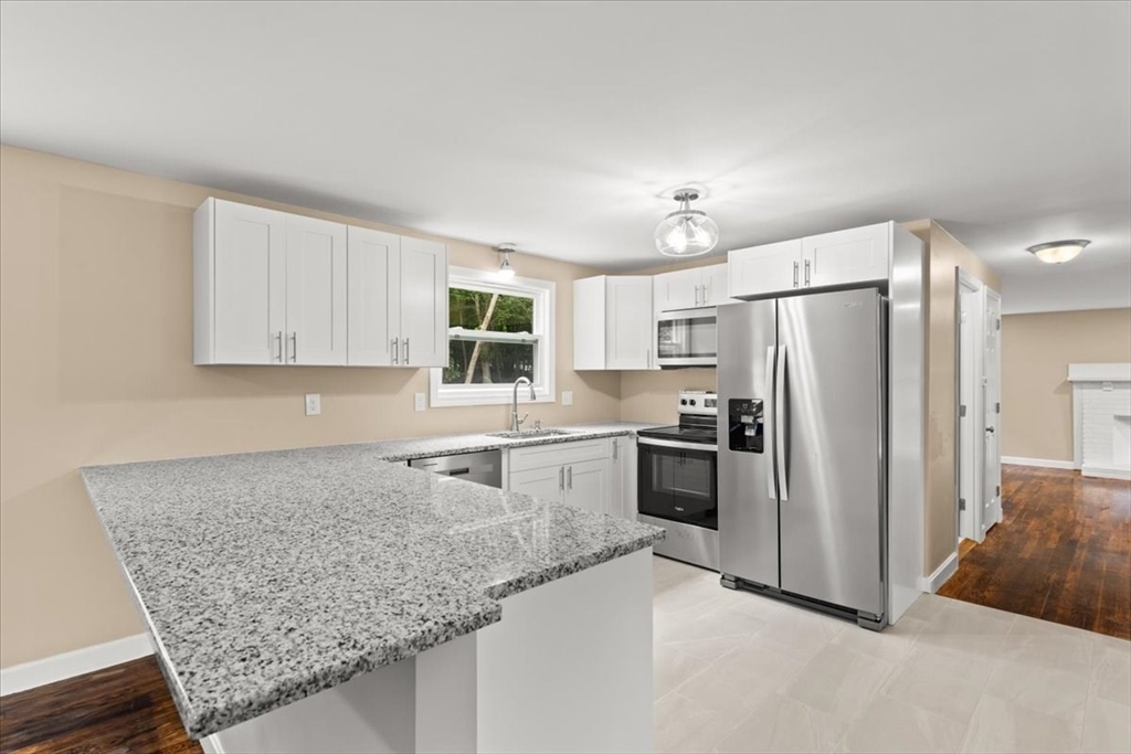 Welcome to this beautifully renovated Colonial - from top to bottom, this home has been wonderfully redesigned with all updated finishes, brand new kitchen and baths, refinished hardwood flooring, and newer roof and windows. Offering 4 bedrooms and 2 full baths, this home provides the perfect layout for today's busy lifestyle. The kitchen is a true show stopper, featuring sleek cabinetry, granite countertops, and brand new stainless steel appliances. The front to back living room and the open concept kitchen and dining areas are perfect for family gatherings and entertaining. Located in a neighborhood setting, close to schools, parks, and state forest - this one checks all the boxes for a forever family home! Book your private showing today.