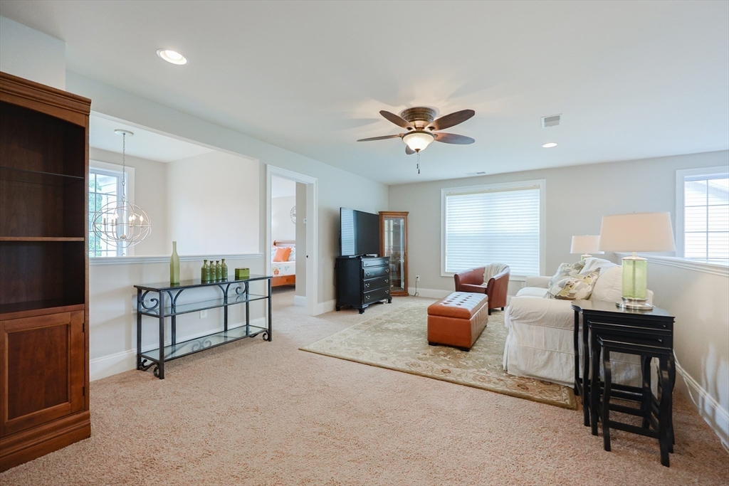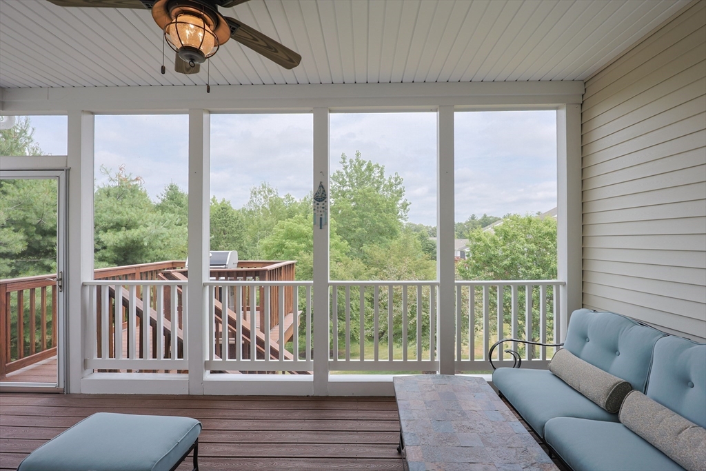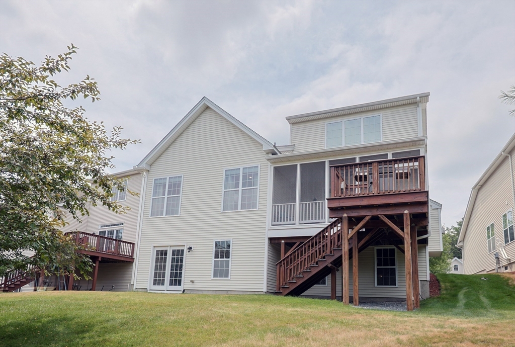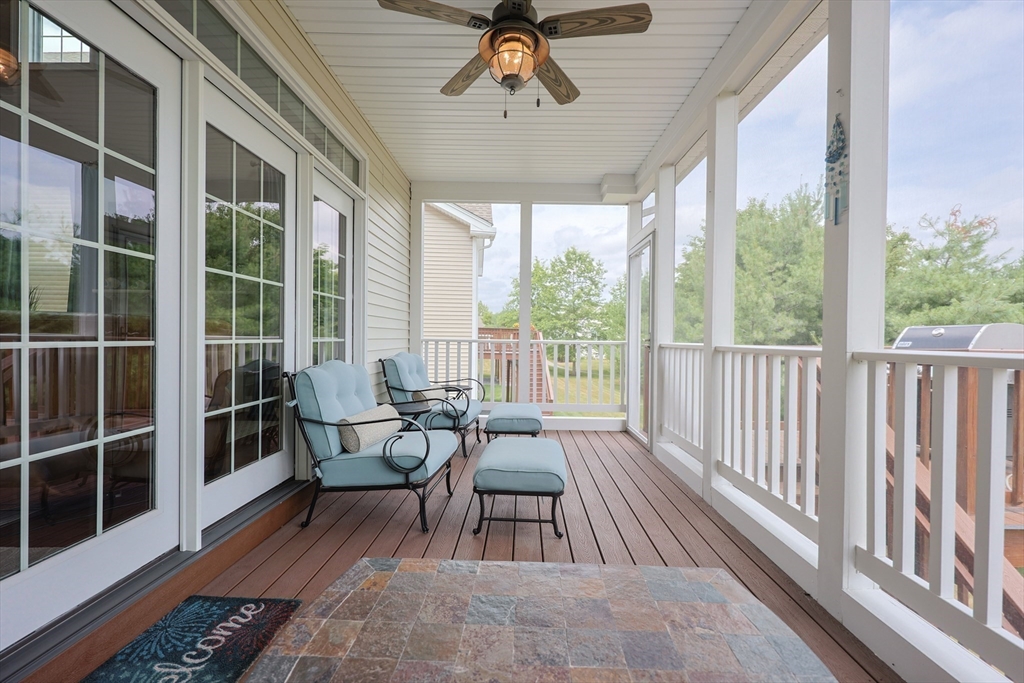 Beautifully upgraded in a fabulous location overlooking the complex's walking trails & green space. This home has been touched from top to bottom with tasteful decor & upgraded finishes. Enter the inviting foyer to the majestic great room, with tons of windows, a gas fireplace, French doors to the screened porch. The kitchen offers loads of cabinet space, breakfast bar, tiled backsplash, stainless appliances & pantry. The primary suite is spacious with private bath, walk-in closet & is a true oasis for relaxing. There is a hallway to the 2nd full bath, bedroom & office with window seat, & laundry area. The formal dining room is great for entertaining. The upper level loft area is perfect for quiet reflection or enjoying TV, 3rd bedroom & full bath & large walk-in storage area complete the 2nd floor. The full basement is great for exercising, crafts, or expansion & opens to the rear of the house. Enjoy the clubhouse, pool, tennis, pickleball & lots of activities in this fun community.