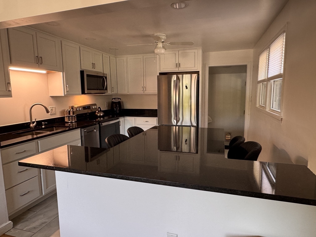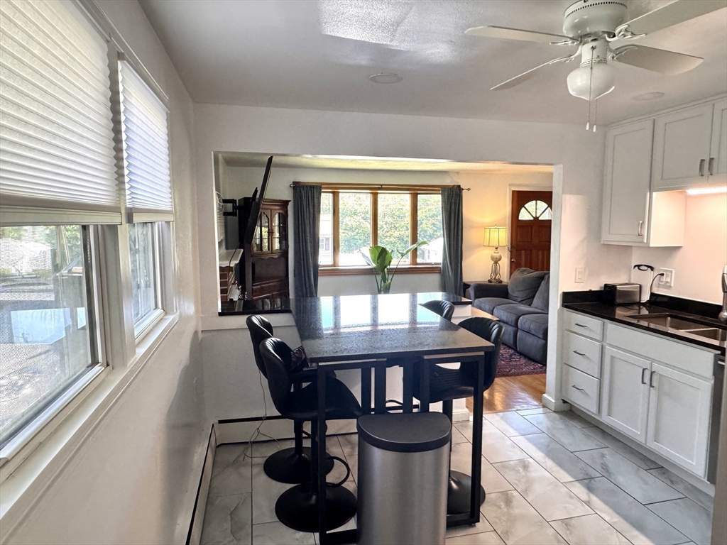 Welcome to this warm and inviting ranch-style home in Peabody’s sought-after Centerville neighborhood! Situated on a 10,000 sq ft lot, the main level features three bedrooms, a beautifully updated full bath, hardwood floors, and a sun-filled living room with a cozy fireplace. The renovated eat-in kitchen offers granite countertops, stainless steel appliances, and a generous island—ideal for gathering. A spacious sunroom just off the kitchen leads to a 12x16 deck overlooking the private backyard. The finished lower level, completed in 2020, includes a stylish bath, laundry, office, and versatile bonus room. Additional highlights include a newer heating system and oil tank. Conveniently located near major highways, shops, restaurants, hospitals, and bike trails. Open Houses: 7/19 & 7/20, 12:00–2:00 PM.