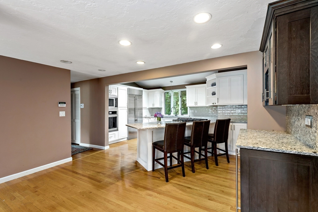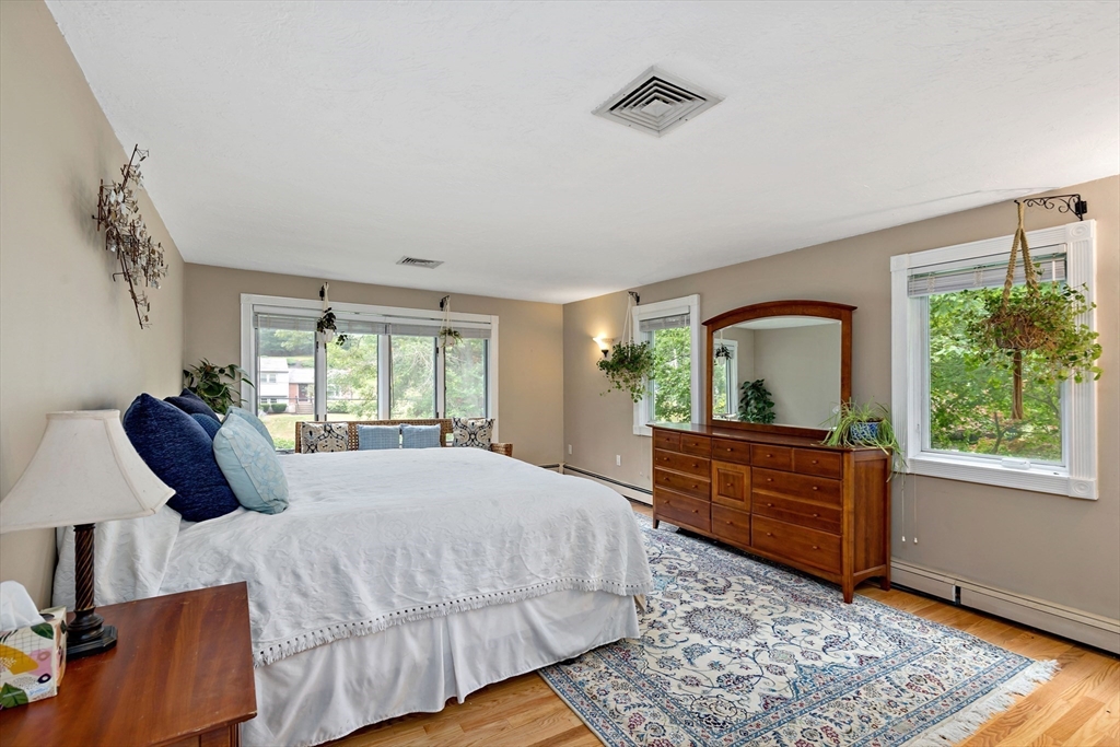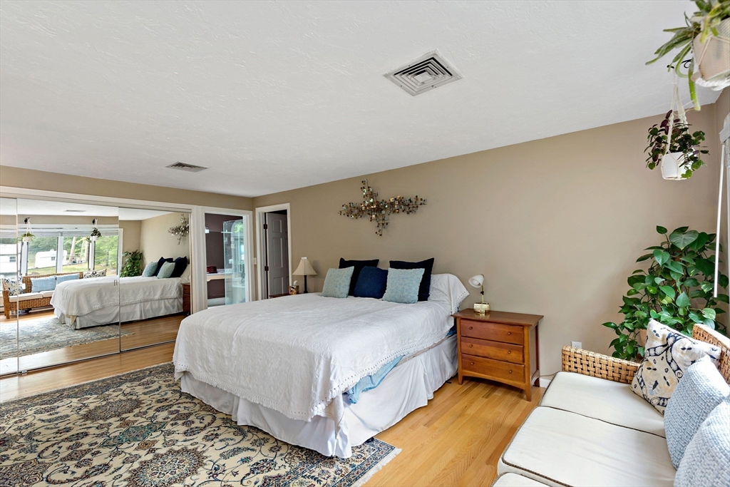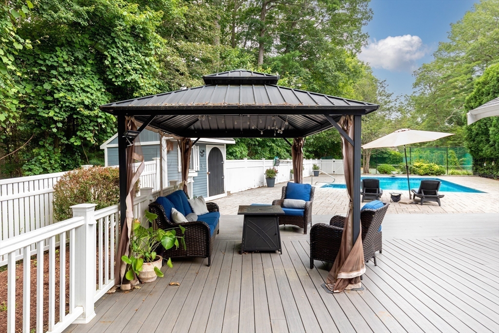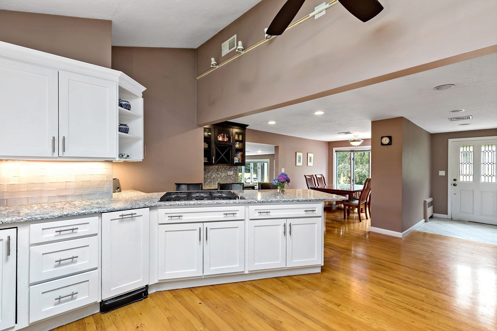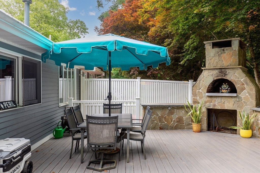 Great opportunity to own this oversized Ranch in desirable North Marshfield at a great price! The bright, open layout features hardwood floors and skylights, with a sun-filled eat-in kitchen w/ quartz countertops, island and breakfast nook, perfect for gatherings. The home offers three spacious bedrooms, two full baths, a cozy fireplace in the living room, along with a gas stove in the bonus room, ideal for family gatherings. Step outside to your private backyard oasis with a heated in-ground pool, built-in stone hearth pizza oven, ample space to grill and relax, and a tennis court easily converted to pickleball. With central air conditioning and just minutes from beaches, restaurants, and highway access, this inviting home offers exceptional amenities & location on a private lot!