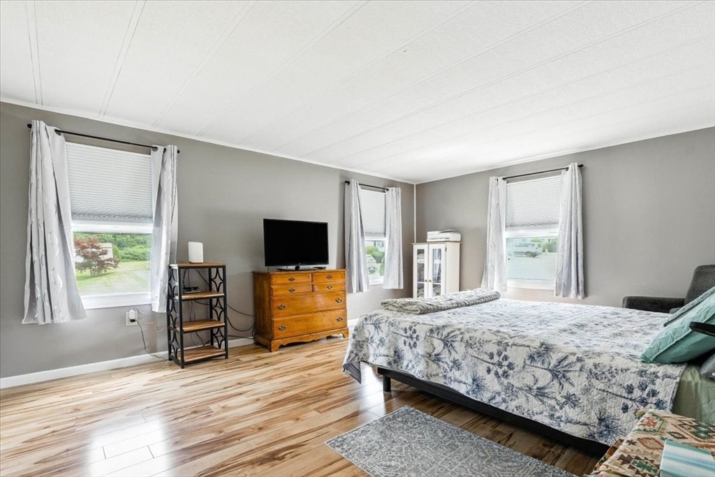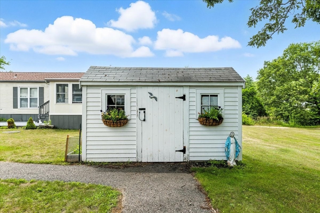 Welcome to Pinehurst Village. Located on a spacious corner lot, this well maintained home offers a large living room and a dining room with a custom built-in hutch. The kitchen has plenty of cabinet space including a pantry closet. There are 2 spacious bedrooms. As a bonus there's a versatile sunroom. There's a shed for extra storage, and you'll love the extra privacy the bordering open field provides. Too many recent updates to list here, see the attached List of Recent Updates. Come see what this over 55 community has to offer, including: clubhouse, swimming pool, hair salon, community room, workout area and lots of activities for those on the go! Park fee includes: water, septic, road maintenance, taxes & trash. A stone's throw from Plymouth Rock, Plymouth Beach, and all the shops and restaurants that the waterfront has to offer. Abutting Squirrel Run Golf Course. Minutes away from Route 3 provides easy access to Boston and Cape Cod. Dogs and cats allowed per park regulations.