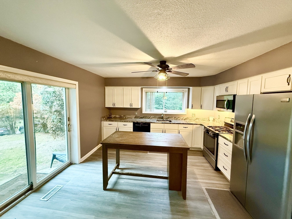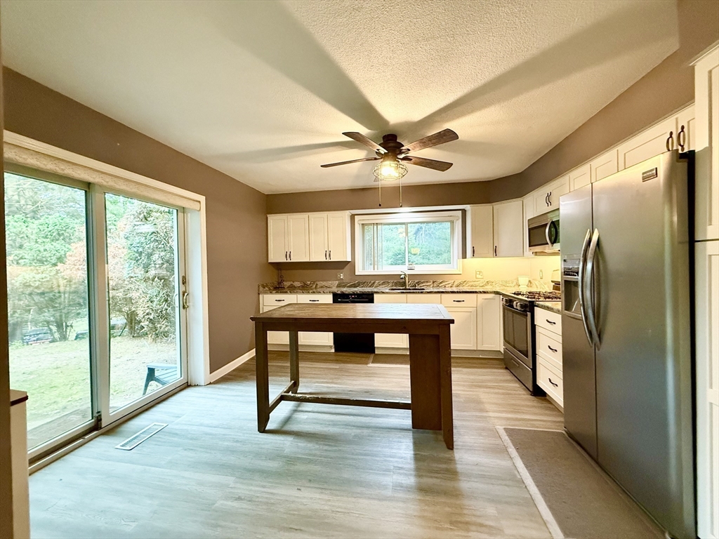 Spacious 3 Level Townhome in Serene Private Location in The Castles at Scotland Yard! Open Main Living Area w/ Huge Living Room/Dining Room with Fireplace and Newer Laminate Plank Flooring. Beautiful Remodeled Kitchen with White Cabinetry, Granite, Stainless Appliances and Large Pantry Cabinet. Updated Half Bath. Large Primary Bedroom with Vaulted Ceilings, double closets and Primary Bathroom. Good Sized Second Bedroom with double closets and Full Bath. Finished Lower Level Family Room. New Roof, New Chimney Cap, HVAC Approx 12yrs , HW Tank Approx 8yrs. Smart Garage Door opener with Camera and Phone Operation. Lovely Private Courtyard Area. Convenient Location is Just Minutes to Rt 146.
