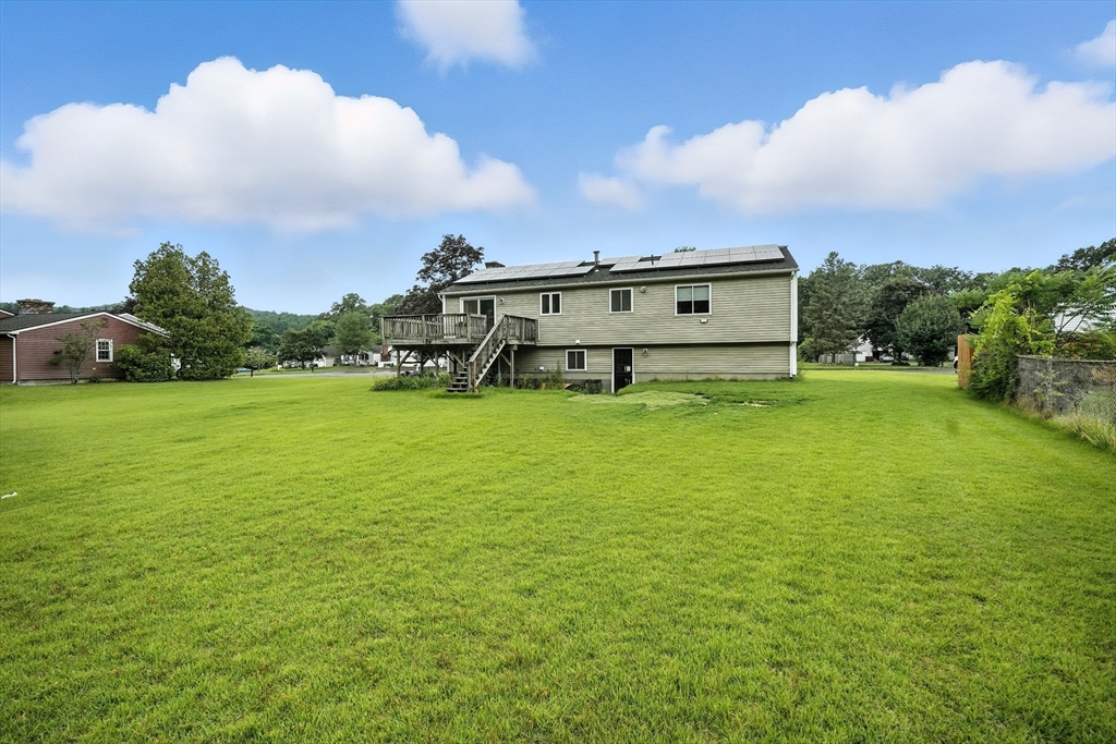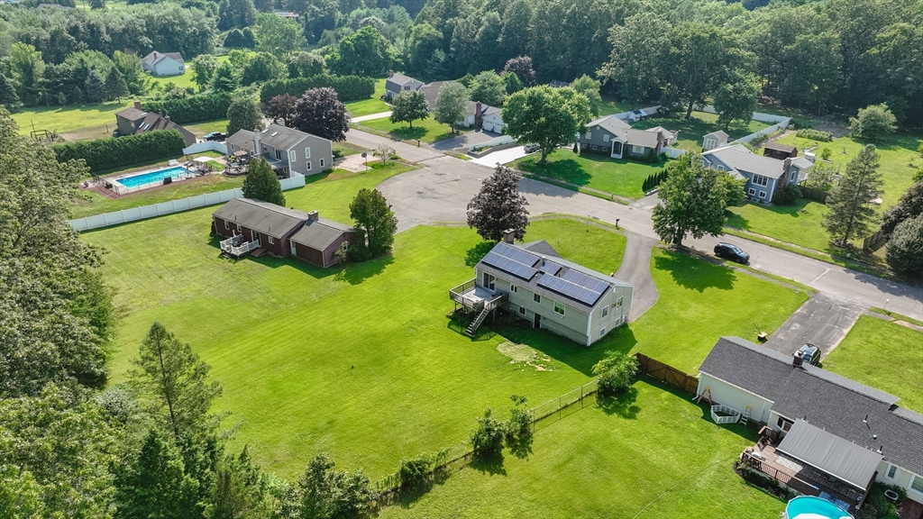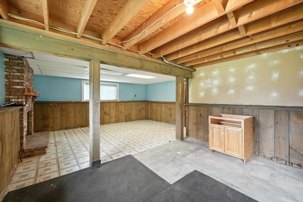 Tucked away on a quiet dead-end cul-de-sac, this charming home sits on a beautifully level lot offering peace, privacy, and potential. Inside, you’ll find 3 comfortable bedrooms, a full bath,and an updated kitchen that flows seamlessly into the dining area—perfect for everyday living and entertaining. The spacious living room features soaring lofted ceilings, adding light and openness to the heart of the home. Downstairs, the finished basement boasts a cozy rec room with a fireplace and sliders that lead out to the backyard—ideal for gatherings or relaxing evenings. The laundry room is plumbed for a potential half bath improvement. Major updates are already in place: roof, siding, and windows have all been well-maintained. Just bring your style and vision to make the interior truly shine. Bonus: The solar panels assist with the electric costs, adding value and energy efficiency to your investment. Don’t miss the opportunity to make this gem your own!