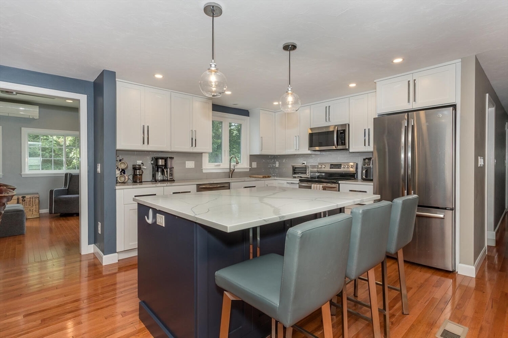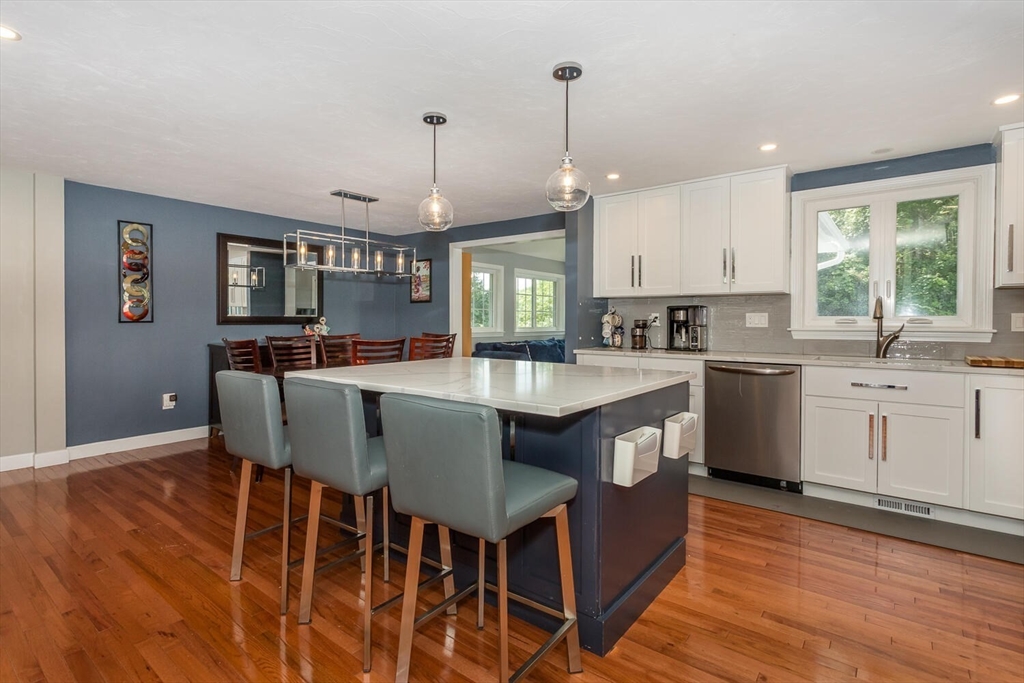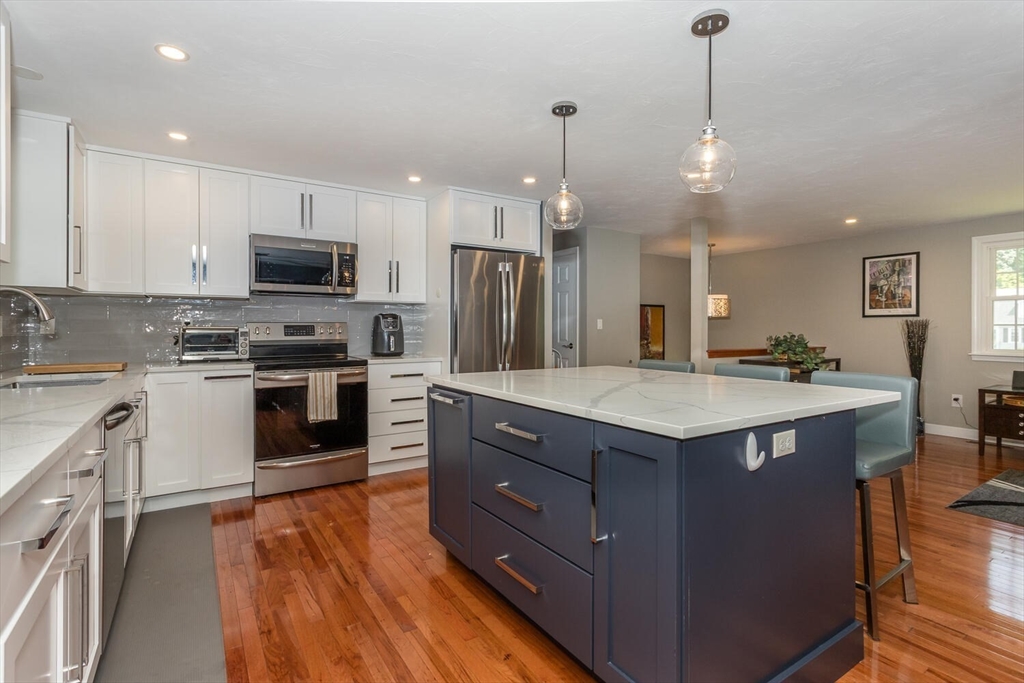 Welcome to this beautifully renovated 4-bedroom, 3-bath home, perfectly situated on a quiet cul-de-sac in the highly desirable Canton Highlands neighborhood. Enjoy the benefits of a well-maintained association that features a playground, courts, and a sparkling inground pool with lifeguard-perfect for summer fun.Step inside to discover an open-concept floor plan designed for modern living. The renovated granite kitchen is a true showstopper, complete with a center island, stainless steel appliances, and ample cabinetry. All three full bathrooms have been thoughtfully updated with stylish finishes, while gleaming hardwood floors flow seamlessly throughout the home. And, the finished lower level offers a spacious family room—ideal for entertaining or relaxing, and an additional bedroom. Outside the home, the beautifully landscaped backyard, perfect for gatherings or quiet evenings under the stars. The location is a commuter's dream - just minutes to both MBTA stations and Highways...
