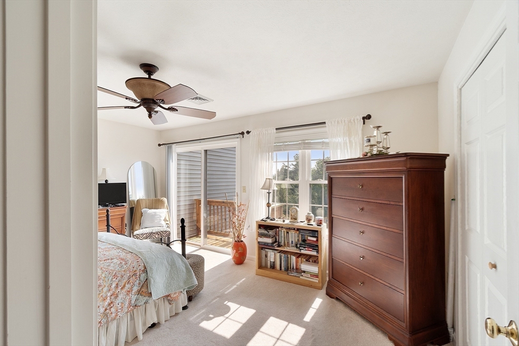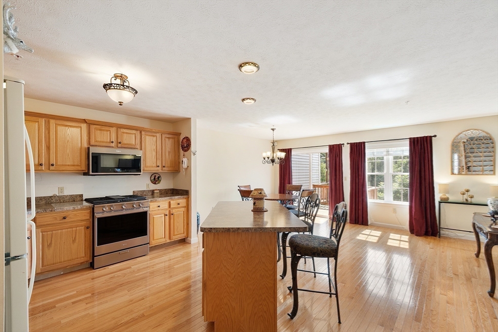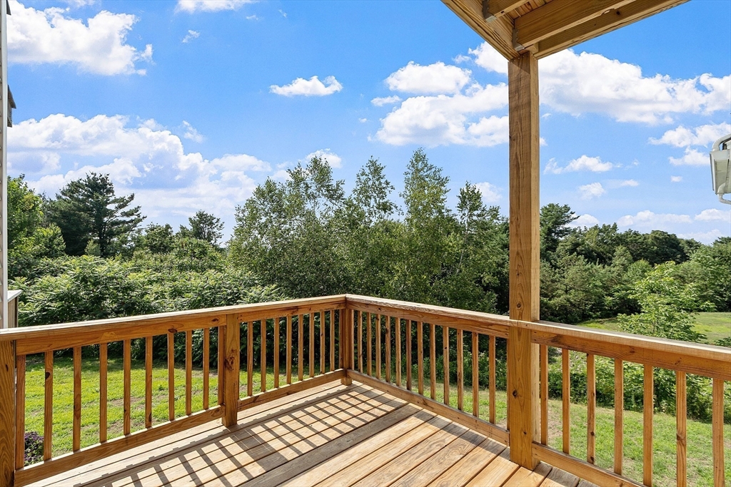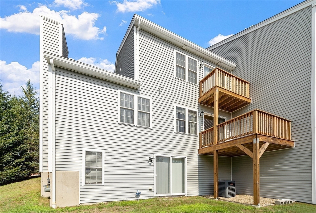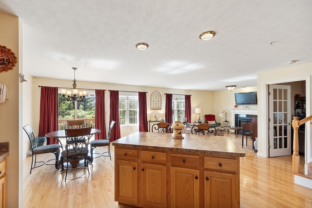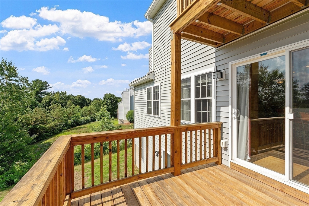 Welcome to this meticulously maintained end unit in desirable Oak Ridge Estates. This 2-bedroom, 1.5-bath condo offers a flexible first-floor bonus room, a finished walk-out basement, and an attached one-car garage. Enjoy an open-concept living area with hardwood floors, a gas fireplace, and sliders to a private deck with scenic views of Mount Wachusett. The kitchen features a center island, ample cabinetry, and a gas range. Upstairs, the spacious primary suite includes a private balcony and double closet. A second large bedroom, laundry area, and a full bath with dual vanity, jetted tub, and separate shower complete the upper level. Additional highlights include a central vacuum, custom blinds, upgraded lighting, and a heated basement with additional expansion potential. Conveniently located near Rt 2, the Wachusett Commuter Rail, Leominster State Forest with swimming, fishing & hiking and Wachusett Mountain Ski Area.