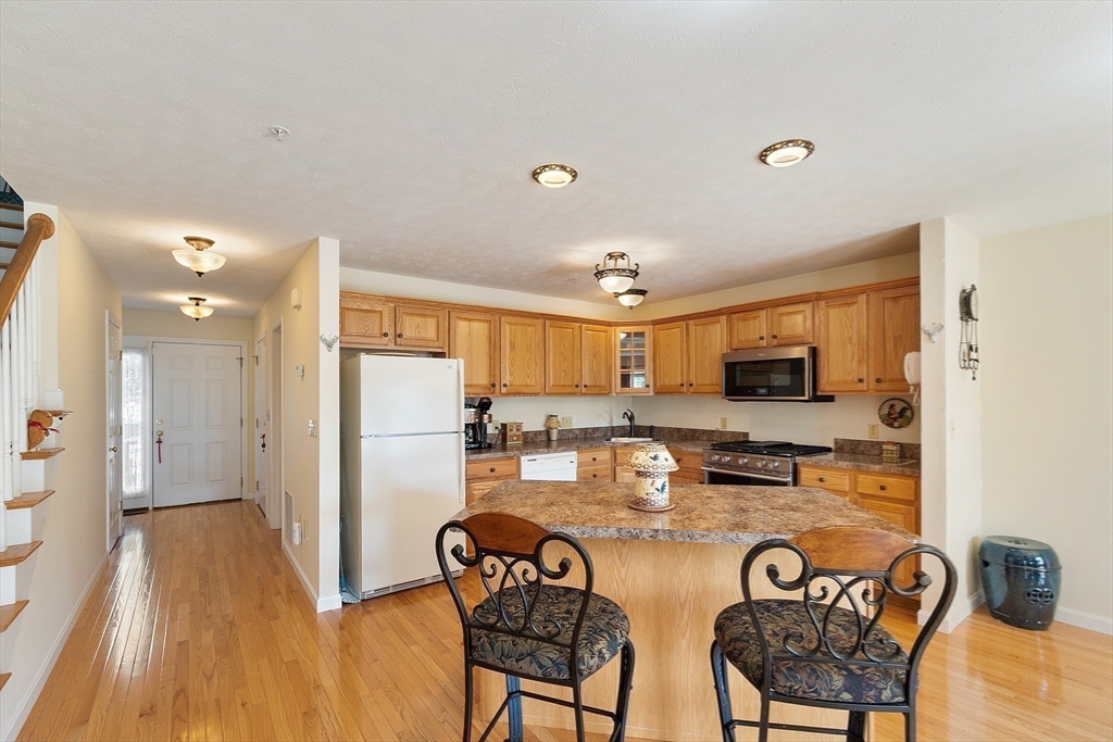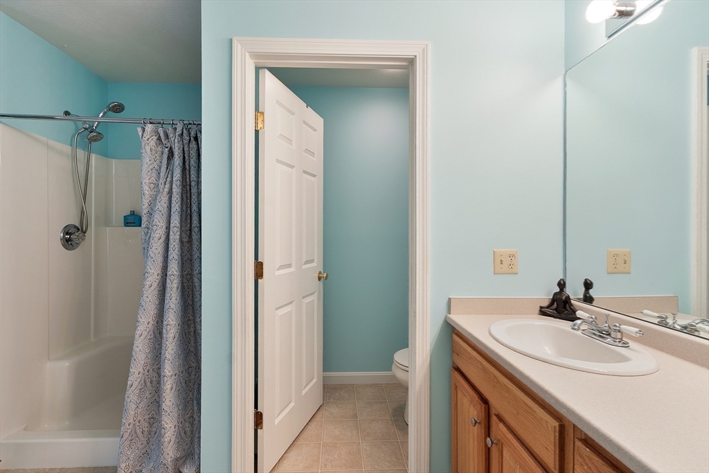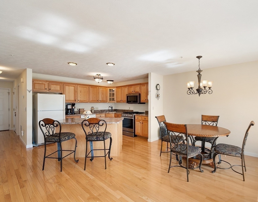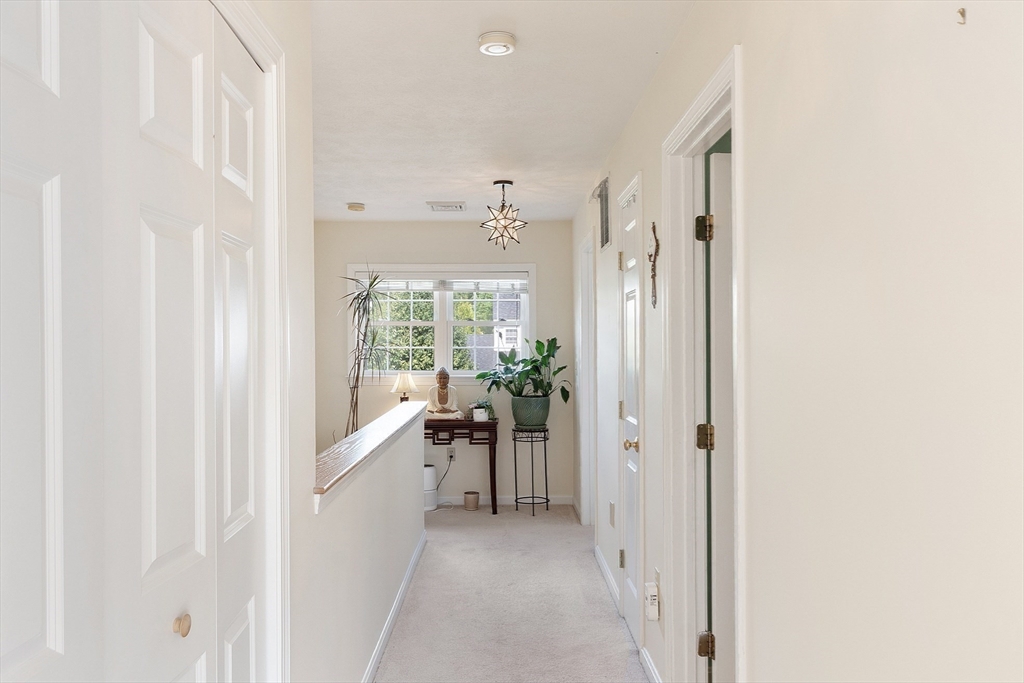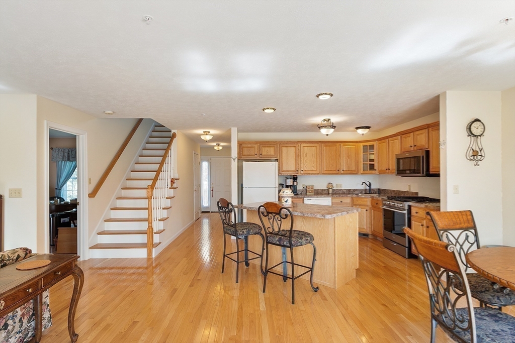 Welcome to this meticulously maintained end unit in desirable Oak Ridge Estates. This 2-bedroom, 1.5-bath condo offers a flexible first-floor bonus room, a finished walk-out basement, and an attached one-car garage. Enjoy an open-concept living area with hardwood floors, a gas fireplace, and sliders to a private deck with scenic views of Mount Wachusett. The kitchen features a center island, ample cabinetry, and a gas range. Upstairs, the spacious primary suite includes a private balcony and double closet. A second large bedroom, laundry area, and a full bath with dual vanity, jetted tub, and separate shower complete the upper level. Additional highlights include a central vacuum, custom blinds, upgraded lighting, and a heated basement with additional expansion potential. Conveniently located near Rt 2, the Wachusett Commuter Rail, Leominster State Forest with swimming, fishing & hiking and Wachusett Mountain Ski Area.