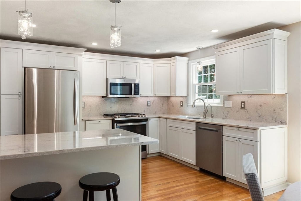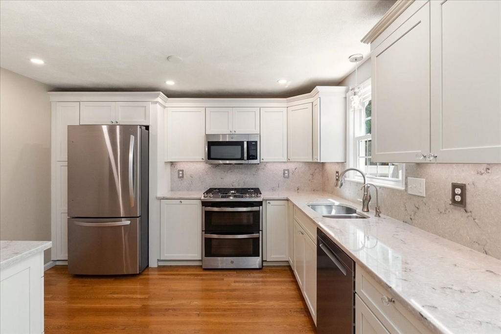 This well-laid-out, sunny townhouse is the perfect spot for your next move. The spacious living room flows into the dining area, with a slider to your private patio (replaced in 2024). Renovated in 2024, the kitchen has a clean, modern look with stainless steel appliances, stone countertops, and an installed sink water filter. New luxury Pergo flooring on the second floor unites the two generous bedrooms, one of which opens into a full bath with laundry (also accessible from the hall). The third floor offers endless options with a wide-open room complete with cozy fireplace. If you need even more space, the finished room in the basement is ready for your ideas, and the unfinished part provides plenty of storage space. This unit backs up to Summer Hill conservation area with easy access to walking trails. Move in this summer and enjoy the association's pool, tennis court, playground, garden, and pond! Conveniently located to all Maynard attractions.