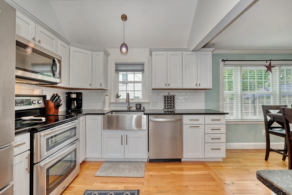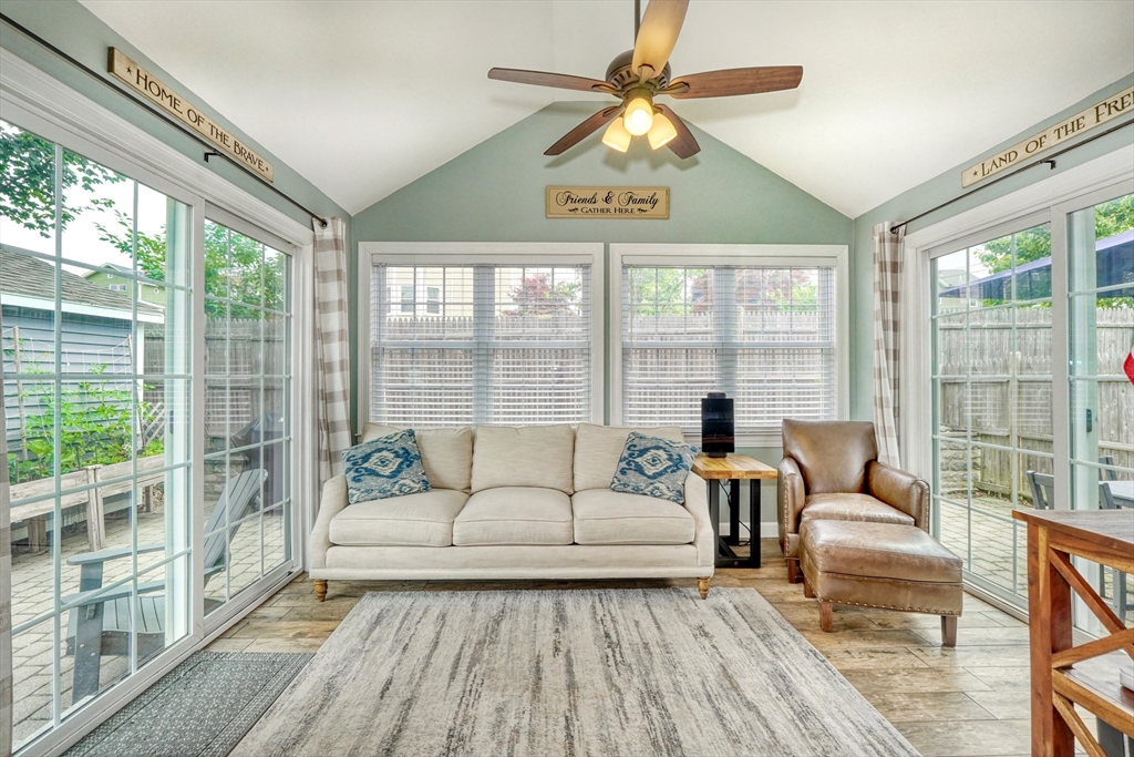 Welcome home to this move in ready cape tucked into one of Boston's best neighborhoods,Fairmont Hill. Gorgeous kitchen with granite counters, farmers sink, stainless steel appliances, and upgraded cabinets. Entertain friends and family in the open concept dining area / formal living room with gas fireplace, and custom mantle and surround. The first floor features a large bedroom, hardwood floors, and a renovated full bathroom. In addition, there is a former 4th bedroom used as a den/ playroom, as well as a newly renovated 4 season room with vaulted ceiling and direct access to fenced yard. Newer cedar impressions vinyl siding, new architectural shingle roof, new high efficiency heat pump / central air as well as a high efficiency hot water tank. Ecobee thermostats, new vinyl privacy fencing and ample patio space to enjoy spring, summer, and fall with family and friends.1 Car attached garage with newer garage door and opener, and convenient location close to highways, MBTA, & Blue Hills