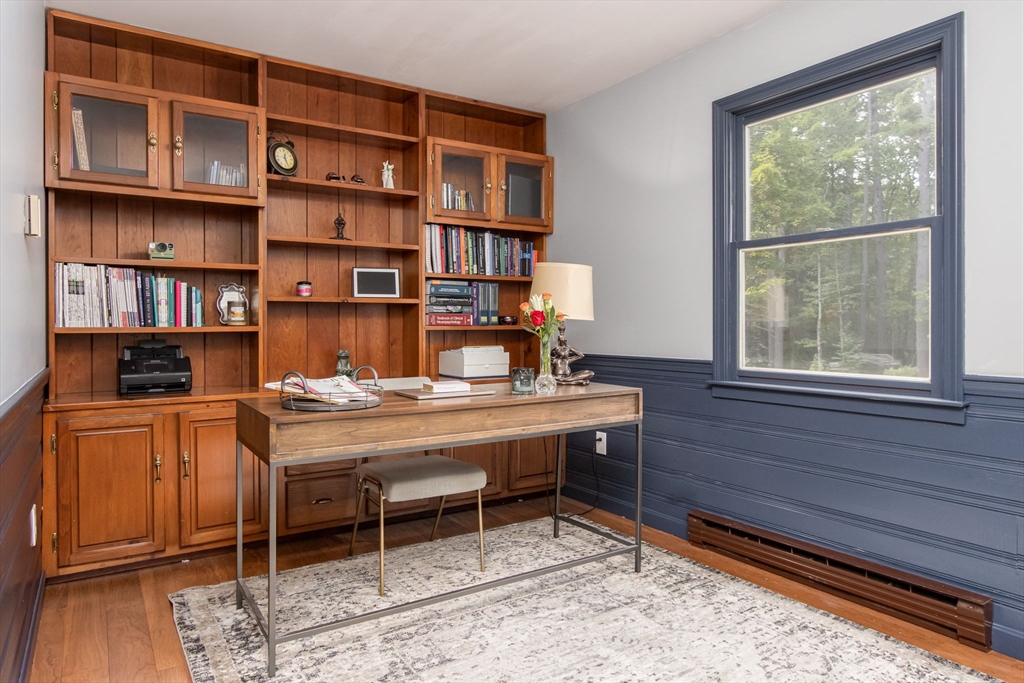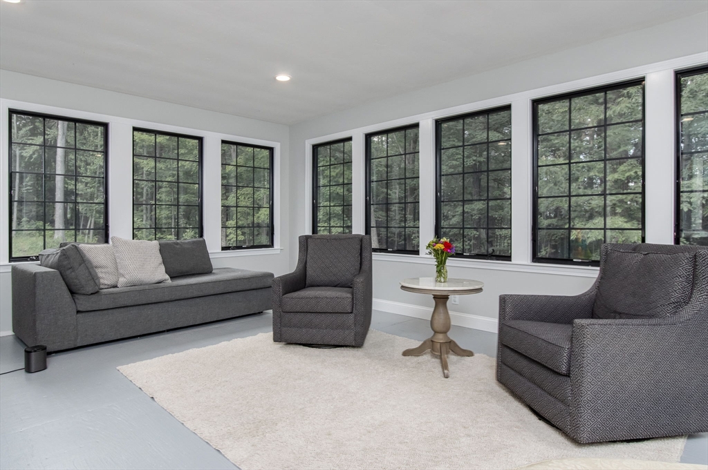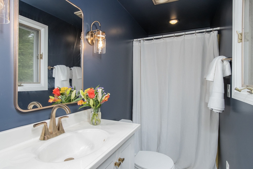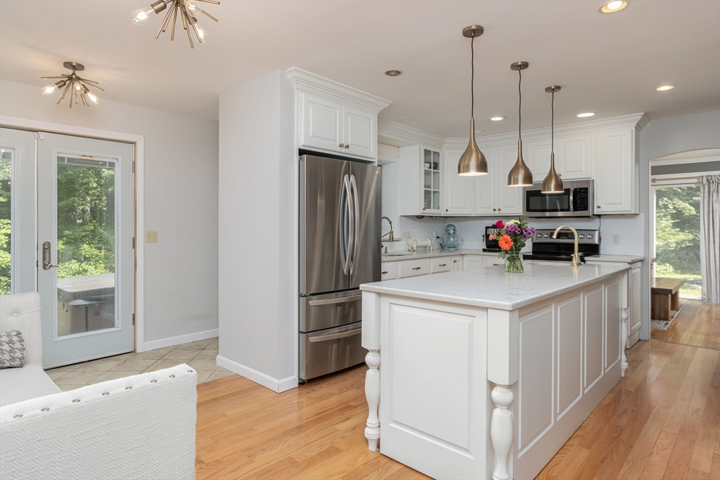 Look no further than this private 2-acre sanctuary tucked away in a quaint New England town! Experience old-world charm of 2 family rooms complete with brick fireplaces. Spacious custom kitchen with large marble island/counters, designer gold hardware, fixtures, & bar/primary faucets is a chef or entertainer’s dream! Chic remodeled bathroom with high quality finishes is just off kitchen. Retreat to the office/library set apart from main living area, with custom shelving & hues of deep blue/walnut. Embrace tranquility listening to wildlife, or watching snow fall in the stunning remodeled bonus room lined with oversized custom windows. Retreat upstairs to the master suite/updated bathroom with spa-like ambience, & 3 more bedrooms/modern bathroom. High-end light fixtures, coupled with new floors/baseboards throughout 2nd level creates an atmosphere of sheer elegance. Huge laundry & adjacent cold storage room leaves room for expansion & endless possibilities! Don’t miss out on this gem!