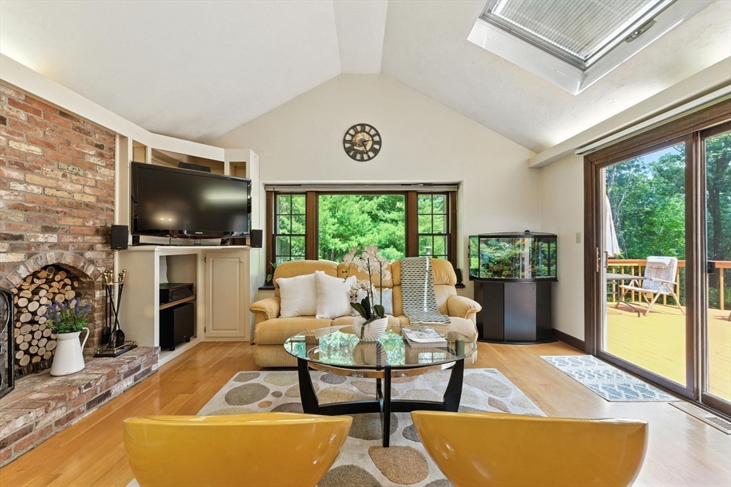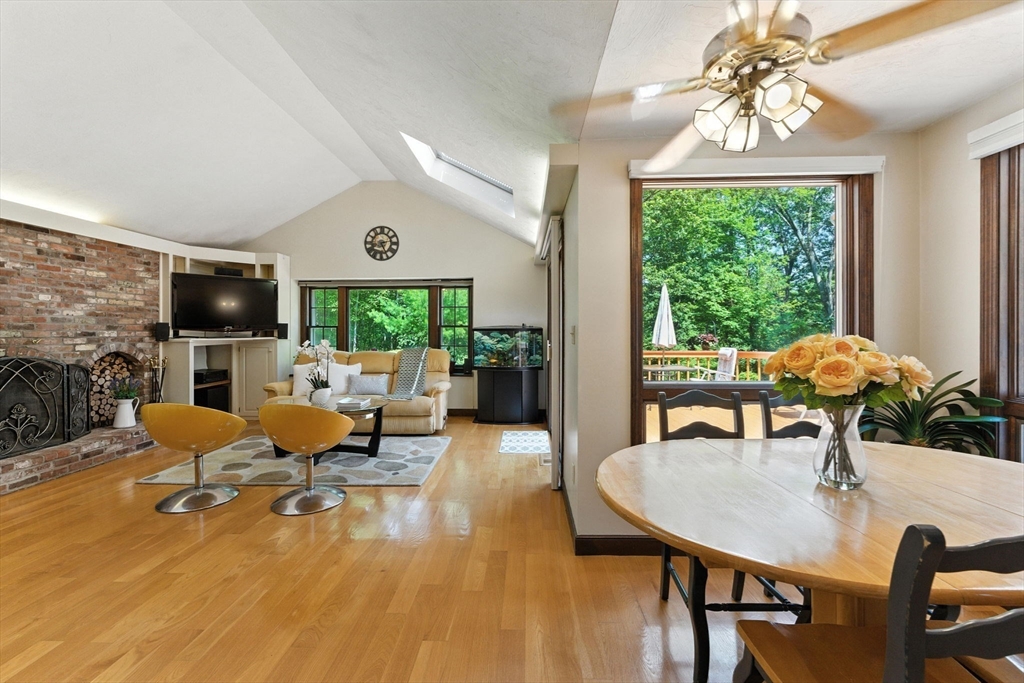 Indulge in suburban living with this meticulously maintained 4-bedroom, 2.5-bath colonial set back from the road in a sought-after Acton neighborhood. Surrounded by mature trees and lush landscaping, this home offers exceptional privacy and tranquility. Gleaming hardwood floors and a well-designed layout welcome you with sun-filled formal living and dining rooms and a vaulted family room with fireplace, skylights, and a bay window overlooking the serene, tree-lined backyard. The spacious kitchen boasts an open floor plan, stainless steel appliances, and Corian countertops. Step out onto the expansive deck and enjoy the peaceful yard, adorned with vibrant flowering gardens, mature greenery, and visiting birds and woodland creatures. Upstairs offers a serene primary suite with updated bath, plus 3 freshly painted spacious bedrooms. The finished lower level includes a bonus living area with bar, and 2-car garage. Close to shops, Route 2, commuter rail, and recreation. Don’t miss this gem!