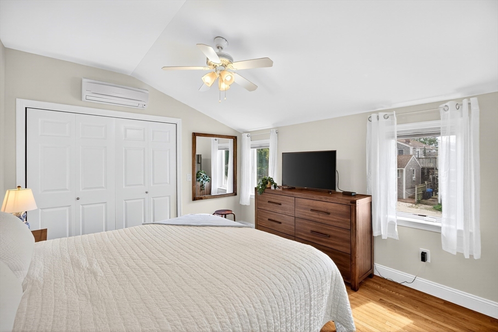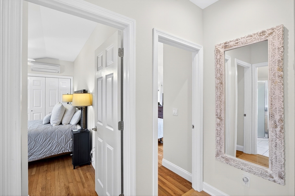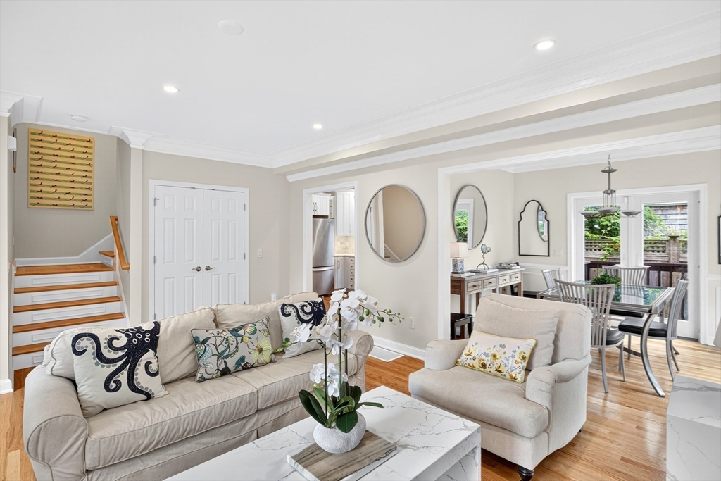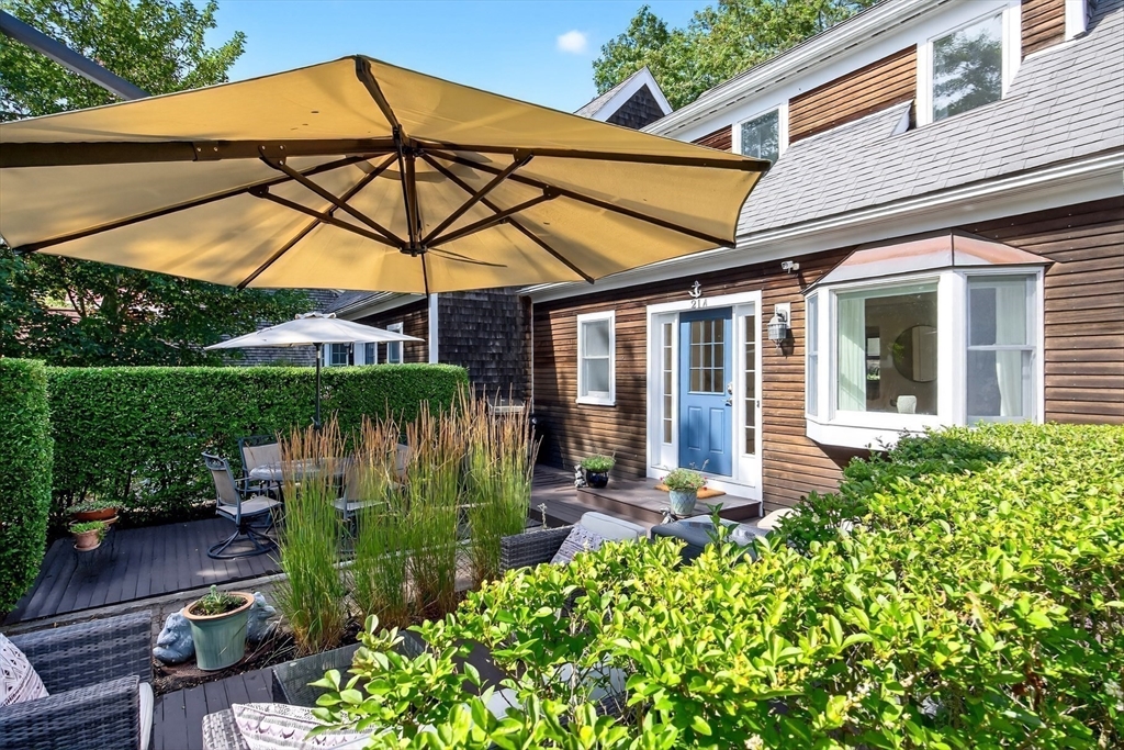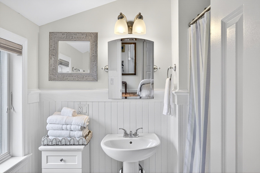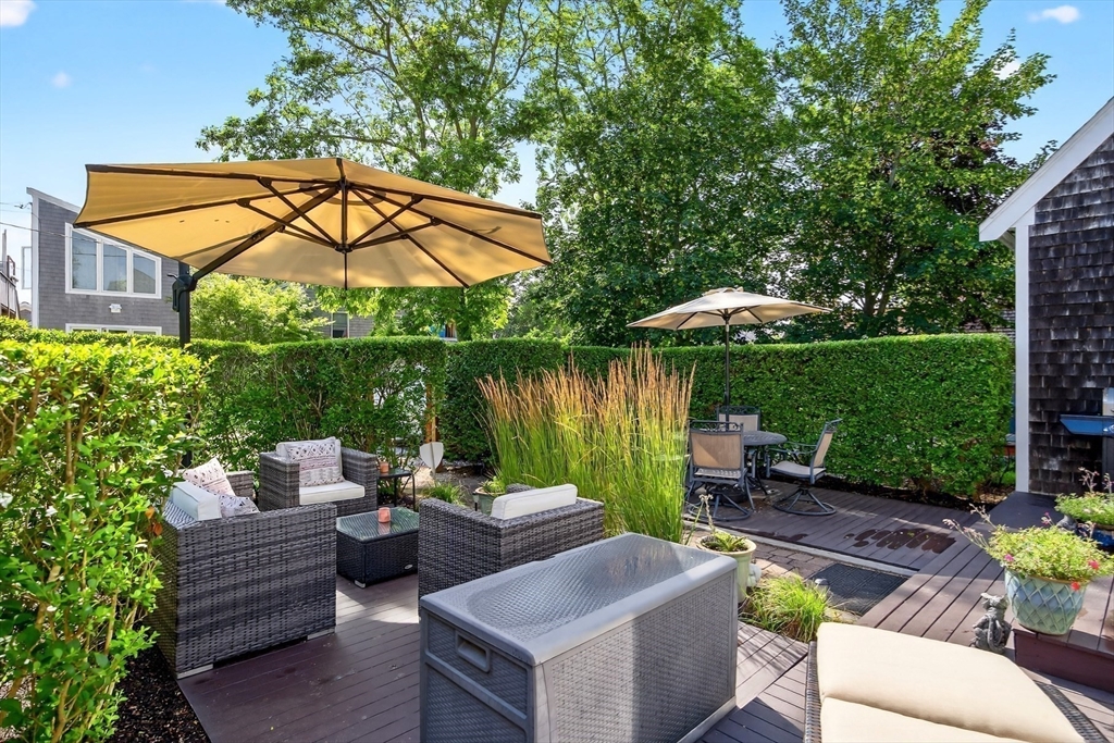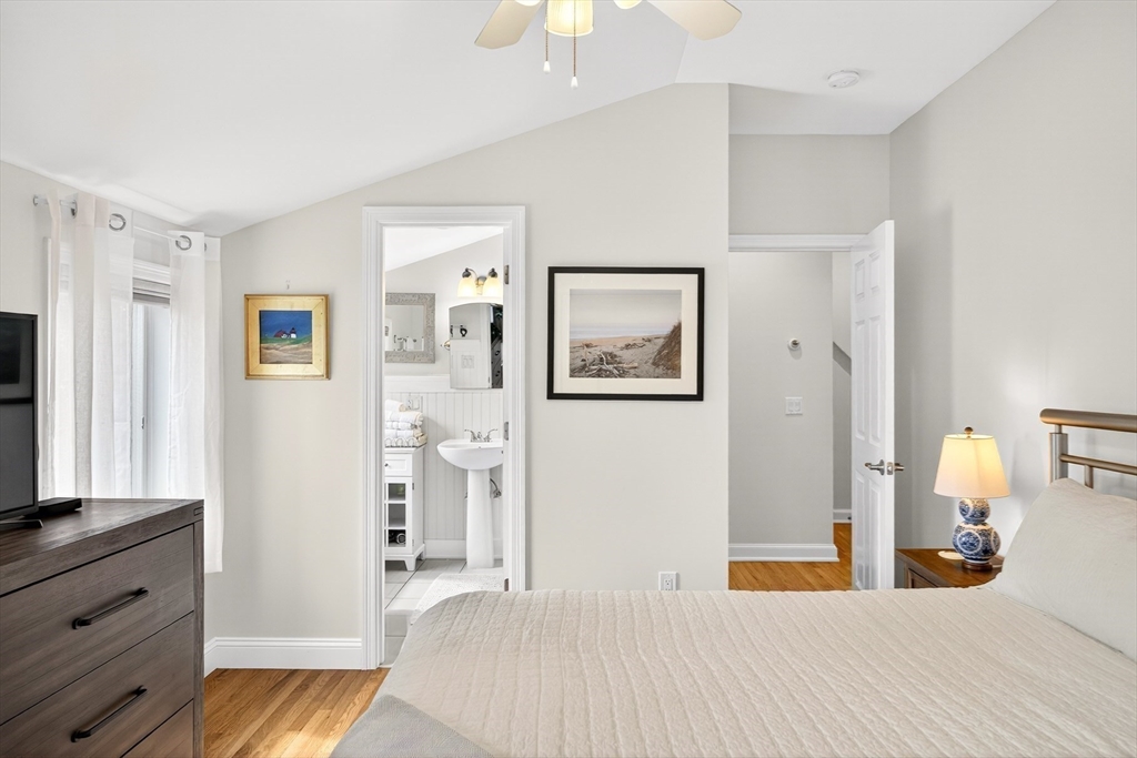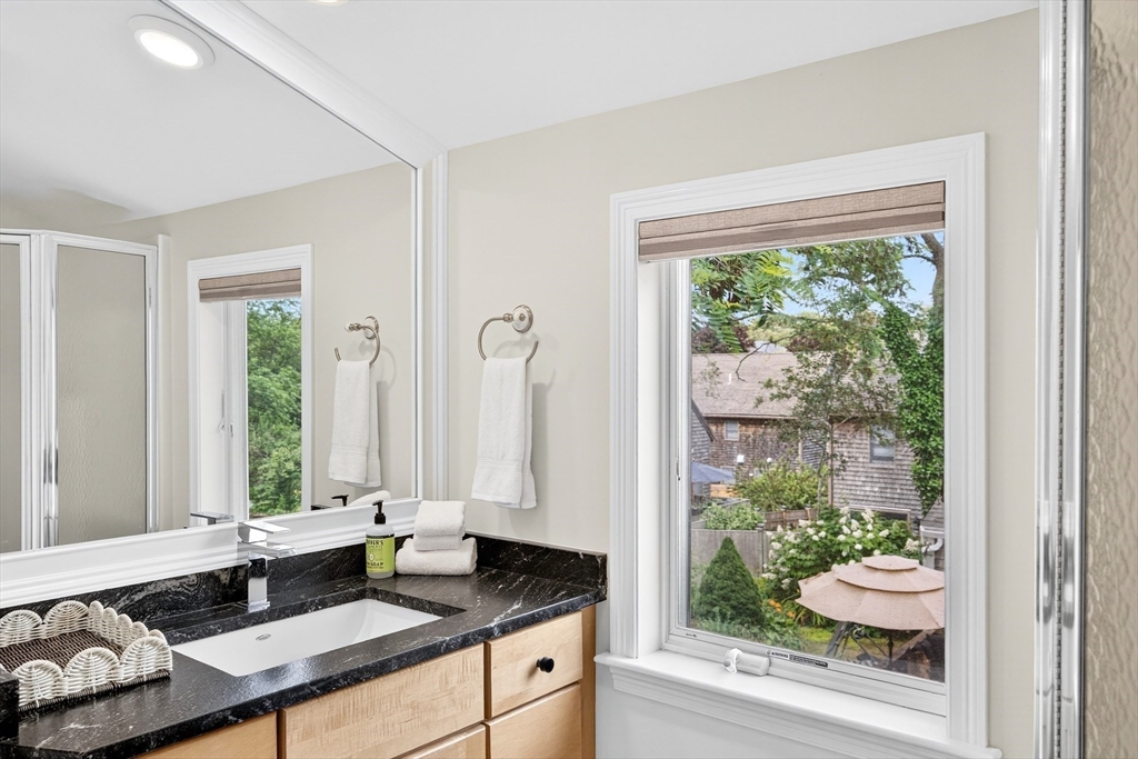 Settled into the rise of Miller Hill, 21 Priscilla Alden Road, Unit A is a peaceful retreat moments from Provincetown's vibrant center. Thoughtfully updated throughout, the home features a soft, sunlit palette, richly finished hardwood floors, custom crown molding, and a Carrara marble fireplace. The kitchen blends beauty and function with spray-finished cabinetry, marble countertops and backsplash, and artisan trim. Bathrooms are appointed with beadboard walls, curated tilework, and tailored finishes. A finished lower level offers flexible living or work space, while two exclusive outdoor areas invite quiet moments or casual entertaining. Recent exterior improvements include refreshed cedar siding, new decking, and upgraded trim. Central air, in-unit laundry, and two parking spaces complete the package. Pets are welcome, and weekly rentals are permitted. This is a refined, move-in-ready Provincetown home in a tranquil setting near everything.