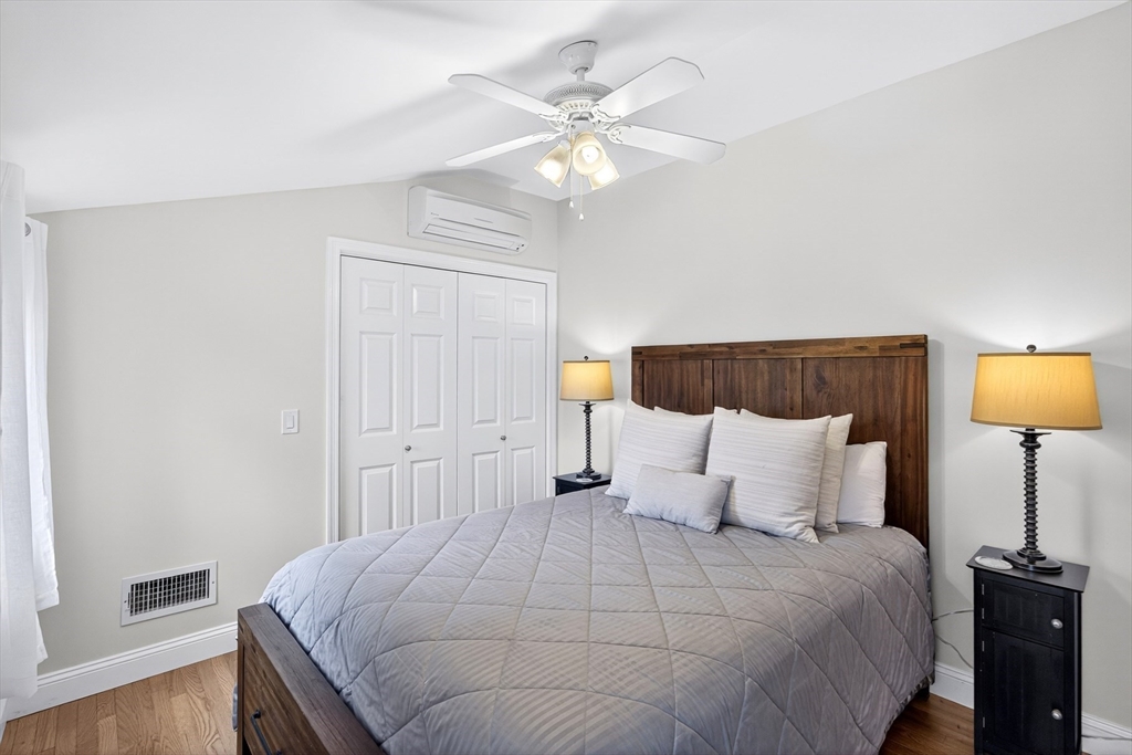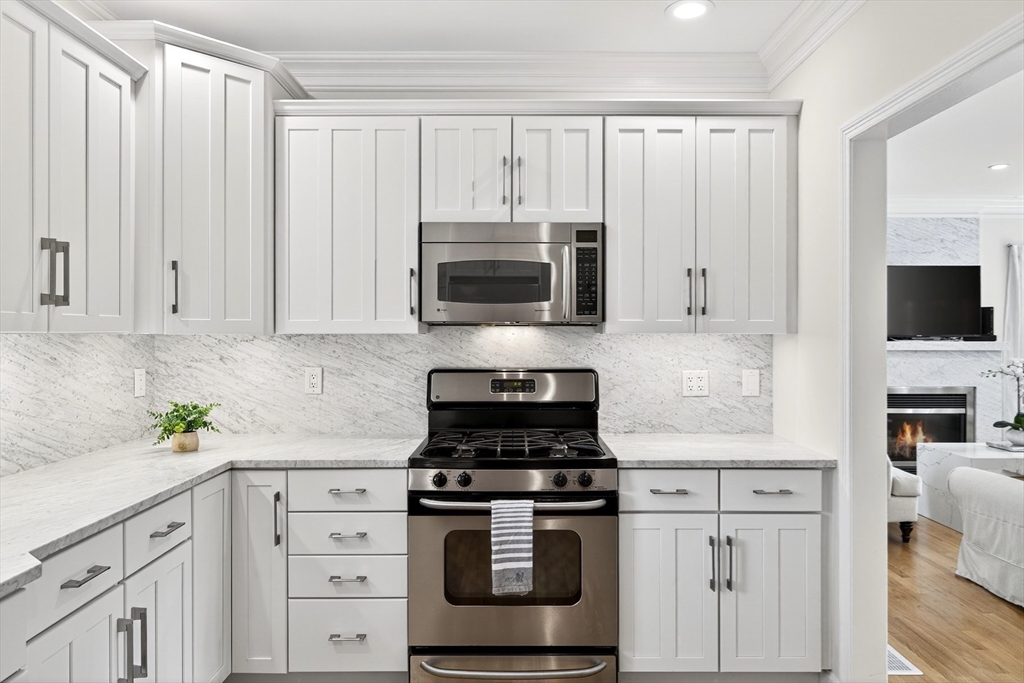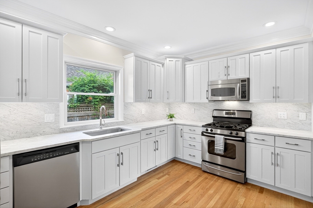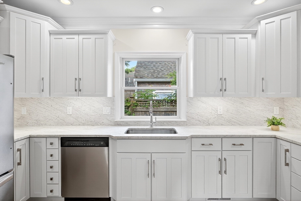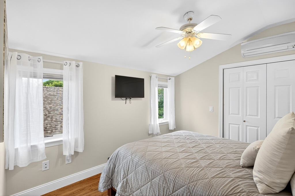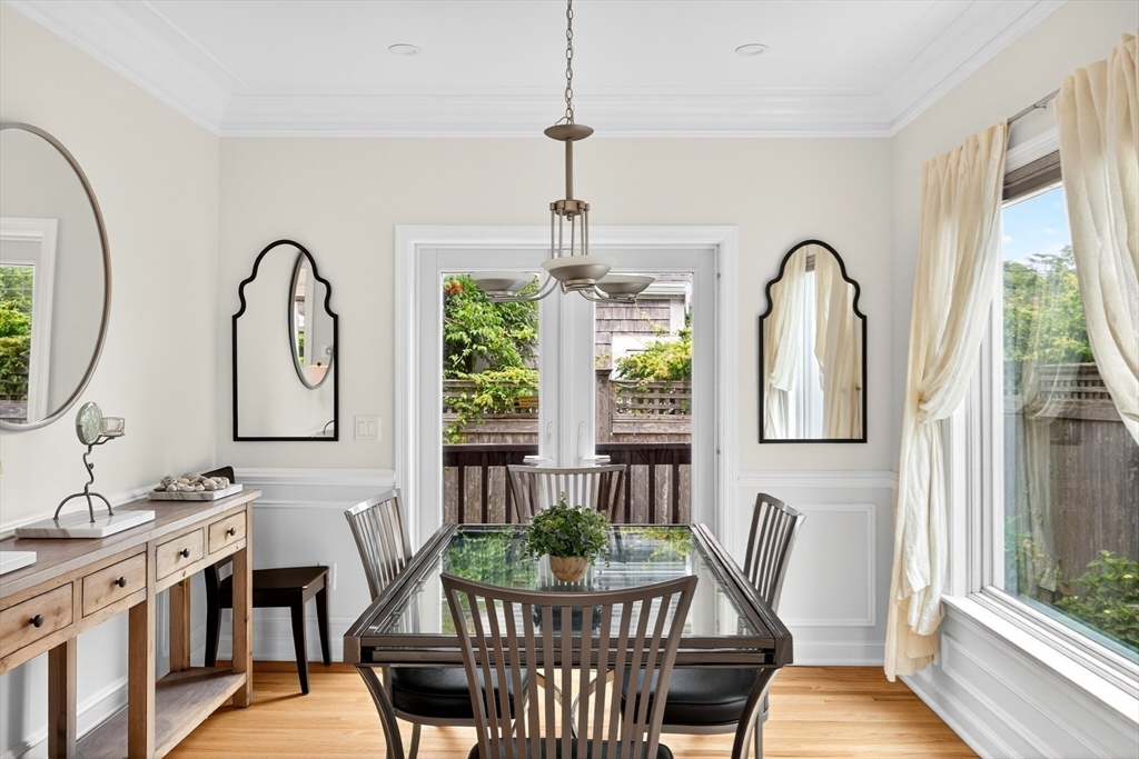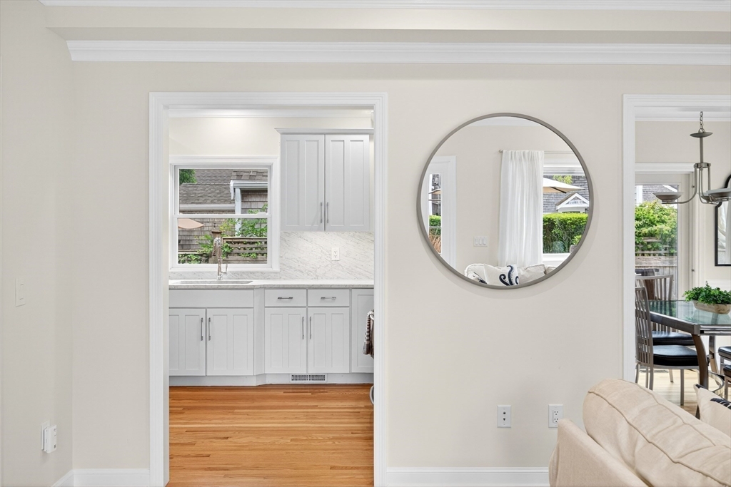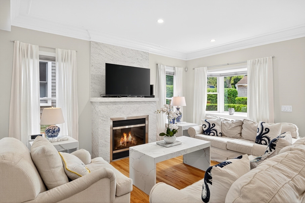 Settled into the rise of Miller Hill, 21 Priscilla Alden Road, Unit A is a peaceful retreat moments from Provincetown's vibrant center. Thoughtfully updated throughout, the home features a soft, sunlit palette, richly finished hardwood floors, custom crown molding, and a Carrara marble fireplace. The kitchen blends beauty and function with spray-finished cabinetry, marble countertops and backsplash, and artisan trim. Bathrooms are appointed with beadboard walls, curated tilework, and tailored finishes. A finished lower level offers flexible living or work space, while two exclusive outdoor areas invite quiet moments or casual entertaining. Recent exterior improvements include refreshed cedar siding, new decking, and upgraded trim. Central air, in-unit laundry, and two parking spaces complete the package. Pets are welcome, and weekly rentals are permitted. This is a refined, move-in-ready Provincetown home in a tranquil setting near everything.