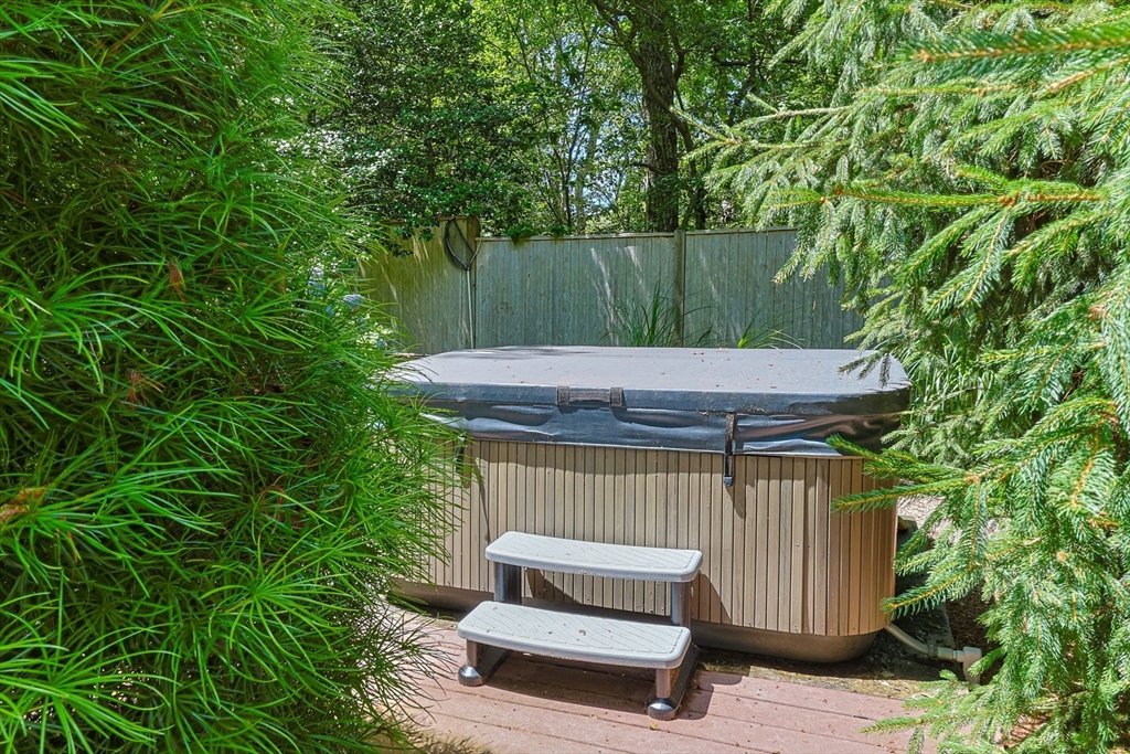 Tucked away in the woods of Brewster, this inviting 3-bedroom, 2-bath Cape offers the perfect blend of privacy, comfort, and connection to nature. Part of the sought-after Beachwood Landing Association, you'll enjoy exclusive access to both Greenland Pond and Long Pond, ideal for swimming, kayaking, or relaxing at the private beach, shaded pavilion, or association dock. The exterior is a true haven for outdoor living, featuring a tranquil koi pond, hot tub, outdoor shower, and mature landscaping that frames the private yard. A spacious shed provides excellent storage for tools, beach gear, or hobby equipment. Inside, modern updates enhance the home's cozy charm. Enjoy a newly renovated kitchen with updated appliances, energy-efficient mini splits throughout, new windows, and an upgraded electrical panel. Whether you're seeking a year-round residence, a vacation retreat, or an investment opportunity, this property delivers flexibility, comfort, and a true connection to Cape Cod living.