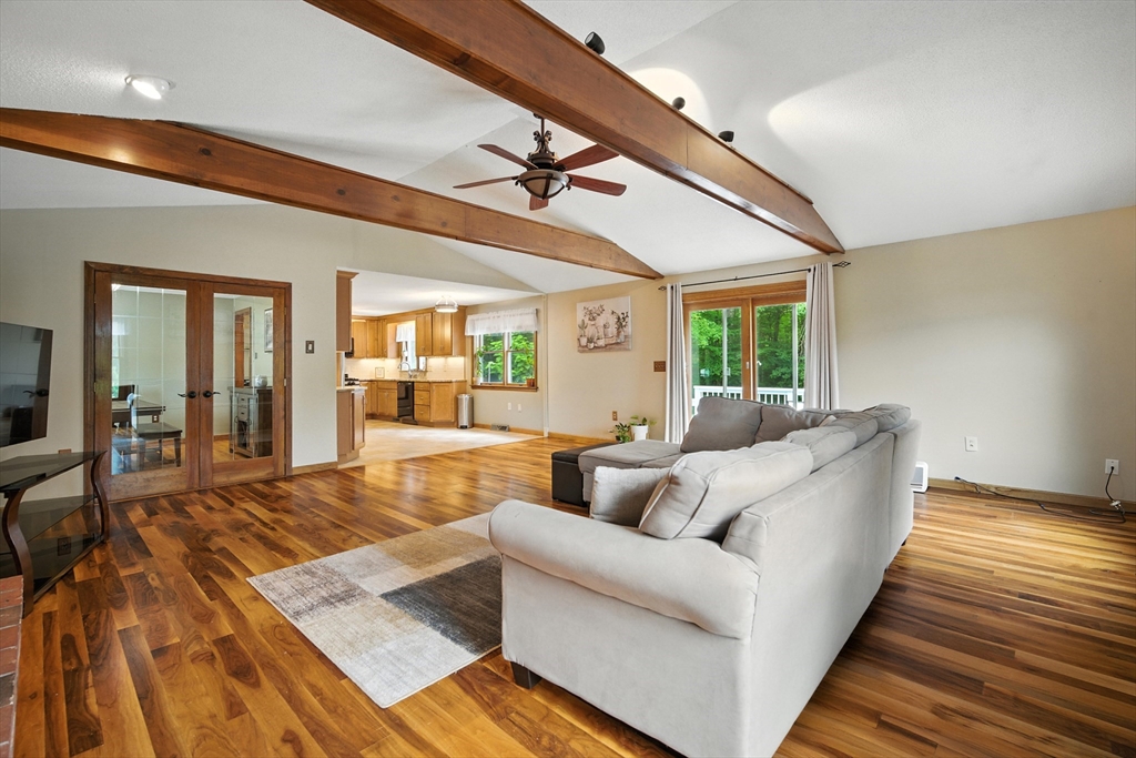 Welcome to this stunning Colonial home tucked away in a highly desirable area! Set on a spacious .76-acre lot, this property includes an additional 2.25 acres of non-buildable land, perfect for nature lovers to explore, unwind, and enjoy the tranquil creek. This well-maintained home offers 3 generously sized bedrooms with the potential for a 4th, 2 full bathrooms, and a convenient half bath. Step into the open floor plan where a newer kitchen featuring granite countertops and stainless steel appliances flows seamlessly into a massive living room with soaring high ceilings, a gas fireplace, and stunning American Walnut flooring. Enjoy entertaining on the expansive deck, ideal for gatherings, outdoor dining, or simply relaxing while surrounded by nature. The home also offers a finished room in the basement—perfect for a home office, gym, or guest space. Additional highlights include a 2-car garage, central air, forced air gas heating, and central vacuum. Don’t miss this rare opportunity!