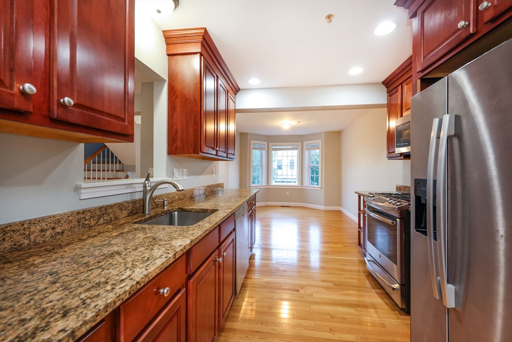 Corner unit townhome at a great location and on a quiet dead-end street, with minutes to I-95 Highway, shopping malls, grocery stores and restaurants. This bright and young 4-level townhome boasts an open floor living with garage parking and move-in condition. It features a formal living room with a fireplace, and an eat-in kitchen with cherry cabinets, granite counters, and stainless-steel appliances. Off the living room, enter through the doors to your oversized deck, where you'll find yourself relaxing on those summer days & nights.The large ensuite main bedroom has a walk in closet and private views.Bonus room on the 3rd floor and fully finished basement provide additional spaces for a family room, media room or home office.