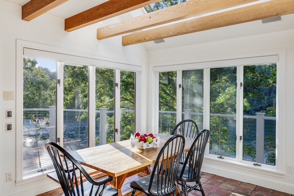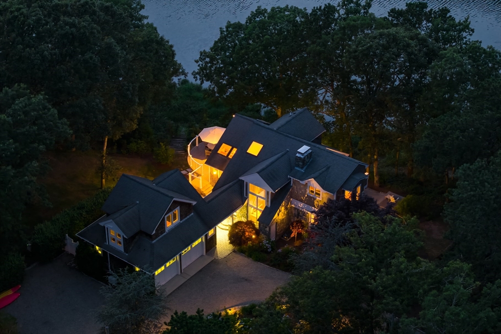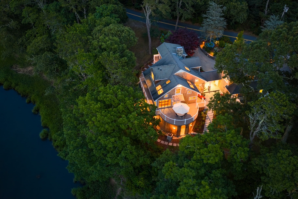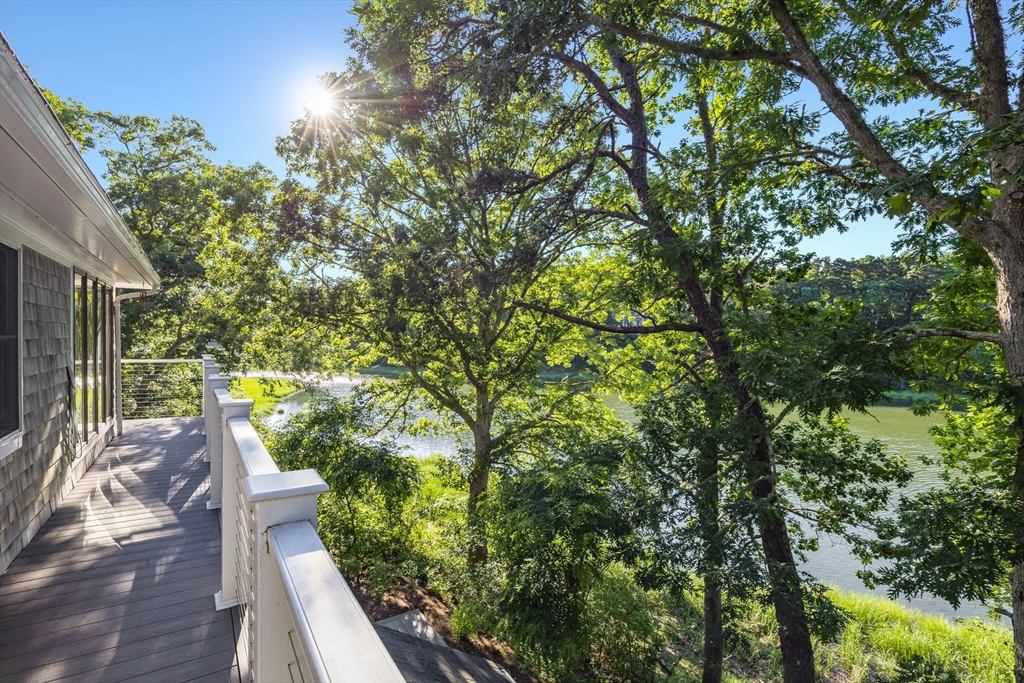 Set along one of Orleans’ most scenic and protected saltwater corridors, this waterfront retreat captures the essence of coastal living—calm, connected, and deeply restorative. The setting is remarkably private, with elevated views, natural light, and direct access to the water for kayaking, paddleboarding, or launching into Pleasant Bay—one of Cape Cod’s premier boating destinations. Inside, the home unfolds across three finished levels, thoughtfully designed for everyday comfort and multigenerational living. The main level features a sunken living room with fireplace, formal dining with wet bar, and French doors opening to expansive decks. Upstairs, a secluded primary suite includes a sitting area, walk-in closet, and private balcony. The walk-out lower level provides flexible guest space. Custom finishes, architectural detail, and multiple indoor-outdoor zones complete this timeless coastal retreat.