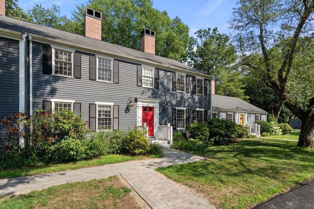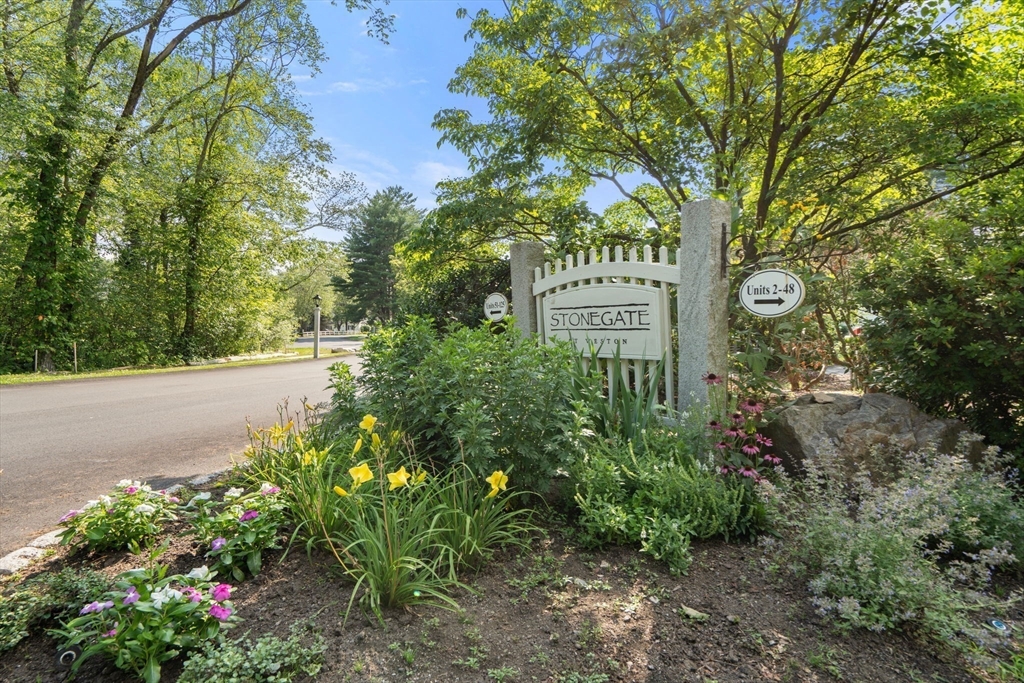 Beautifully maintained condo in the desirable Stonegate at Weston. Much admired townhouse features 2 spacious bedrooms with double closets, 2 newly renovated baths with beautiful vanities, tile showers and glass doors. Updated kitchen with white cabinets, new quartz countertops, new sink and faucet, new island with cooktop and stainless steel appliances. Spacious living room with fireplace and slider to private back yard, patio, stonewalls and gardens. New recessed lighting, gleaming hardwood floors, new washer/dryer, plus two deeded parking spaces. Enjoy all Weston has to offer including its location, #1 rated schools, community involvement, newly renovated town center, Art and Innovation Center, Rail Trail, open spaces and scenic roadways. Showings begin at NOON on Sat 7/19, OPEN HOUSE.