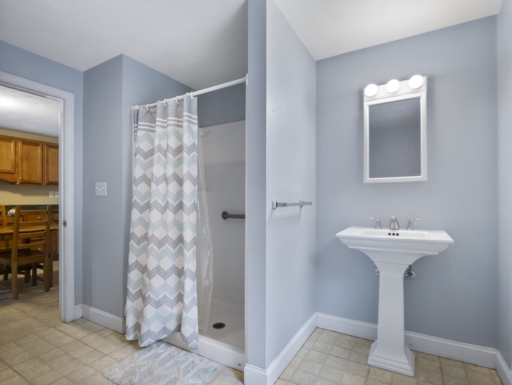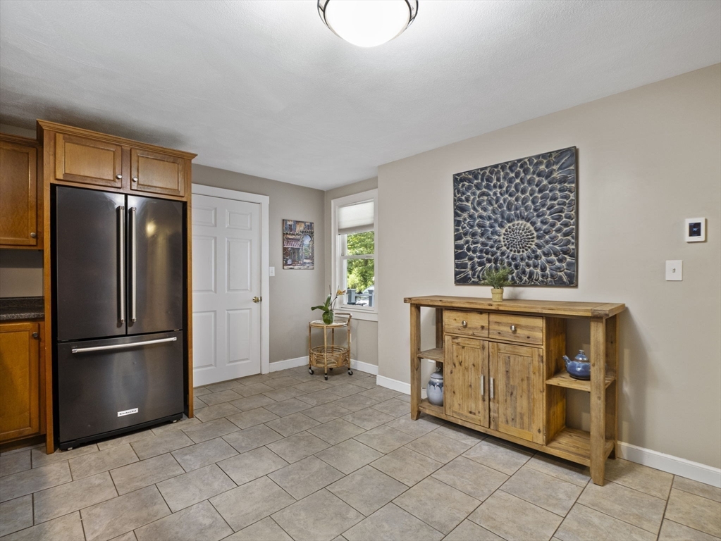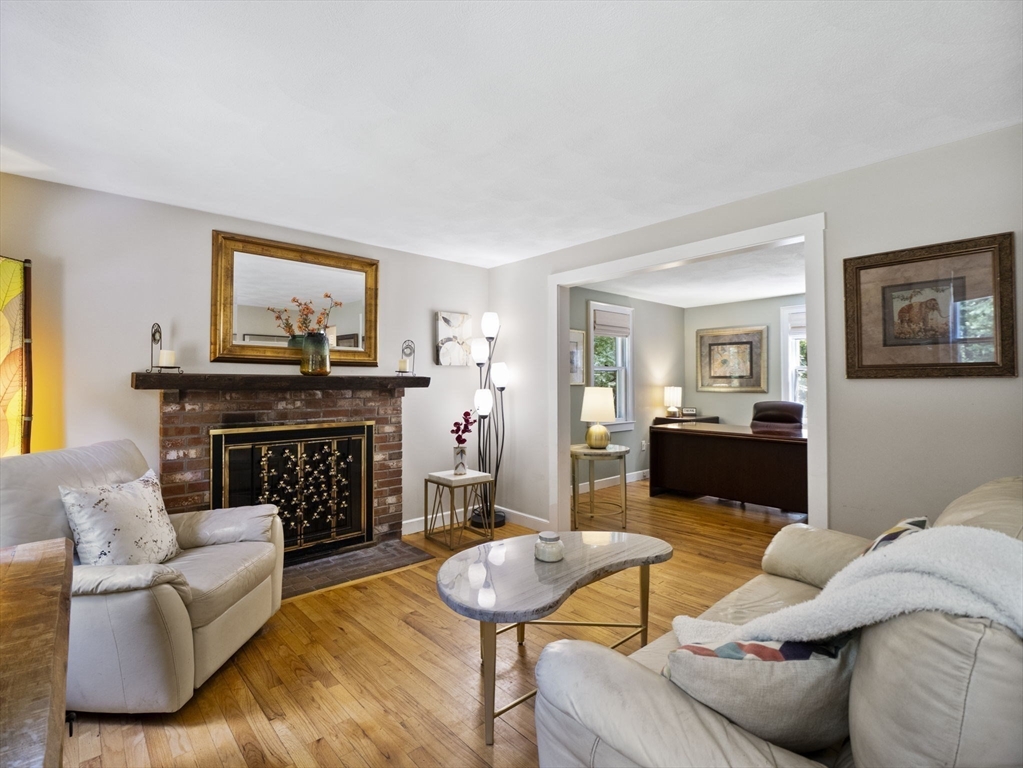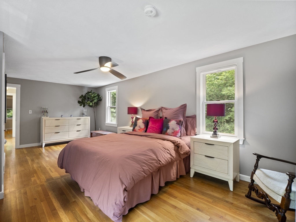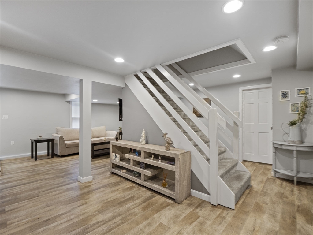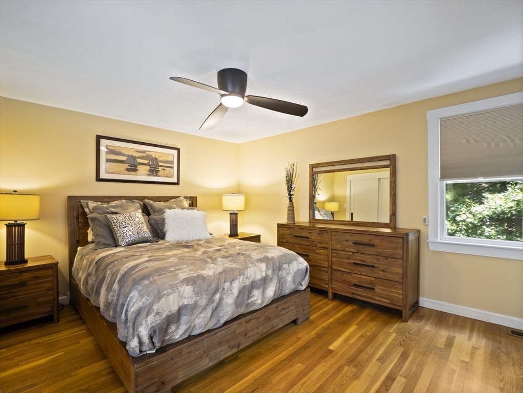 Meticulously maintained with numerous recent upgrades, this distinctive home offers exceptional flexibility - ideal for multi-generational living, extended guests or a potential ADU. A charming, covered porch with an accessible ramp welcomes you into a spacious herringbone-tiled mudroom that separates the main home from a versatile two-level addition. Wide doorways offer wheelchair accessibility. Enjoy hardwood floors, heated tile kitchen & upgraded baths. The primary BR features a custom walk-in closet w/ an artist-crafted sliding barn door. The coastal-inspired finished walk-out lower-level w/sliders to a patio allows for seamless indoor-outdoor living. Step outside to an expansive rear deck, a large backyard with ample space to add a pool, and a professionally landscaped garden framed by dual driveways. Additional highlights include a new paver walkway & granite/stone porch - all set on a property encircled by nature & just minutes to Rt. 3, beaches and scenic trails.