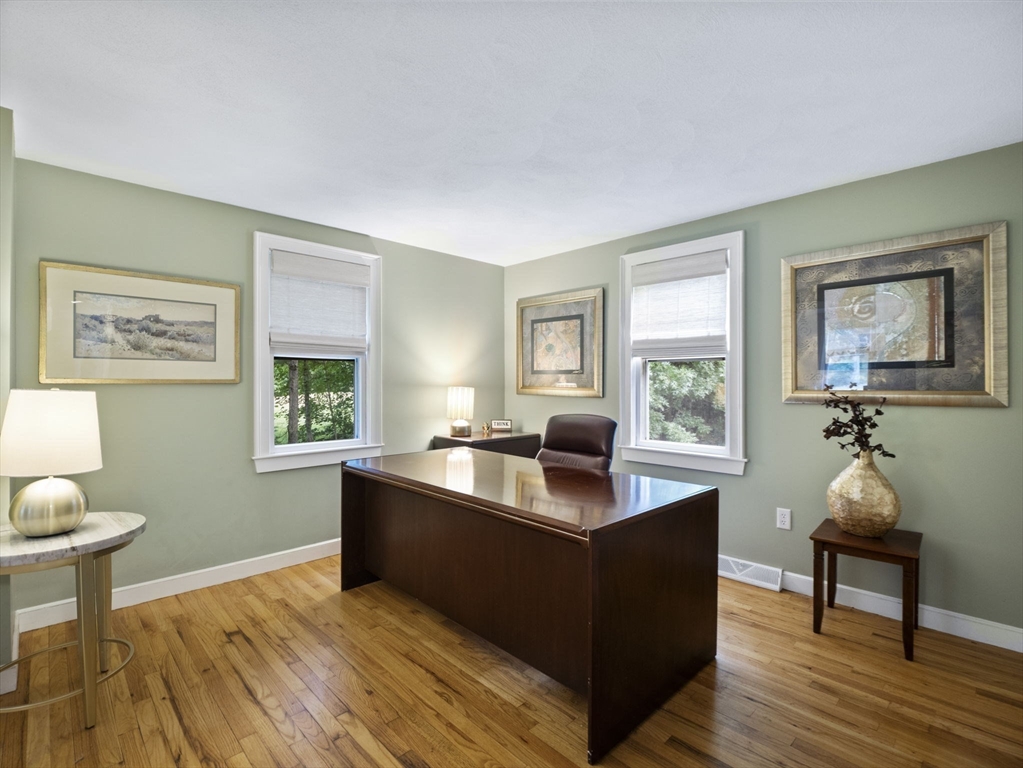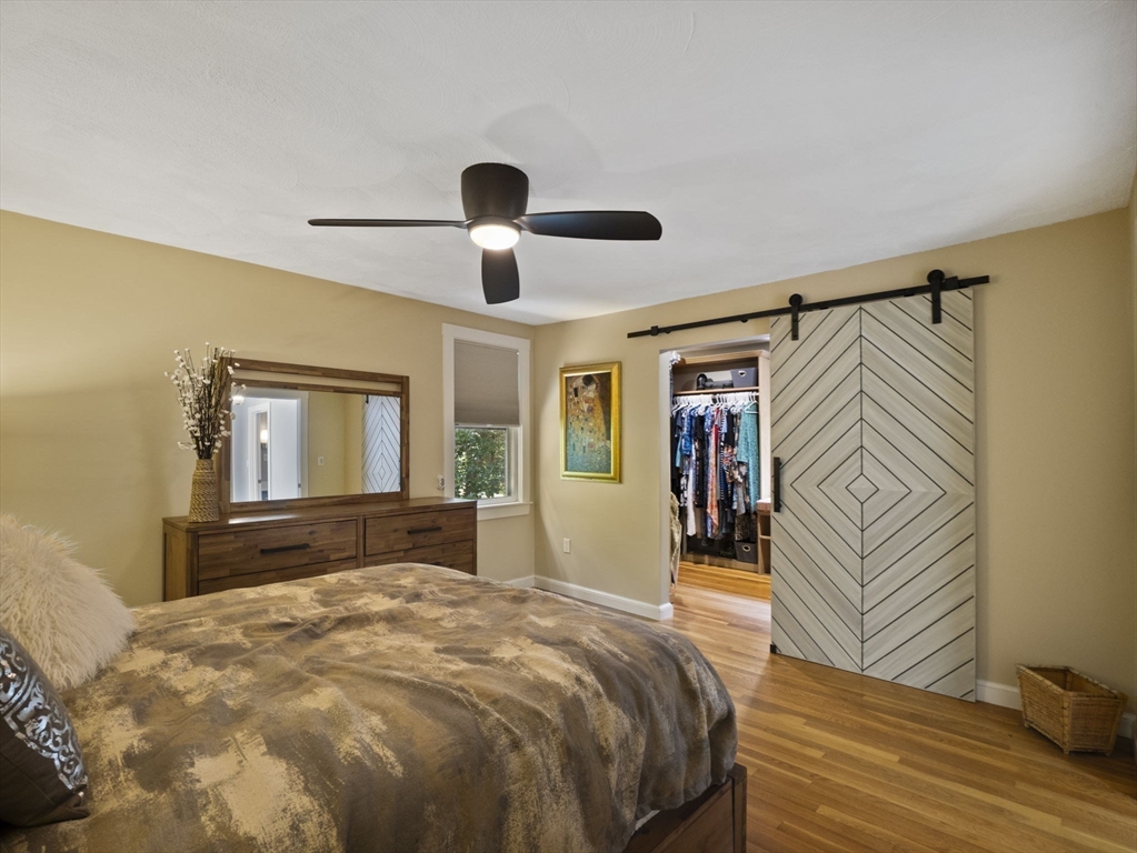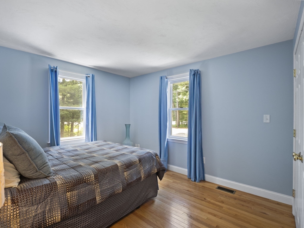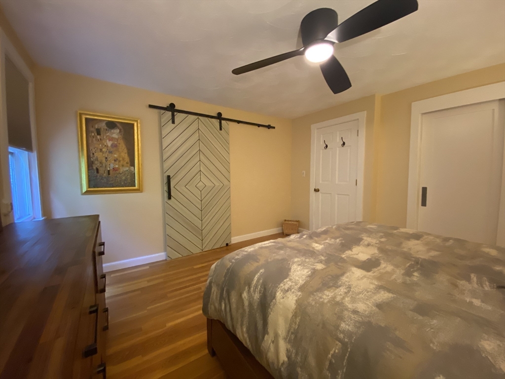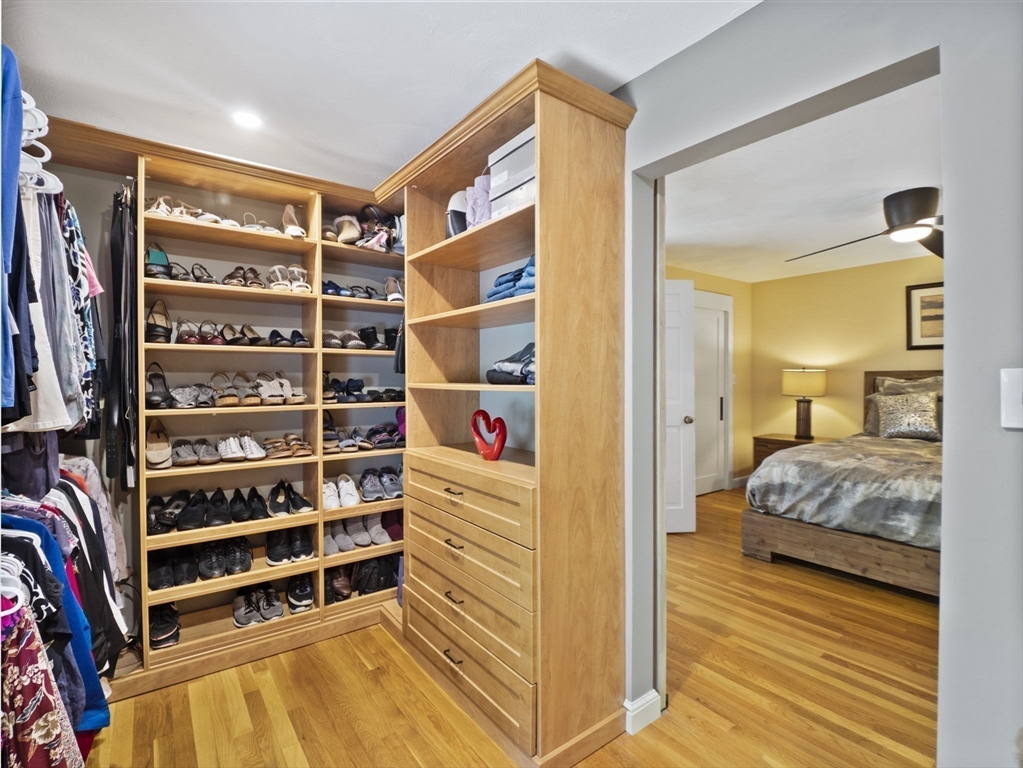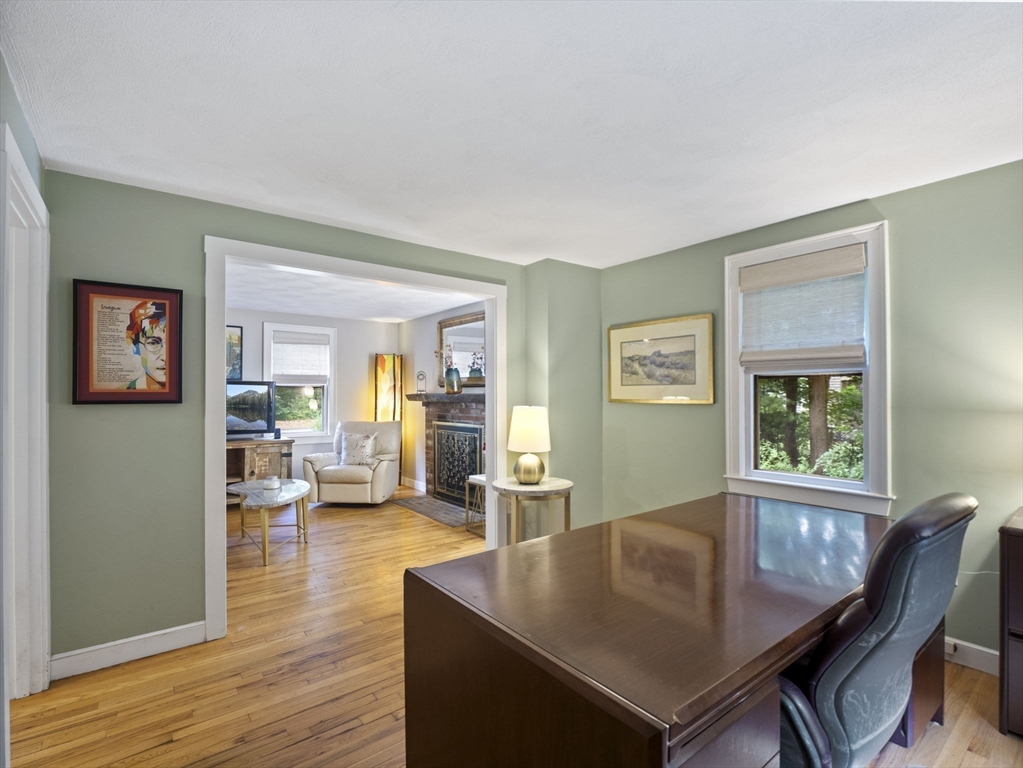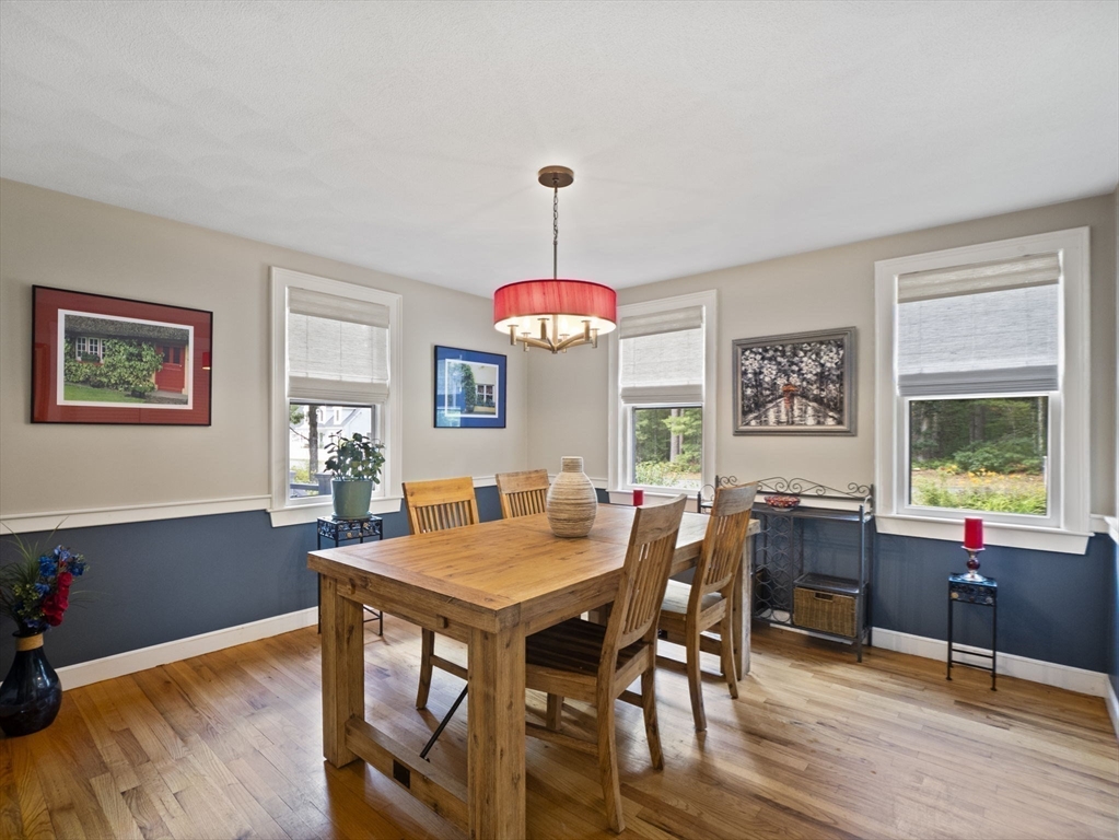 Meticulously maintained with numerous recent upgrades, this distinctive home offers exceptional flexibility - ideal for multi-generational living, extended guests or a potential ADU. A charming, covered porch with an accessible ramp welcomes you into a spacious herringbone-tiled mudroom that separates the main home from a versatile two-level addition. Wide doorways offer wheelchair accessibility. Enjoy hardwood floors, heated tile kitchen & upgraded baths. The primary BR features a custom walk-in closet w/ an artist-crafted sliding barn door. The coastal-inspired finished walk-out lower-level w/sliders to a patio allows for seamless indoor-outdoor living. Step outside to an expansive rear deck, a large backyard with ample space to add a pool, and a professionally landscaped garden framed by dual driveways. Additional highlights include a new paver walkway & granite/stone porch - all set on a property encircled by nature & just minutes to Rt. 3, beaches and scenic trails.