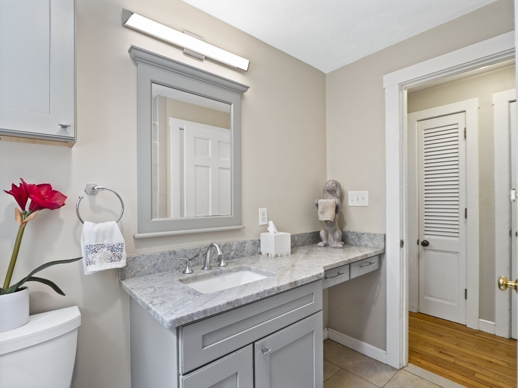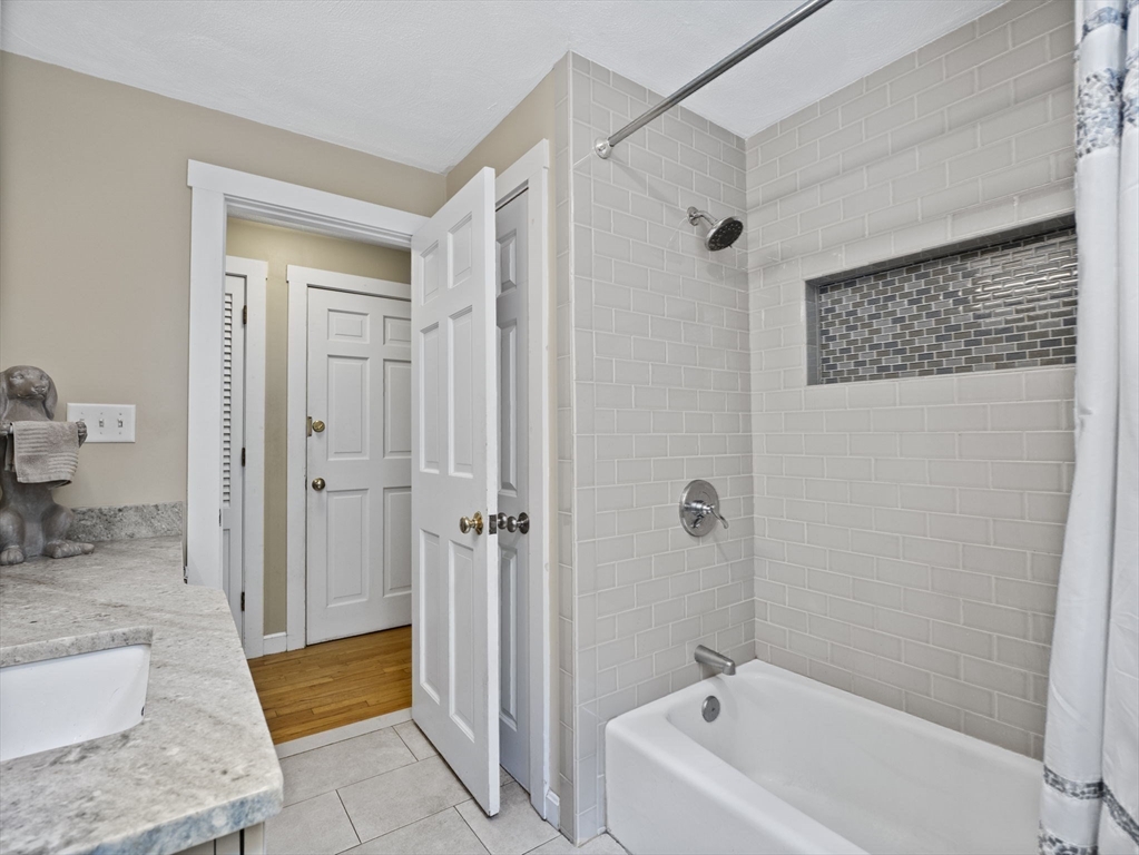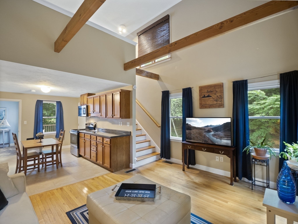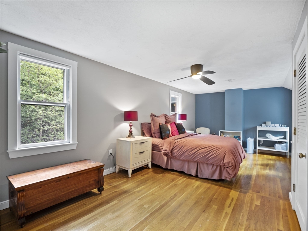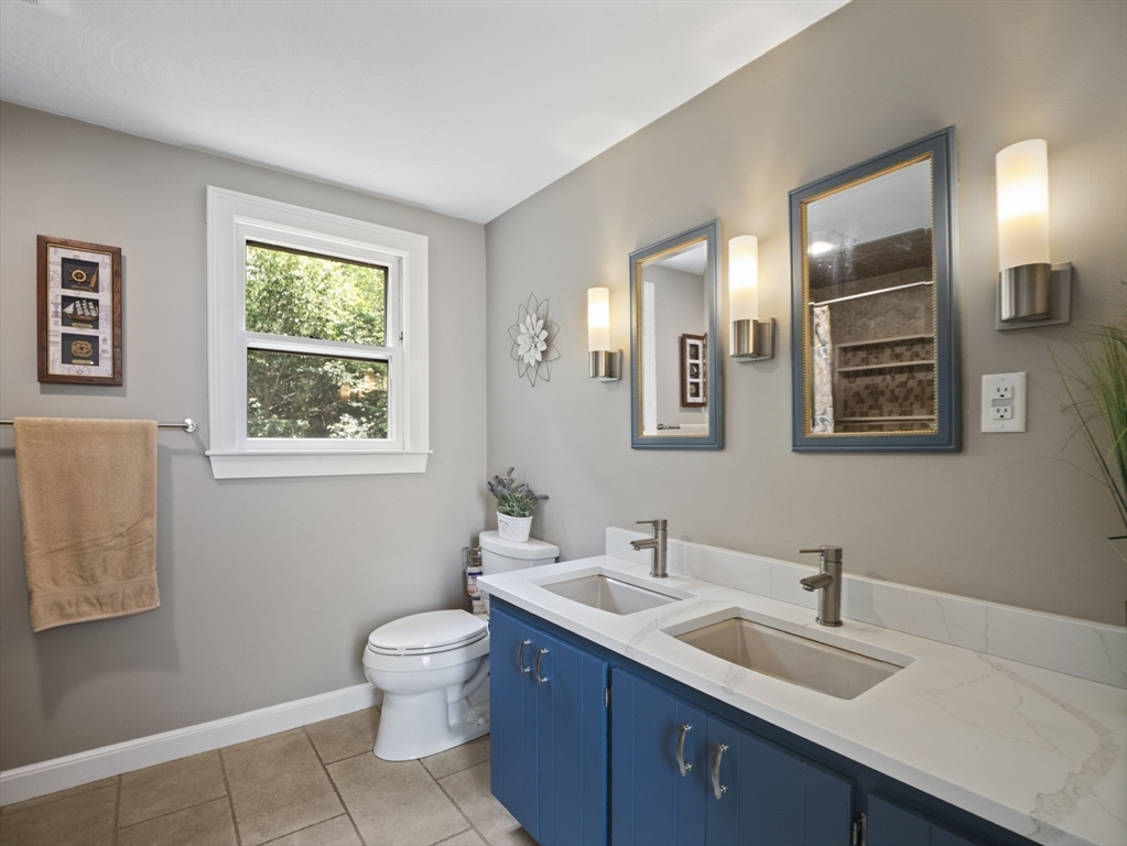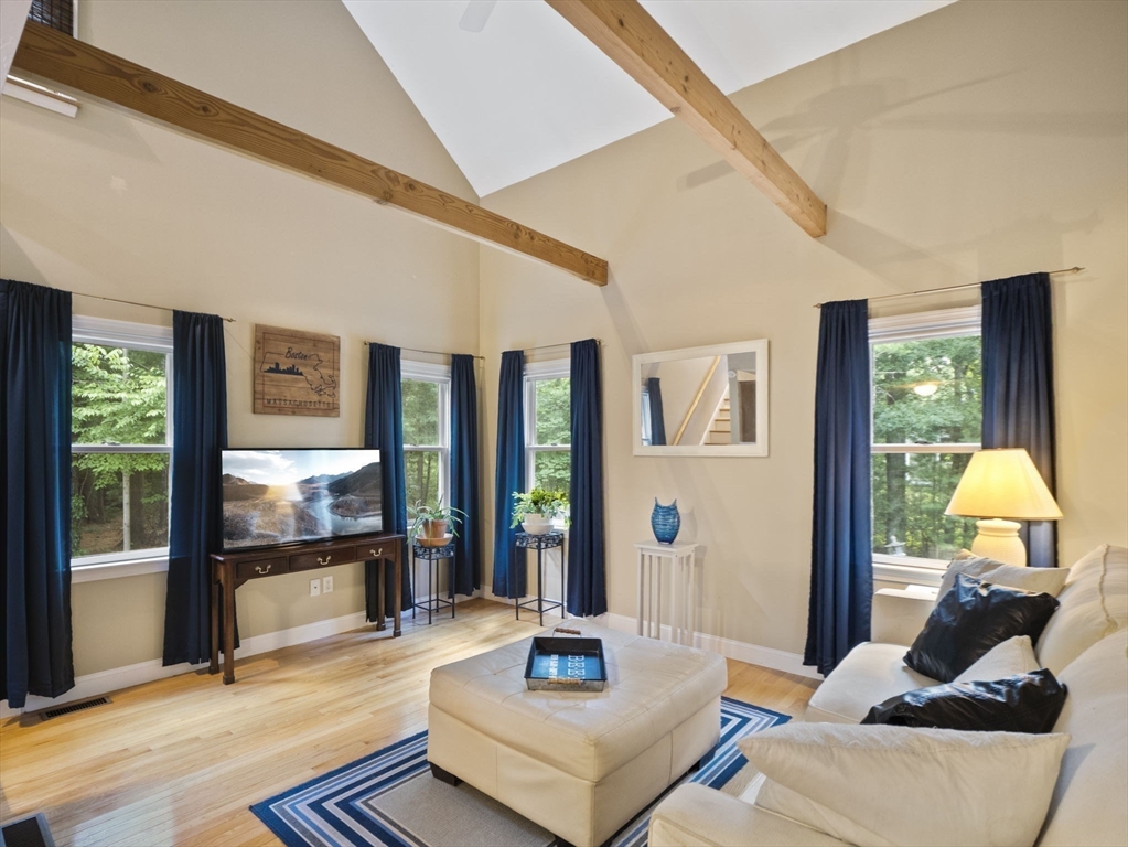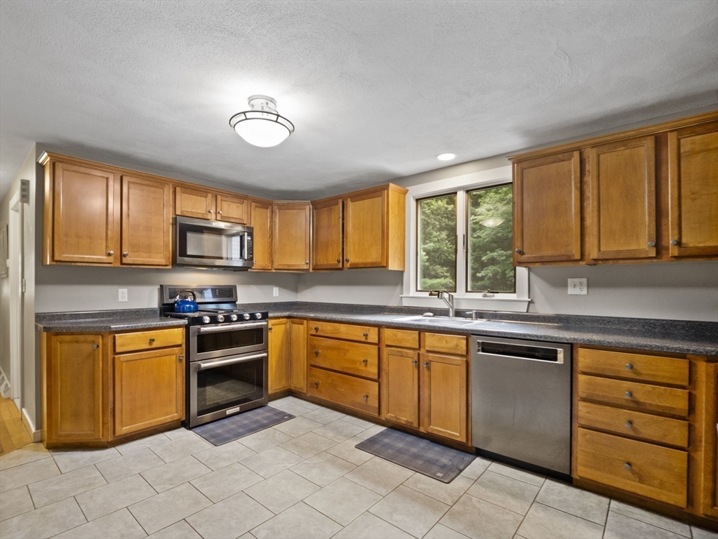 Meticulously maintained with numerous recent upgrades, this distinctive home offers exceptional flexibility - ideal for multi-generational living, extended guests or a potential ADU. A charming, covered porch with an accessible ramp welcomes you into a spacious herringbone-tiled mudroom that separates the main home from a versatile two-level addition. Wide doorways offer wheelchair accessibility. Enjoy hardwood floors, heated tile kitchen & upgraded baths. The primary BR features a custom walk-in closet w/ an artist-crafted sliding barn door. The coastal-inspired finished walk-out lower-level w/sliders to a patio allows for seamless indoor-outdoor living. Step outside to an expansive rear deck, a large backyard with ample space to add a pool, and a professionally landscaped garden framed by dual driveways. Additional highlights include a new paver walkway & granite/stone porch - all set on a property encircled by nature & just minutes to Rt. 3, beaches and scenic trails.