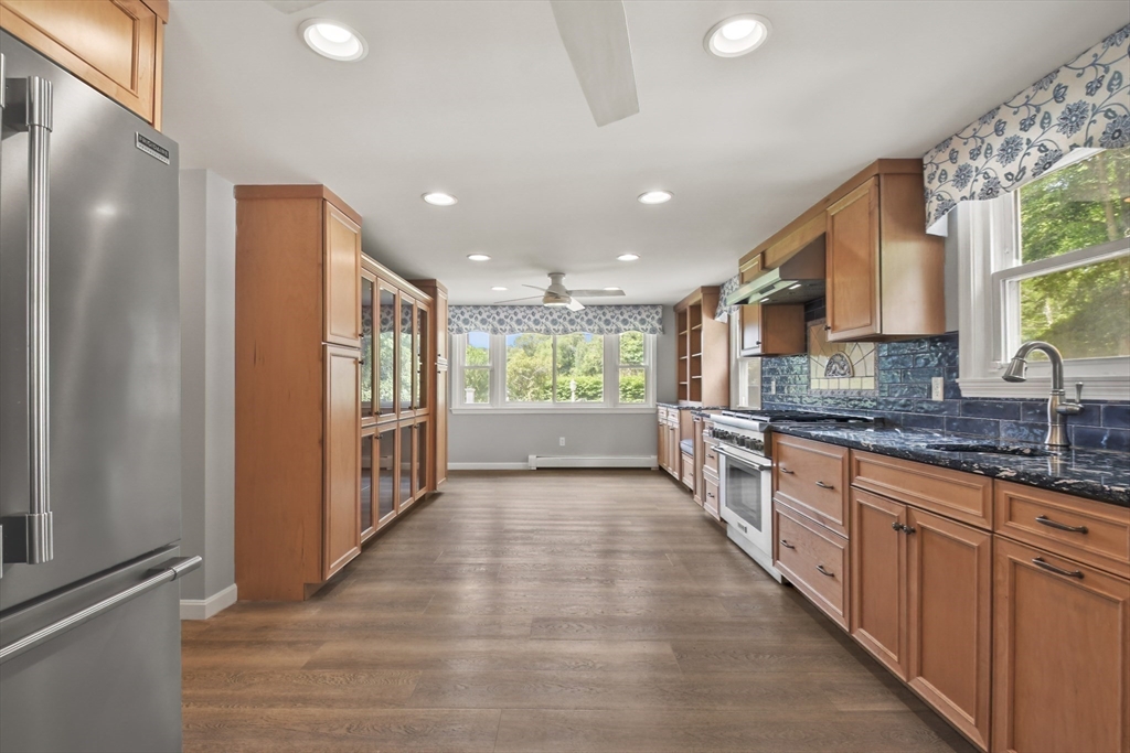 Nestled in the serene countryside of Dighton, this charming cape-style home offers a perfect blend of comfort and tranquility with 5 bedrooms and 2 bathrooms on a generous 3.8-acre lot. Upon entering, you are greeted by a spacious living area with hardwood floors and plenty of natural light. The cozy fireplace creates a warm ambiance during New England winters. The adjacent kitchen boasts modern appliances, including a 6 burner Thermador stove with integrated ventilation system, granite countertops, and plenty of cabinet space, perfect for culinary enthusiasts. There is a full bath and bedroom on the 1st floor which could be used as a home office as well. Upstairs, there are 4 more bedrooms and a full bath. Outside, the expansive backyard is a haven for outdoor activities, with a pool area ideal for summer barbecues and entertaining guests.2 car garage with ample parking. Easy access to schools, shopping, and major highways. See attached document listing the many improvements!