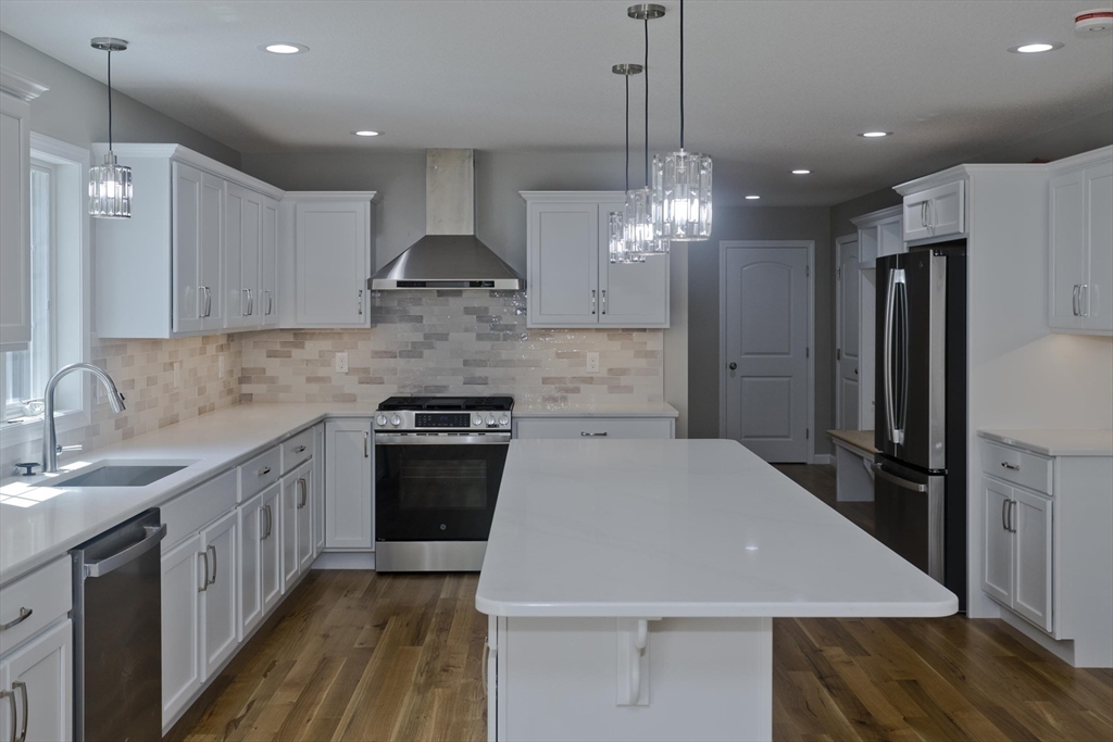 BRAND NEW CONSTRUCTION!!! This Beautiful home features a large open floor plan w/an abundance of natural light and hardwood floors throughout the entire house. The kitchen is equipped w/top-of-the-line brand new SS appliances that come complete with their manufacturers warranties. Sip coffee at your large center island w/stunning quarts counter tops and store your overflow in the huge walk-in pantry! The kitchen flows seamlessly into the living room, which features a cozy gas fireplace with a beautiful mantel stone hearth. Upstairs, you'll find four spacious bedrooms, each w/plenty of closet space and a shared large bathroom w/double vanity with quartz counter tops. The primary bedroom is a private retreat, w/an en-suite bathroom featuring a luxurious tiled shower, double vanity and quartz counter tops. The large laundry room completes the second floor. This home features a large backyard and a composite deck for easy care. This is one of two brand new homes available on Wellfleet.