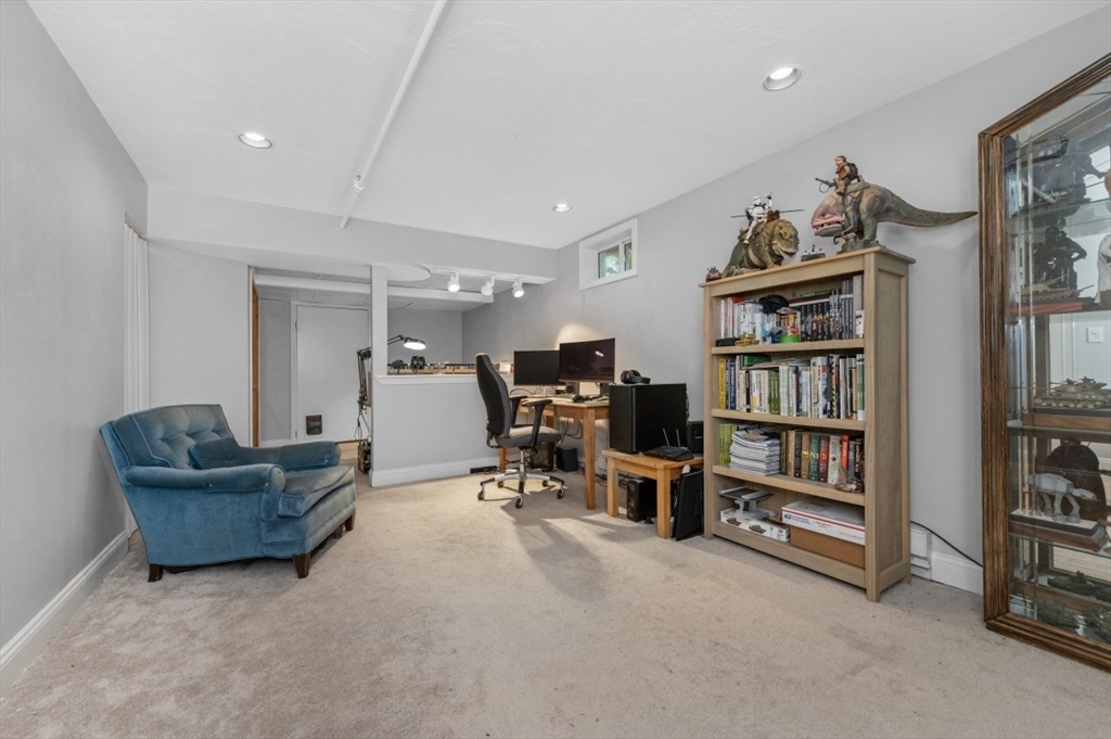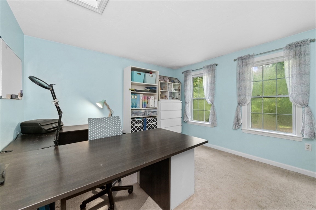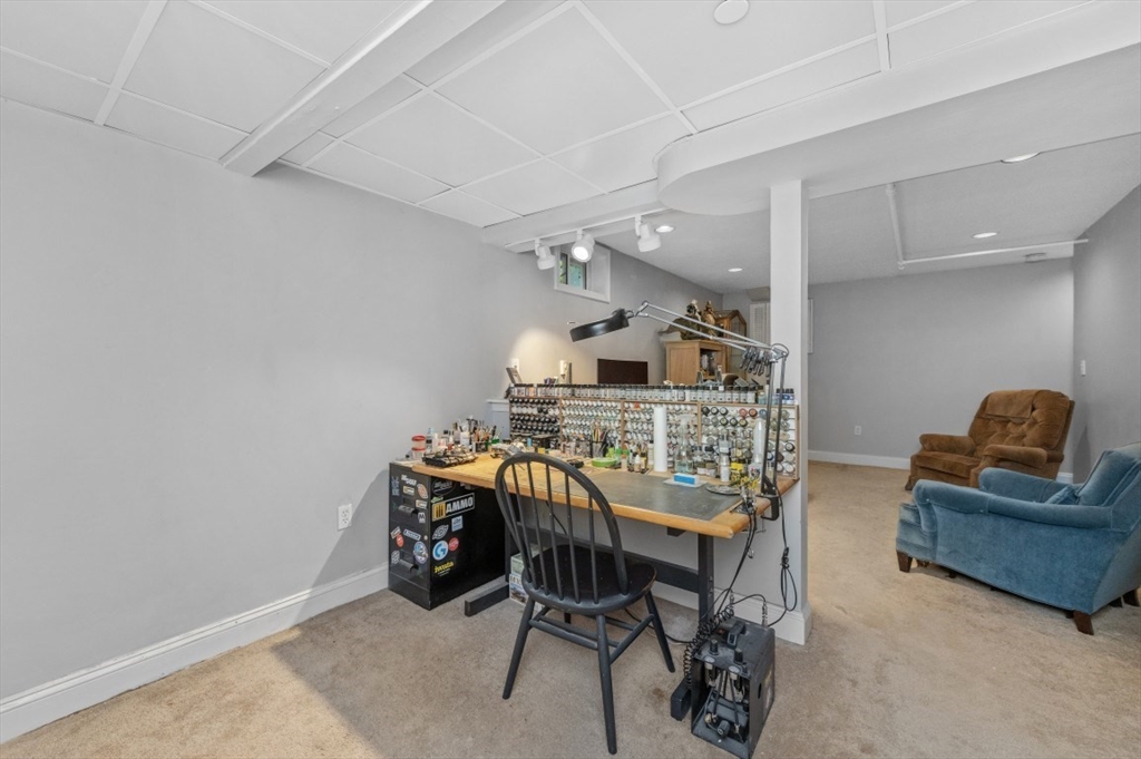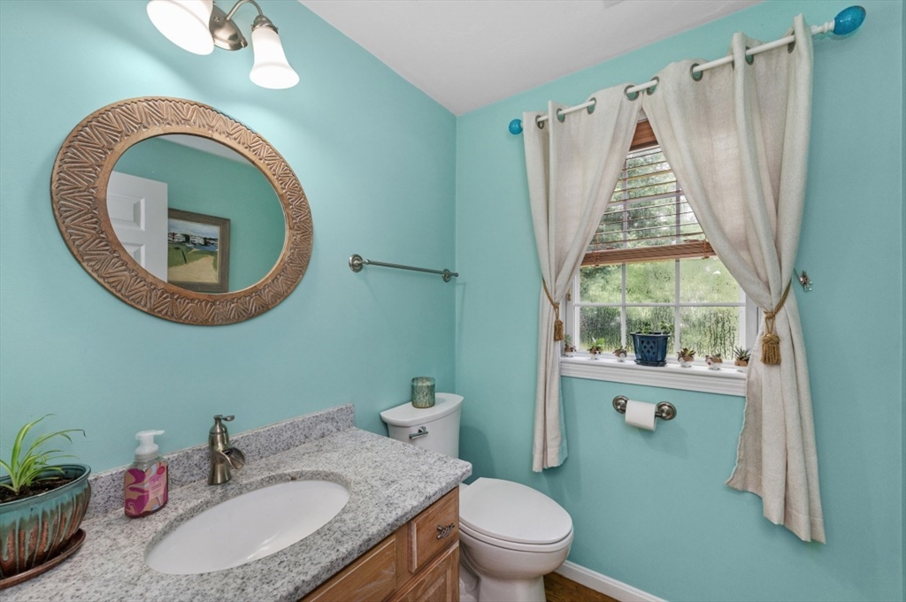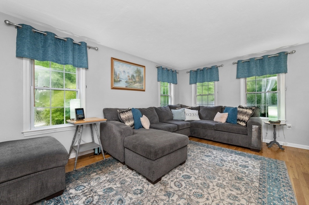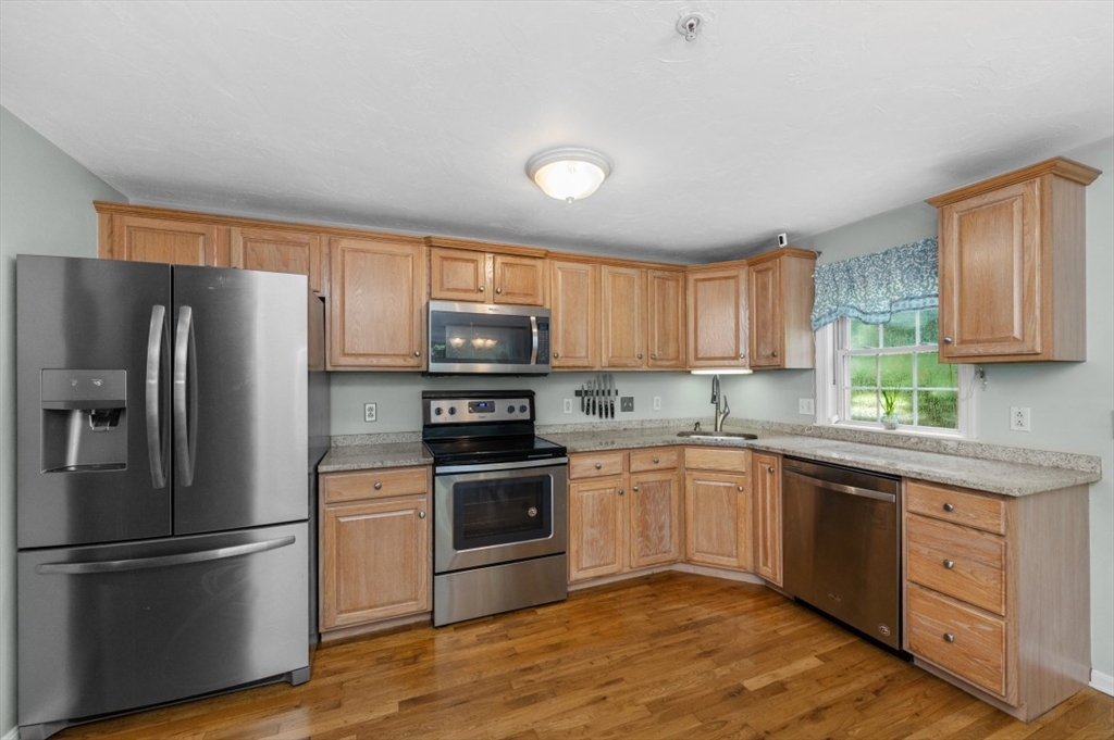 Welcome to this spacious end-unit townhome at Abington Square, offering 3 levels of finished living space & a private wooded backyard. The bright living room flows into an updated 1/2 bath with newer countertops, sink & toilet. The kitchen features granite countertops, stainless steel appliances, garbage disposal & a large pantry, opening to a dining area with direct access to a brand new Timbertech deck (2025) — ideal for entertaining. A serene wooded common yard, used exclusively by this unit, adds rare outdoor privacy. Upstairs, the main bedroom boasts cathedral ceilings & double closets, joined by a 2nd bedroom & an updated full bath with double marble sinks. The finished lower level offers flexible space for a home office or 3rd bedroom, plus generous storage. With a new hot water tank (2024), central AC, in-unit laundry, & 3 deeded parking spaces, this move-in ready home delivers comfort, space & unbeatable convenience near shops, dining, commuter rail & Island Grove Park.