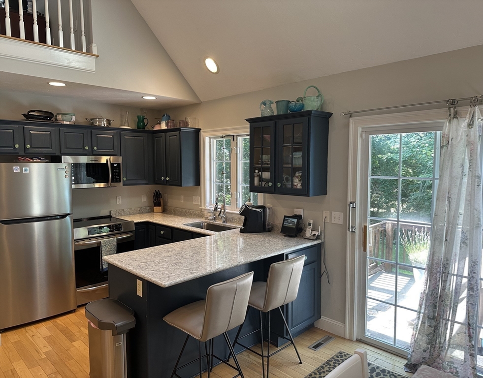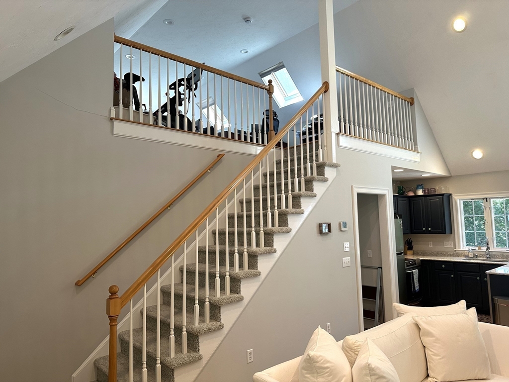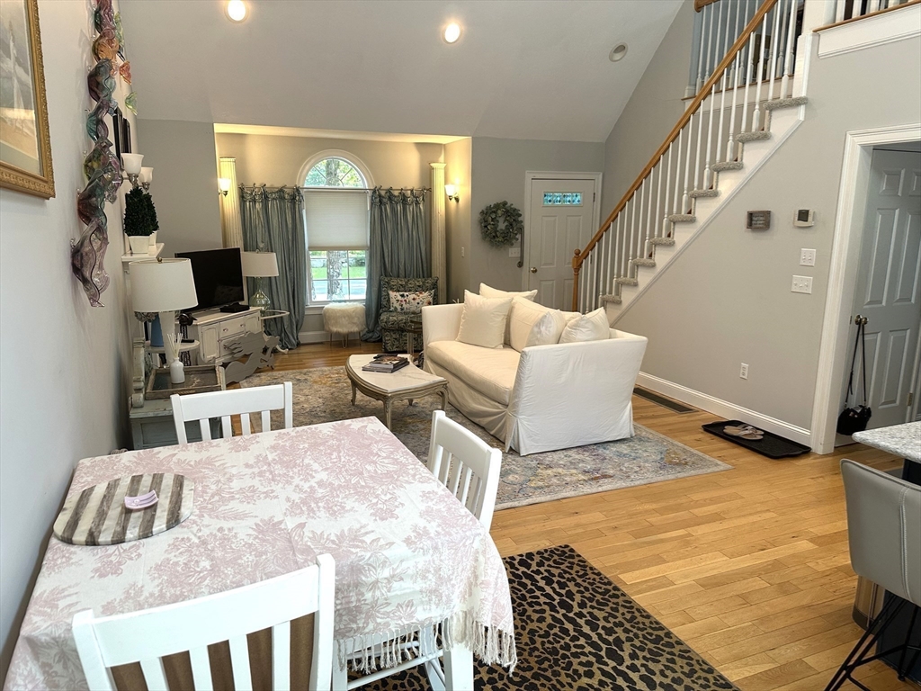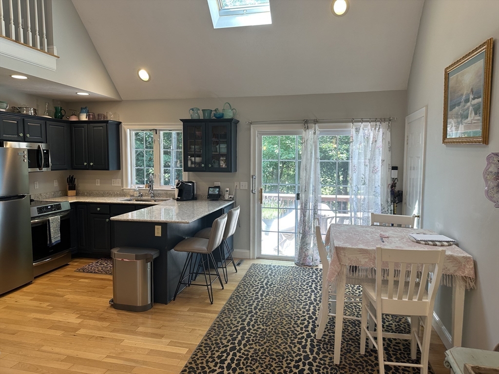 Relax and enjoy this beautiful end unit in a tranquil 55+ condo community. The primary bedroom with en-suite and large walk in closet is located on the main floor. The living space feels light and spacious with skylights, Palladian window, cathedral ceilings, and hardwood floors. Hosting family and friends is a pleasure in the thoughtful open concept layout with new appliances, fireplace, second bedroom, full bath, and laundry all on the main floor. Upstairs is a lovely loft space for your home office, and the deck overlooks a picturesque cranberry bog. Need storage? Check out the full basement with a new eco-friendly HVAC/Air conditioning system, humidifier, and attached one car garage. Desirably located in West Wareham (Gateway to Cape Cod), with great commuting opportunities and minutes to beach, 495, 195, shopping and great restaurants.