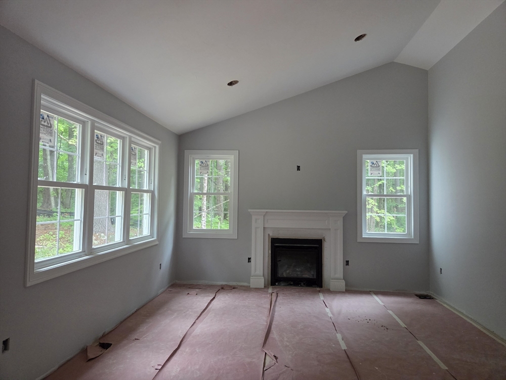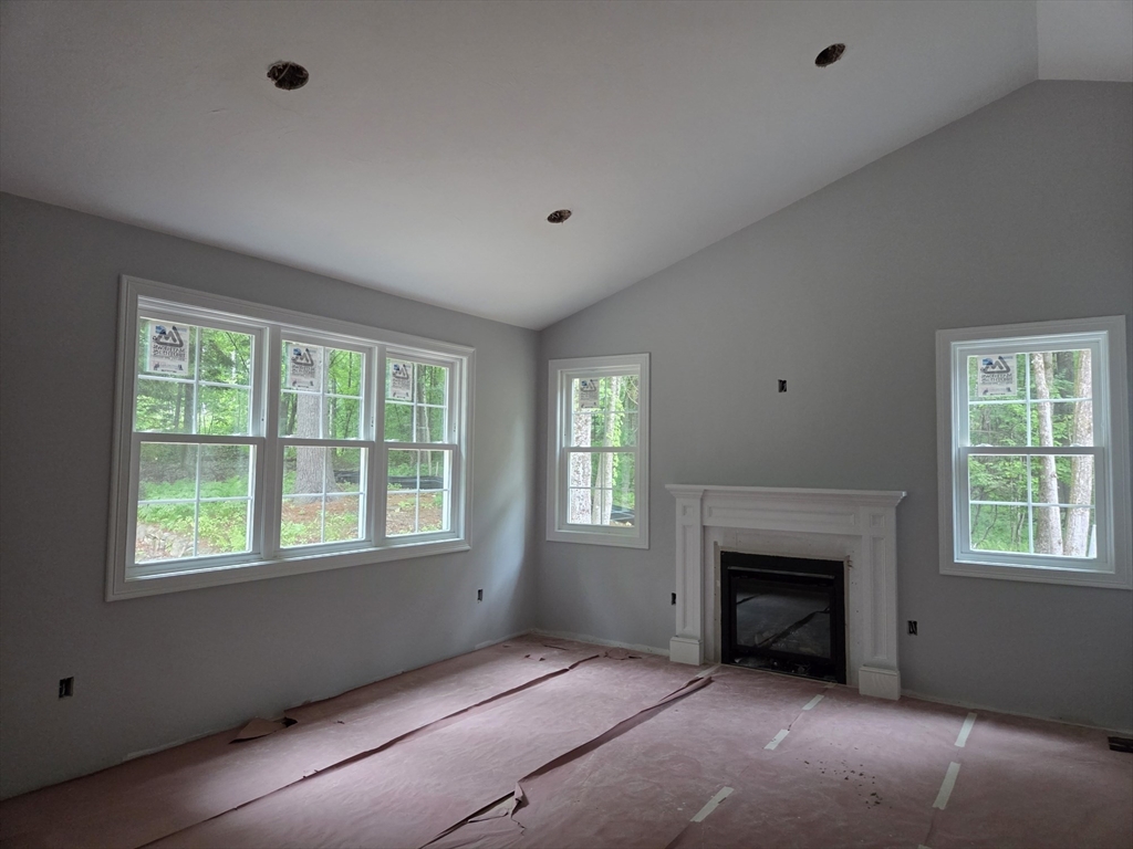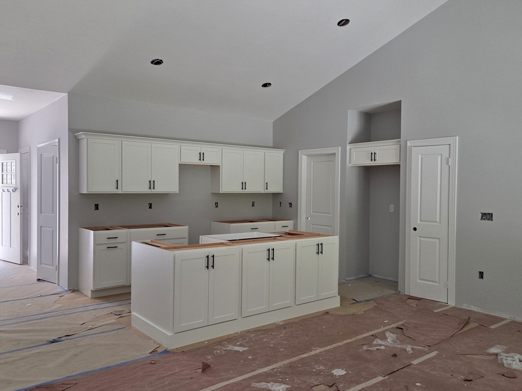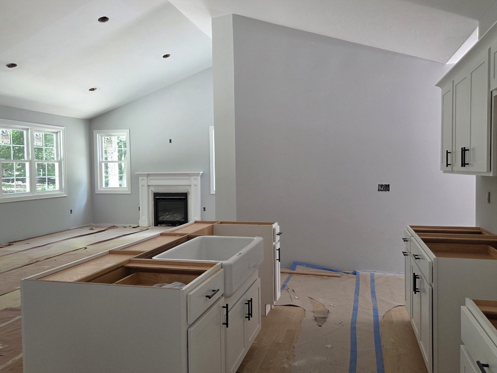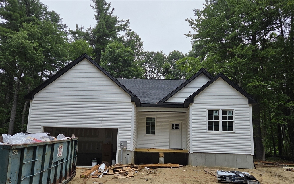 Builder to offer preferred financing options to qualified Buyers – See Remarks. This new construction Ranch built on a beautiful 3.2 acre lot. Enjoy the convenience of single-floor living on a serene lot and set nicely off the road for privacy. This 3-bedroom, 2-bath Ranch features solid hardwood floors, 9' ceilings throughout and an open-concept layout with a cathedral ceiling and a gas fireplace. The kitchen has quartz countertop and an island featuring lots of cabinets, a farmhouse sink and dishwasher which face the main living area—perfect for entertaining. Enjoy the dining area with a slider to a maintenance-free composite deck. The primary suite includes a walk-in closet, a double sink vanity and a custom walk-in shower. A tiled mudroom includes washer/dryer. Additional features include central A/C, 12' ceilings in the two car garage, an expansive basement for future living area, a paved driveway, and one-year warranty. Completion is expected mid-September!