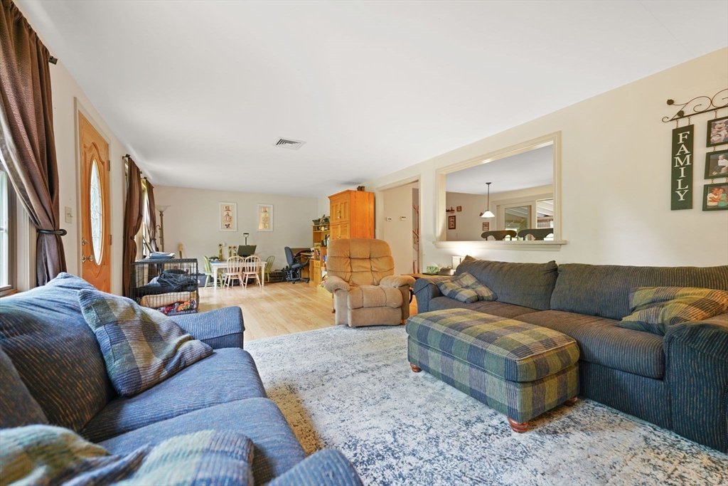 Spacious and serene, this beautiful 3-bedroom, 3-bath home sits on over 3 acres of peaceful land. Step inside to an oversized living room perfect for entertaining, an eat-in kitchen with plenty of space to gather, and a cozy enclosed porch for year-round enjoyment. The oversized primary suite offers a private retreat with a large en suite bath and walk-in closet. A dedicated mud room keeps life organized, while a separate lounge room adds flexibility for work or relaxation. The 2-car garage provides ample storage and convenience. The stamped concrete patio is great for outdoor gatherings. Central a/c to keep cool in the summer, and propane generator so you never have to lose electricity in the winter! This property blends comfort, function, and space—inside and out. First showings on Sunday 7/20 at Open House 2pm-4pm.