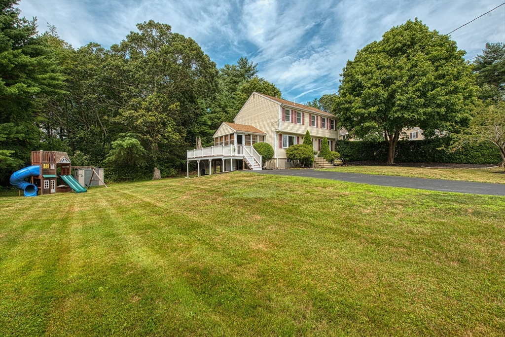 Welcome to your new home! Nestled in a peaceful subdivision, this beautifully maintained 4-bedroom, 2.5-bath colonial offers the perfect mix of comfort, style, and location. Inside, you'll find hardwood floors throughout, a sun-filled front-to-back living room, and an open-concept layout ideal for both everyday living and entertaining. The kitchen flows into the dining area and out to your private deck, perfect for summer barbecues or quiet mornings. Upstairs features four spacious bedrooms including a master suite with en-suite bath. The finished lower level offers great flexibility—use it as a home office, gym, or bonus family room. Enjoy the comfort and efficiency of gas heat throughout the home. Located just minutes from Route 24 and the Stoughton Commuter Rail, commuting is a breeze while you enjoy the tranquility of subdivision living.