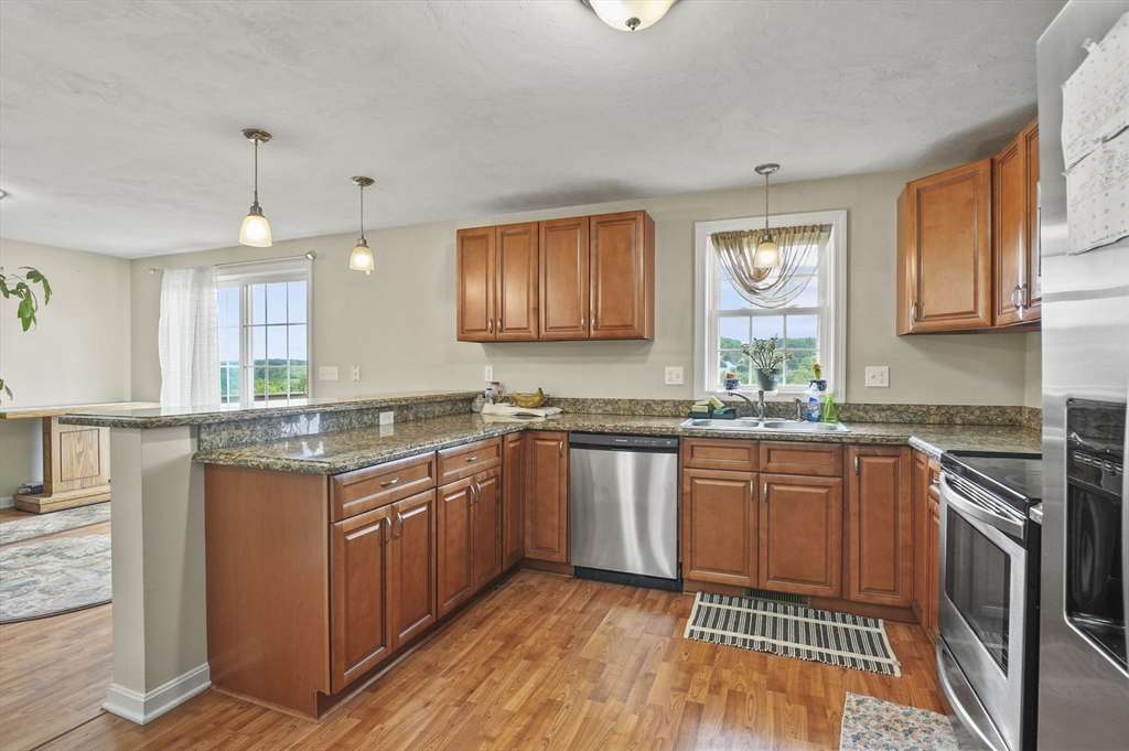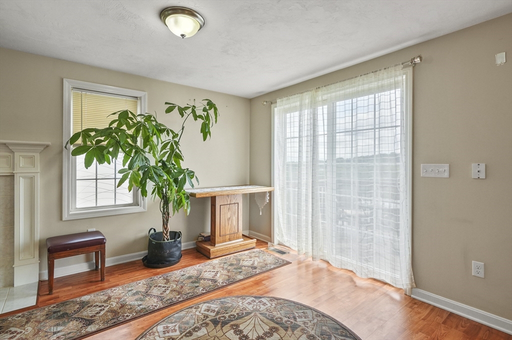 This charming 2-bedroom, 1.5-bath duplex-style home offers comfort, convenience, and a thoughtfully designed layout. Step into the spacious living room, featuring a double windows that fills the space with natural light and a cozy gas fireplace for added warmth. The open-concept design flows effortlessly into the kitchen, complete with granite countertops, stainless steel appliances, a breakfast bar, and a pantry closet for extra storage. The adjoining dining area offers direct access to the back deck through sliding glass doors—ideal for outdoor entertaining. A convenient half bath completes the main level. Upstairs, you’ll find two bright and airy bedrooms, each with generous closet space, along with a full bath featuring a double vanity and a tub/shower combo. Additional highlights include central air, interior access to the garage and a prime location in the heart of Worcester with easy access to shopping, dining, I-90, and I-290.