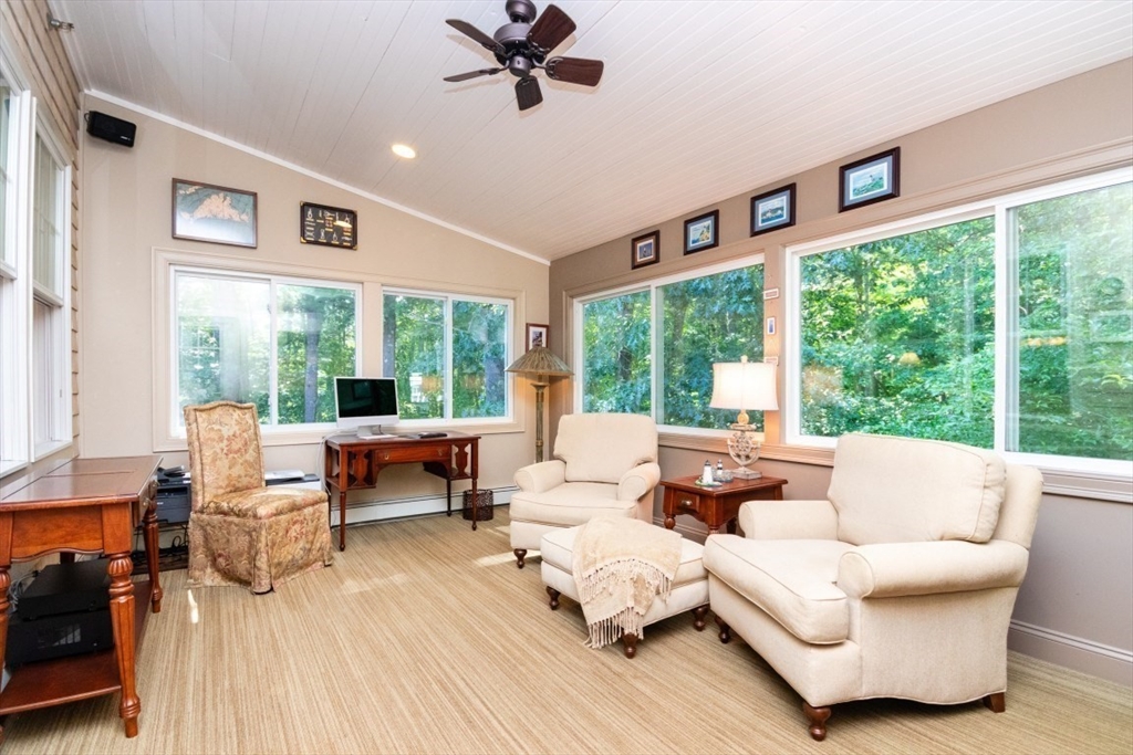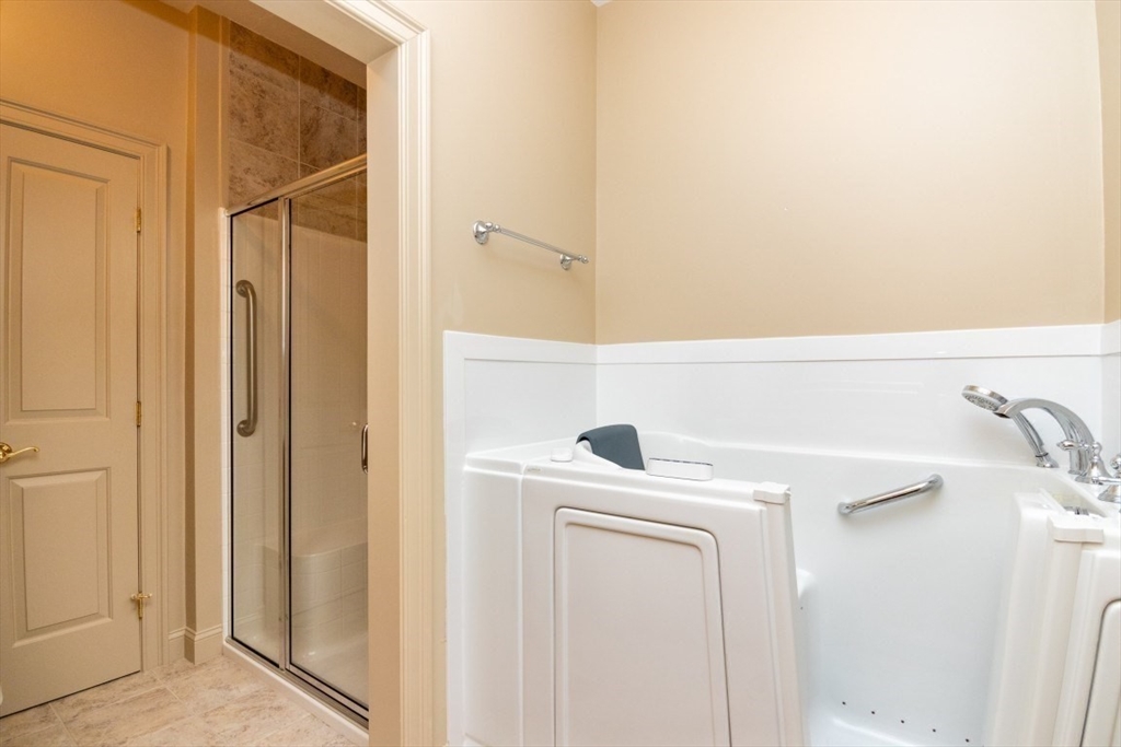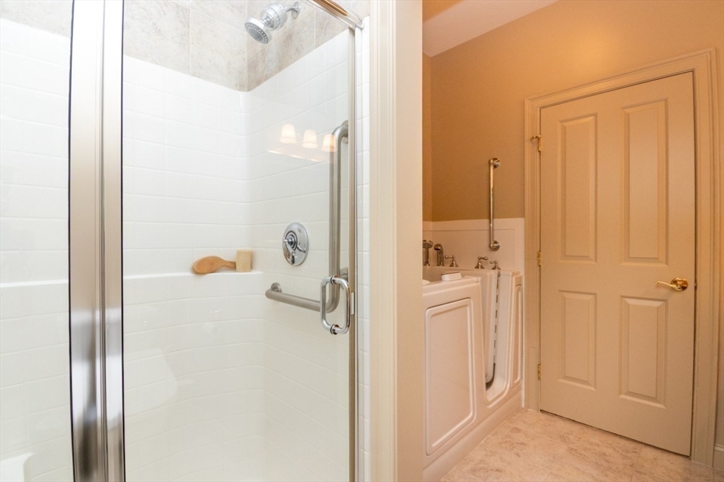 Welcome to Spring Meadow, a vibrant 55+ community! This spacious, private END unit offers exceptional comfort and style throughout. The kitchen features granite countertops, tiled back splash, breakfast bar, cozy eating area, perfect for casual dining. The dining room seamlessly opens to the living room, where you’ll find a cathedral ceiling, gas fireplace, a built-in bookcase that adds both warmth & elegance. Just steps away, fall in love with the all-season, heated sunroom, w/ indoor grill, surrounded by walls of windows overlooking serene trees and a peaceful wooded area. The main-floor primary suite offers privacy and luxury, complete with a full bath, a newly installed bidet, a walk-in soaking tub w/jets for ultimate relaxation. Upstairs, you’ll find a 2nd bedroom suite with full bath, dual closets, a loft area w/skylights, and cozy sitting space. The finished walk-out lower level opens to a private deck with access from the front yard via a private path and stairs. It's a beauty!