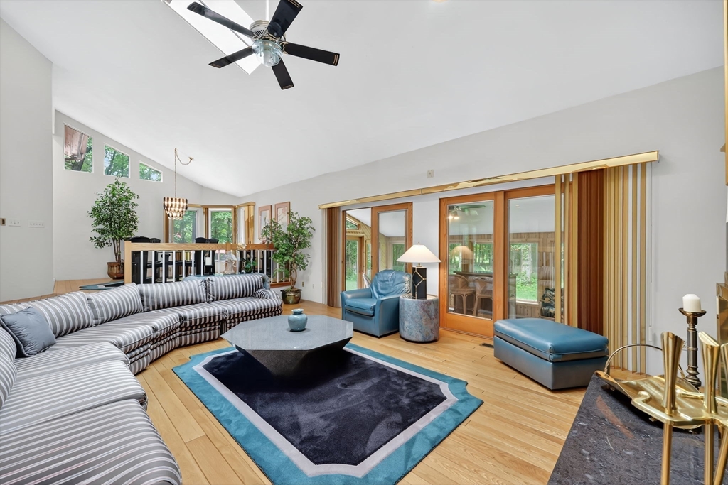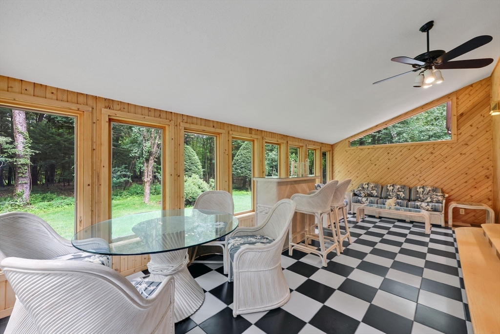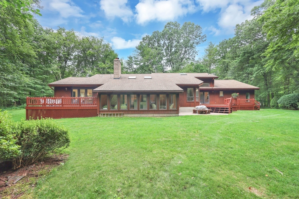 A rare opportunity in West Springfield - this sprawling, custom-built ranch sits on 15 acres of beautifully landscaped and partially wooded land in a peaceful rural setting, yet it's just minutes from the convenience of shopping and major highways. With over 2,400 sq ft, the open-concept layout is filled with natural light from skylights and large windows. A central fireplace, the heart of the home, anchors the main living area, with seamless flow to a heated sunroom, two decks (off the kitchen and primary bedroom), and convenient first-floor laundry. The home offers 3 spacious bedrooms, 3 full baths, and an attached 3-car garage with direct access to the basement.Zoned for agricultural/residential use, the property is ideal for horses, multi-generational living, or possible development. A circular paver driveway with matching paver entrance and walkways completes the picture. This is a truly rare find in West Springfield.