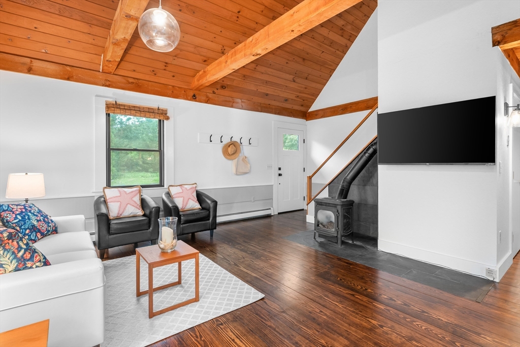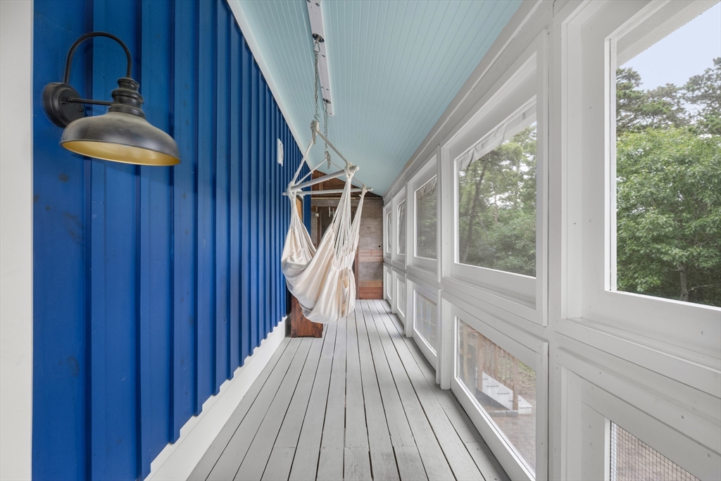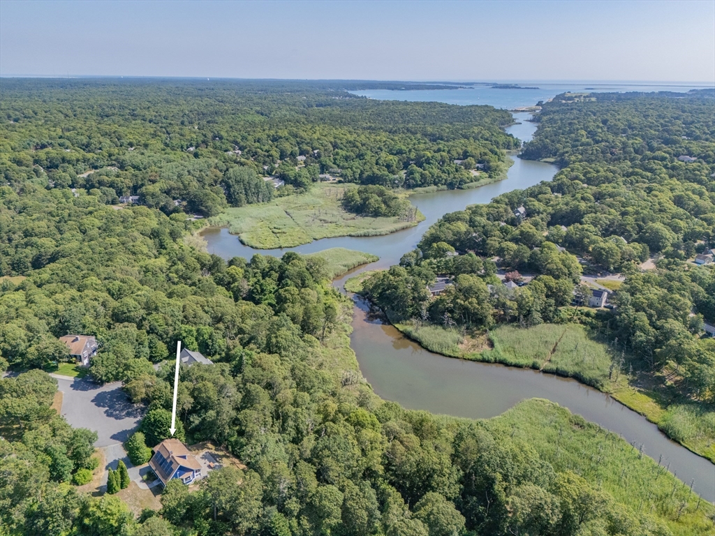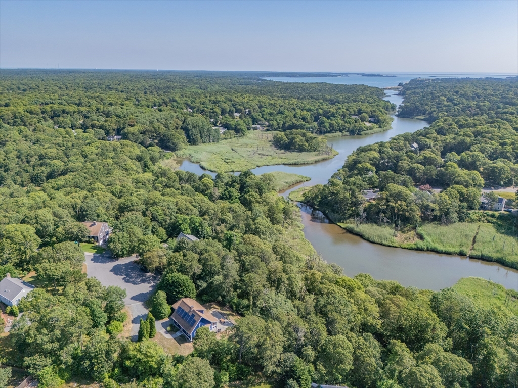 Nature-lovers! A beautifully renovated post 'n beam home perched above the Monomoy River with peeks of the water from the main bedroom, screened porch, and huge patio! Completely updated in '23/'24 with new exterior sheathing, siding, windows, doors, and refinished wood floors. The kitchen boasts new cabinetry, counters, and SS appliances. The bathrooms feature new tile floors, vanities, toilets, and a walk-in shower in the en-suite bath. Soaring, beamed ceiling in the great room creates an airy yet cozy ambiance with a gas stove. Plus, a finished bonus room in the walk-out basement! Recent connection to Harwich sewer, ductless AC/heat units, Rinnai water heater, and solar panels are among the eco-friendly upgrades. Conservation lands and Goose Pond are nearby for hiking, fishing, swimming, and paddling! A one-of-a-kind opportunity tucked at the end of a cul-de-sac, yet centrally located. Street is in Harwich. House is in Chatham. Video coming soon. Buyers/agents to confirm details.